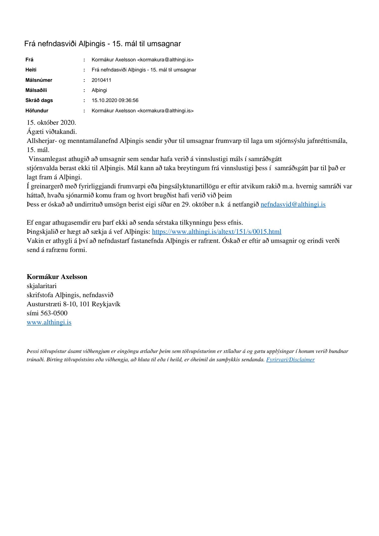 Frá nefndasviði Alþingis - 15. mál til umsagnar.pdf