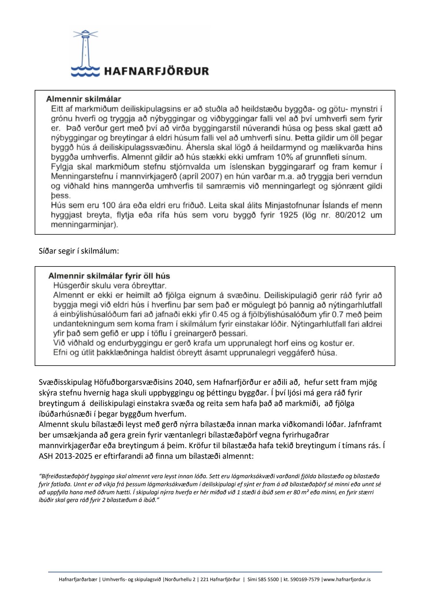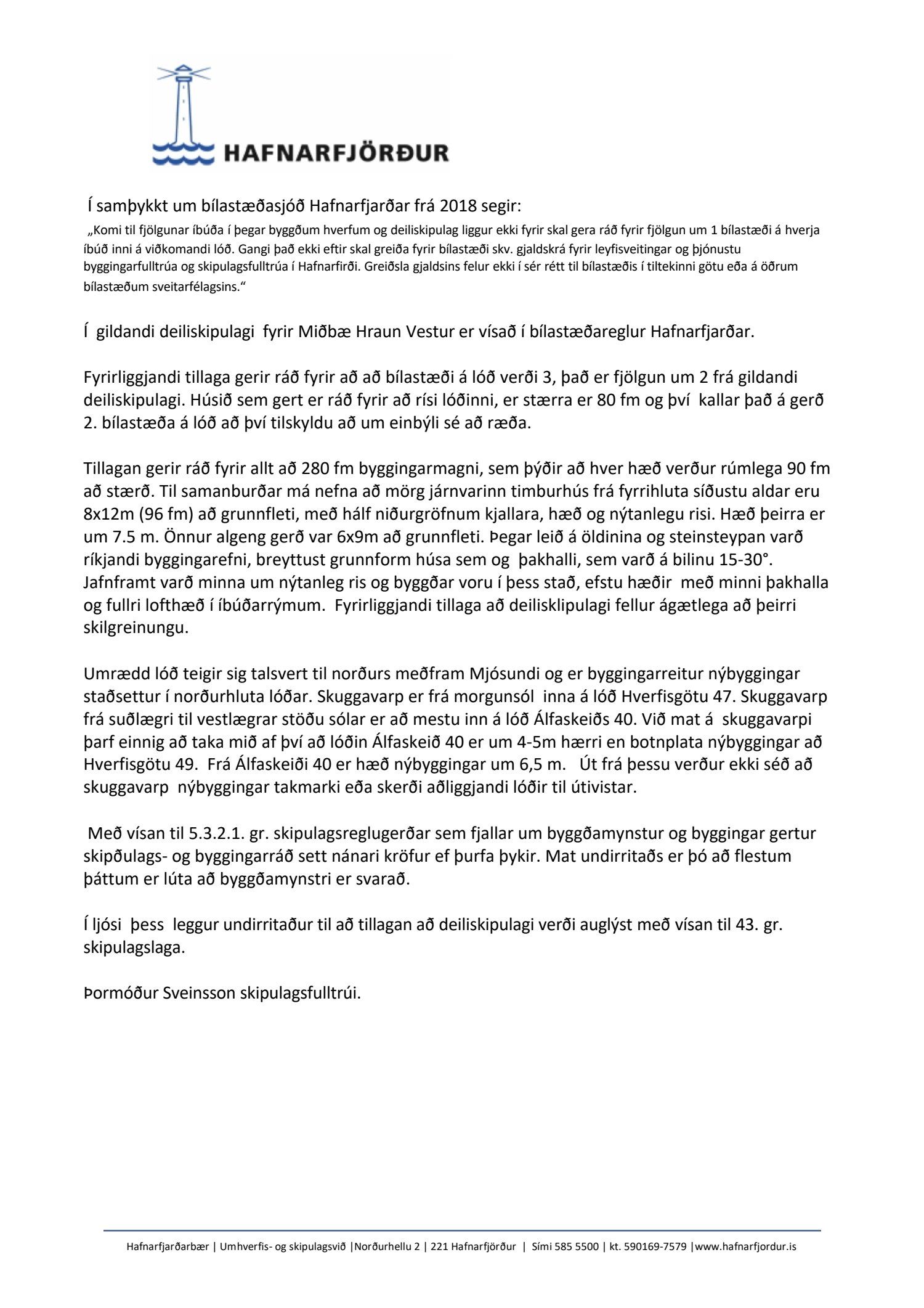 Umsögn skipulagsfulltrúa lögð fram.