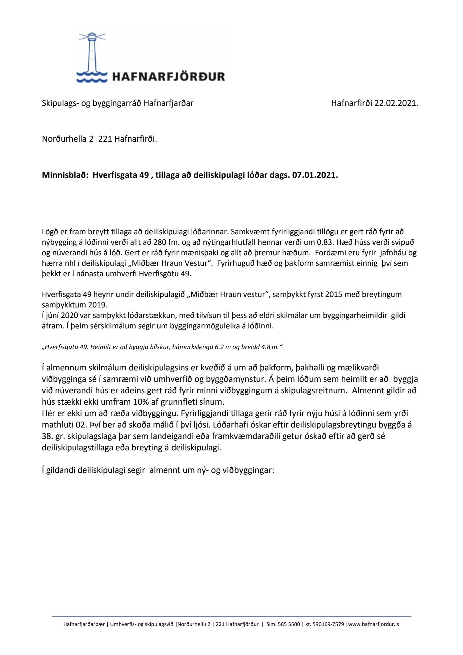 Lögð fram tillaga dags. 7.1.2021 að breyttu deiliskipulagi lóðarinnar Hverfisgata 49.