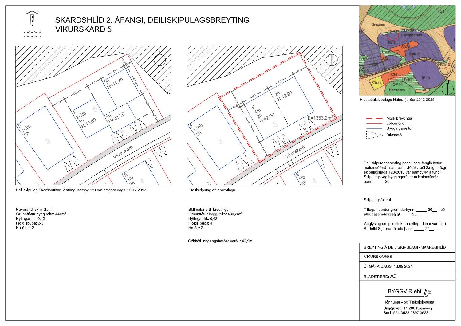 sækir um breytingu á deiliskipulagi Vikurskarðs 5. Lögð fram tillaga að breytingu dags. 13.09.2021. Tillagan gerir ráð fyrir fjölgun íbúða, stækkun byggingarreits og hæðir verði tvær.