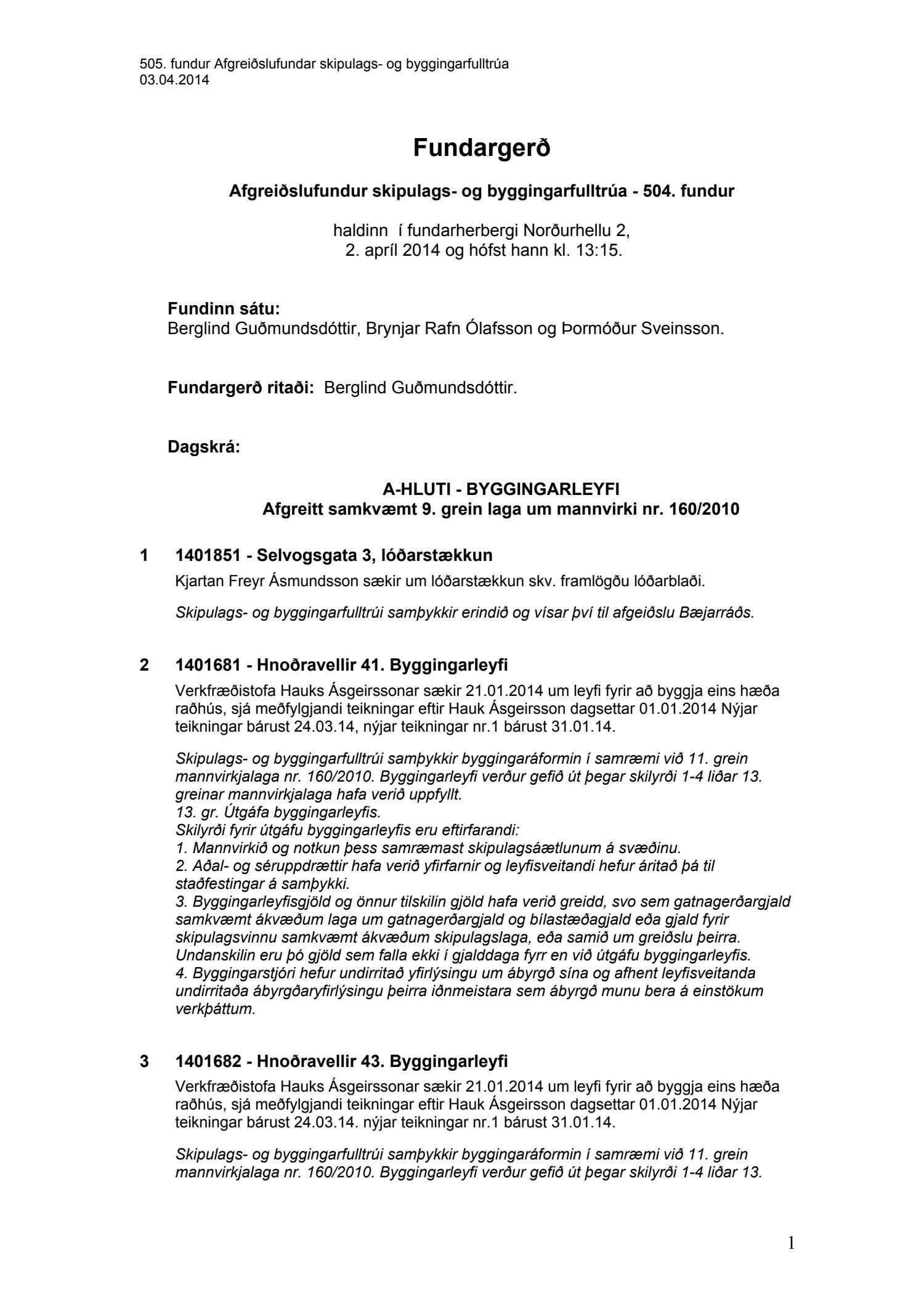 Fundargerðir skipulags- og byggingarfulltrúa