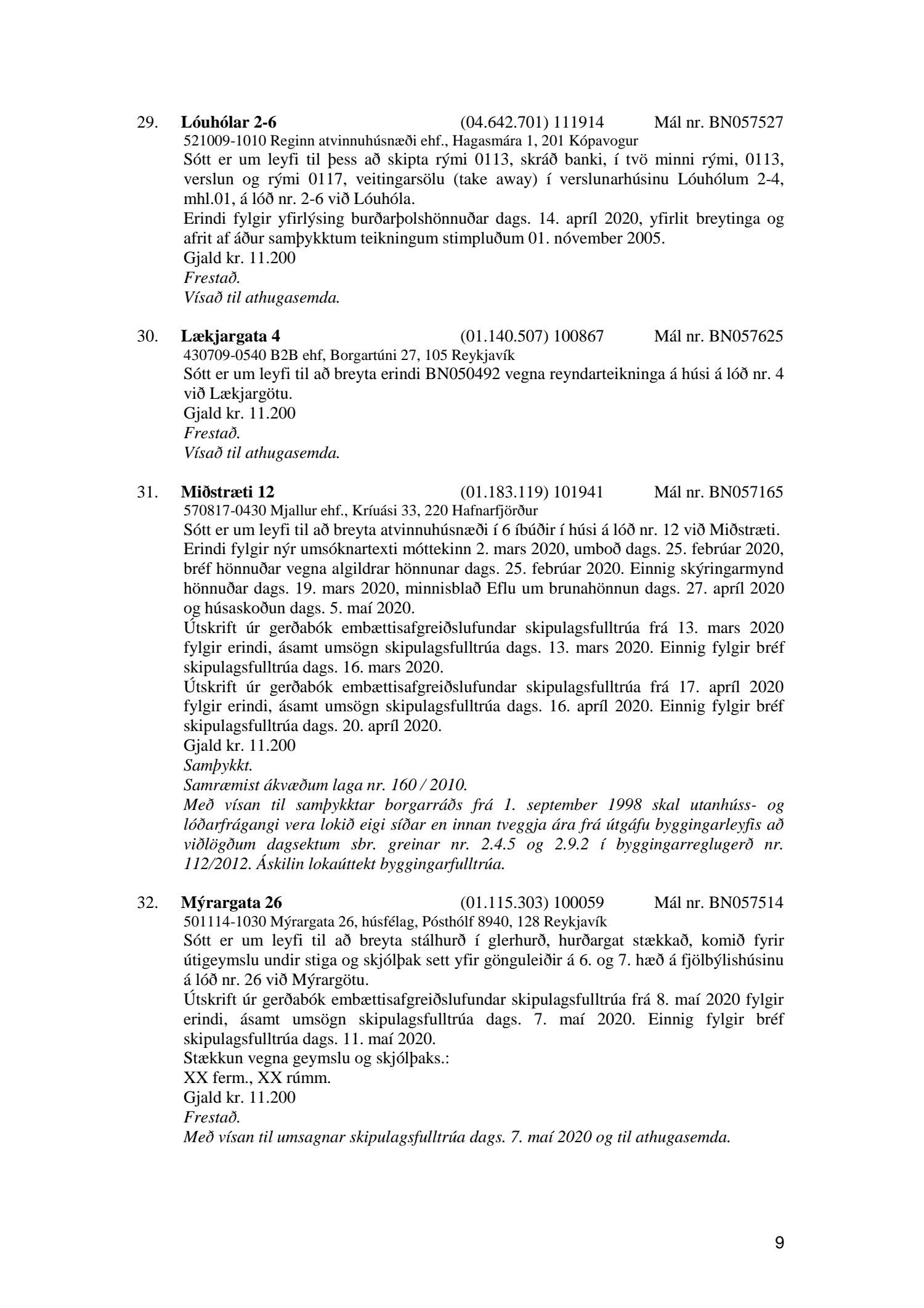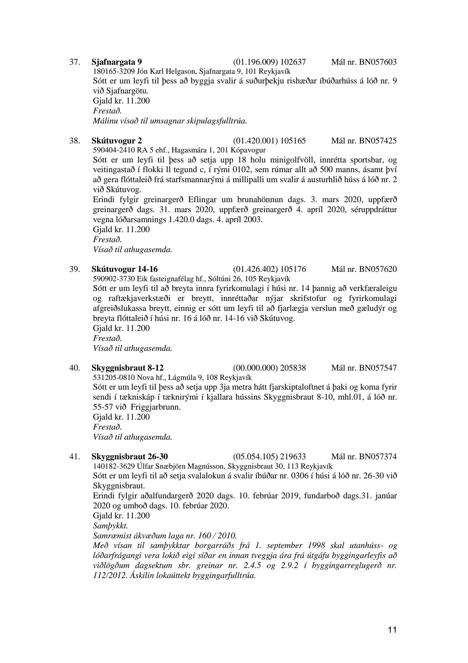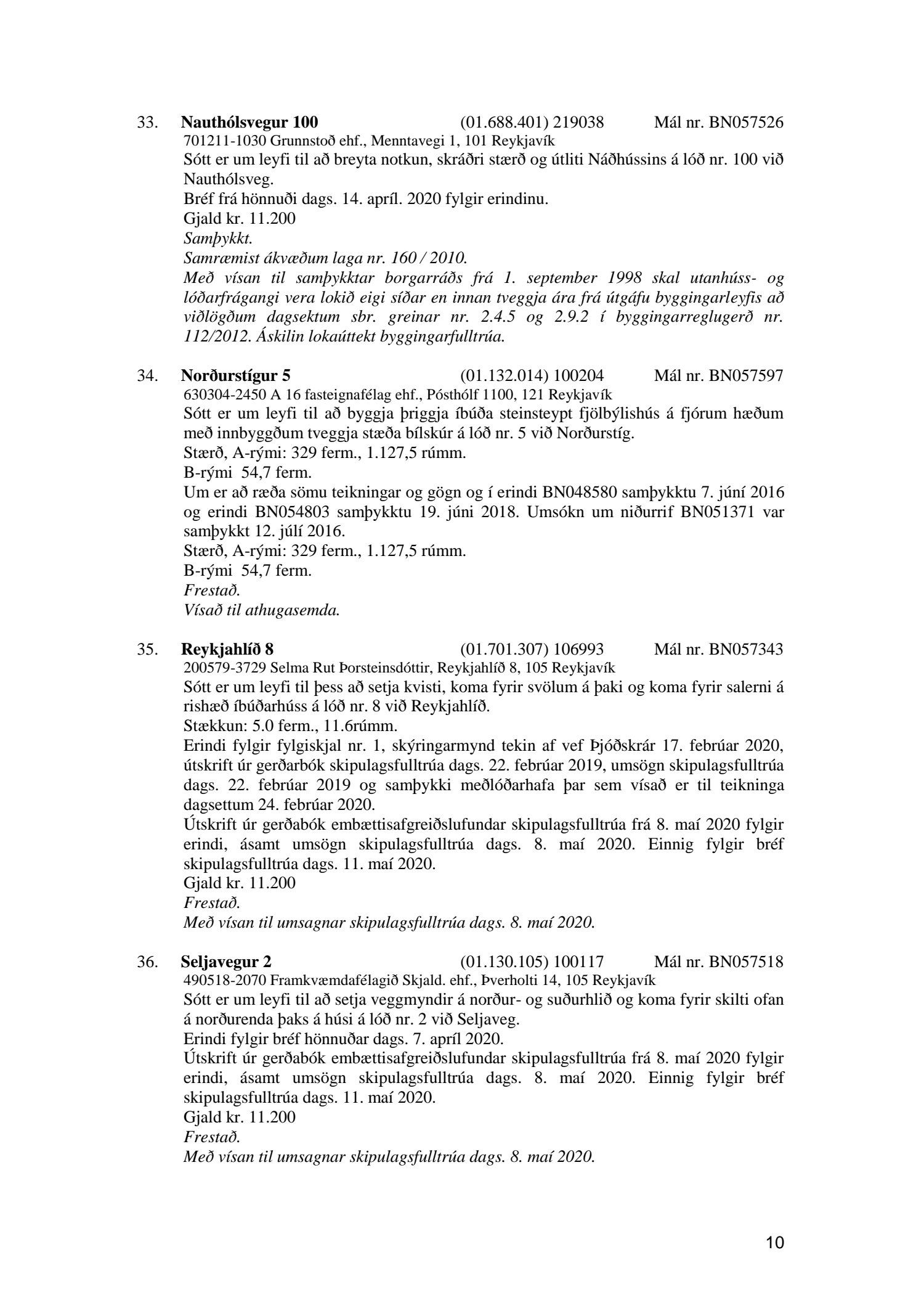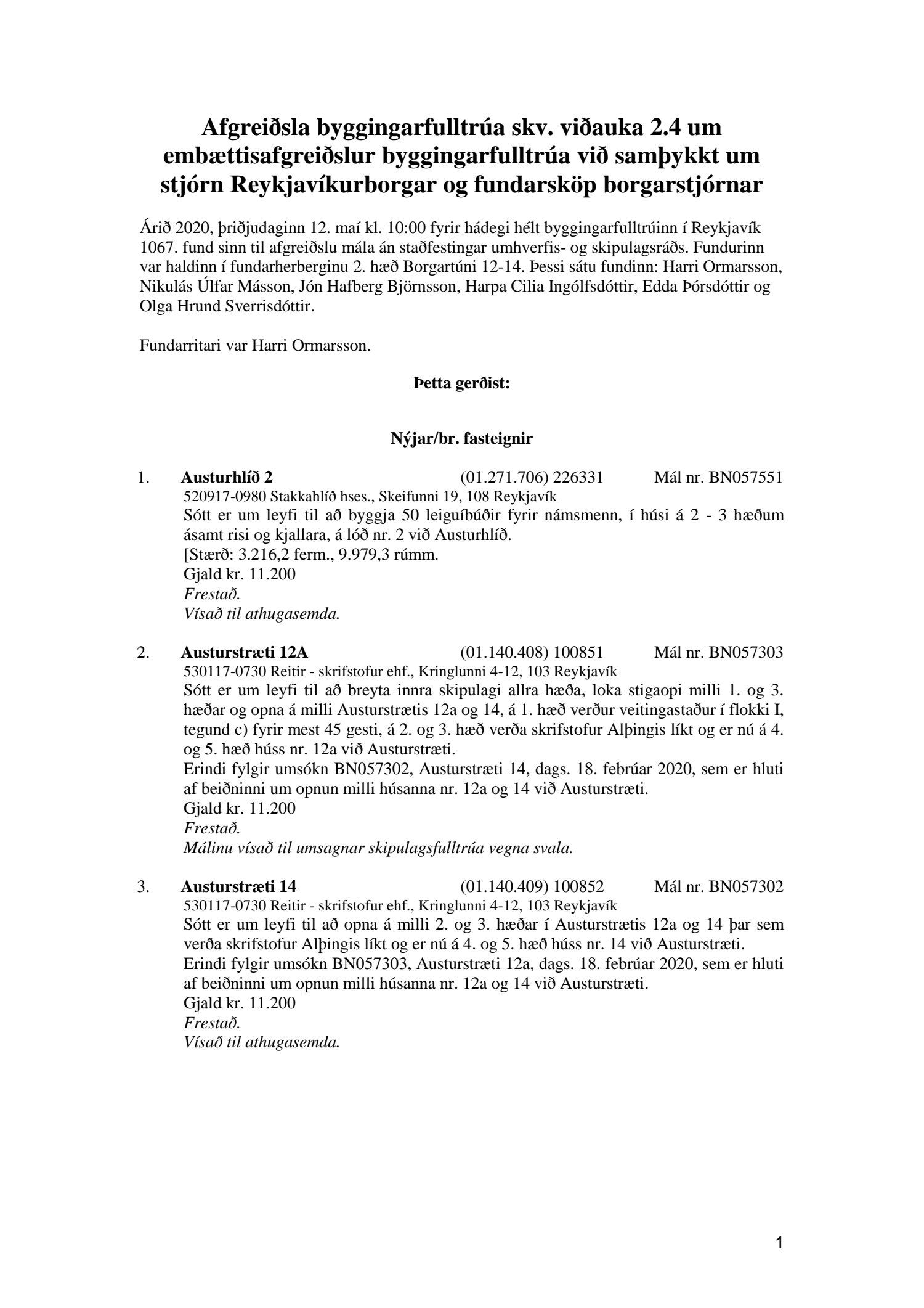 Fylgiskjal með fundargerð þessari er fundargerð afgreiðslufundar byggingarfulltrúa nr. 1067 frá 12. maí 2020.