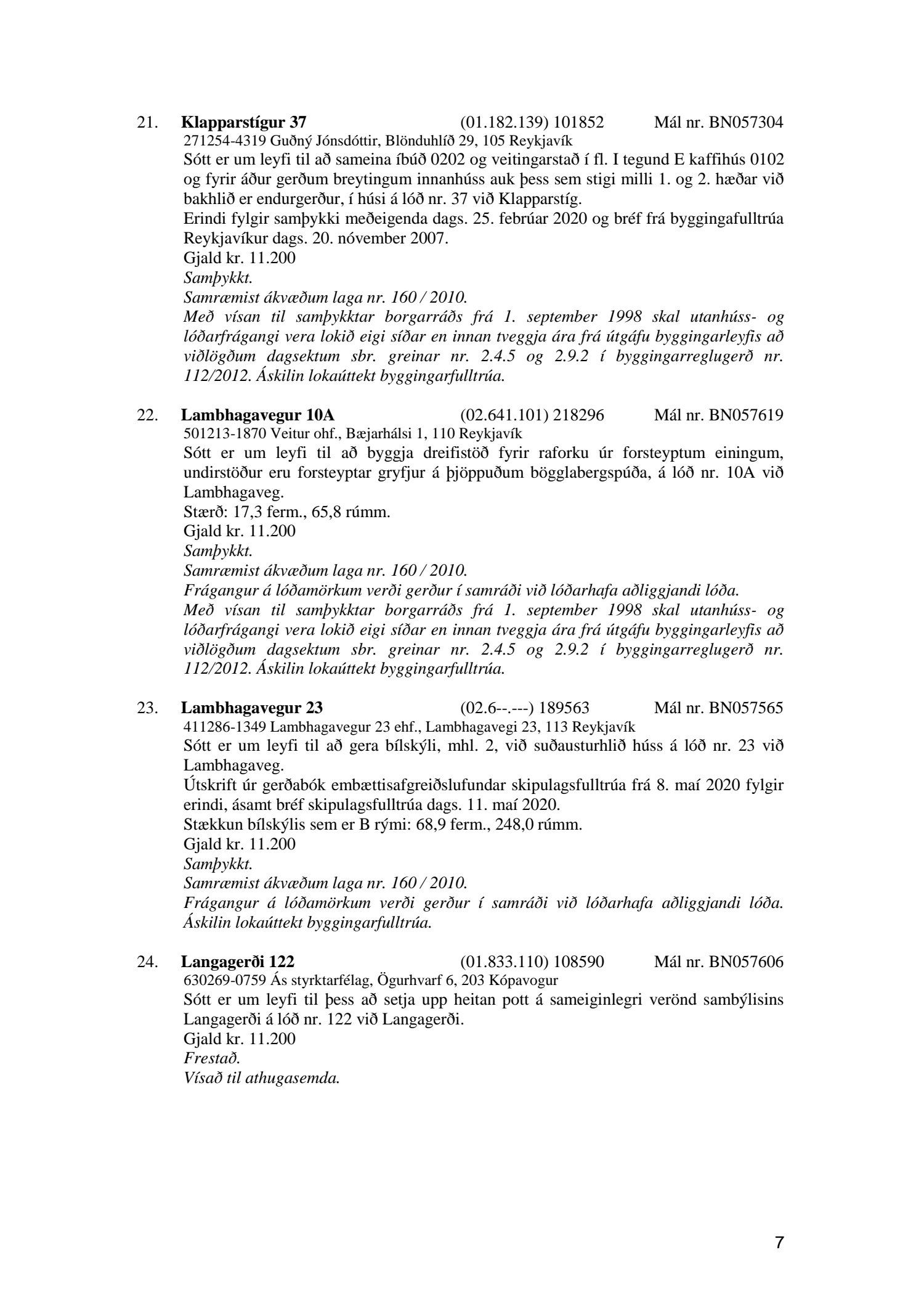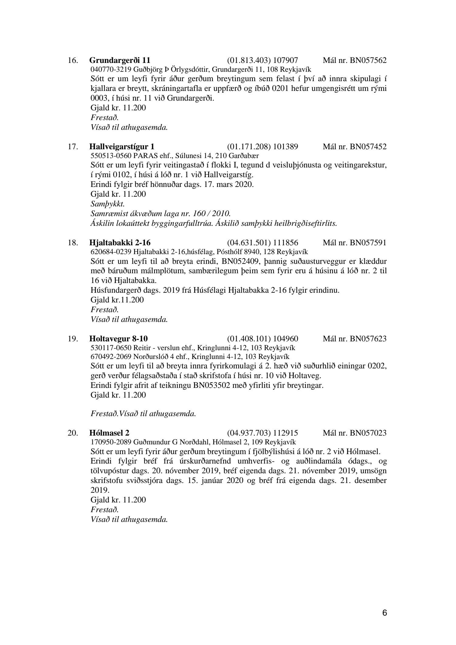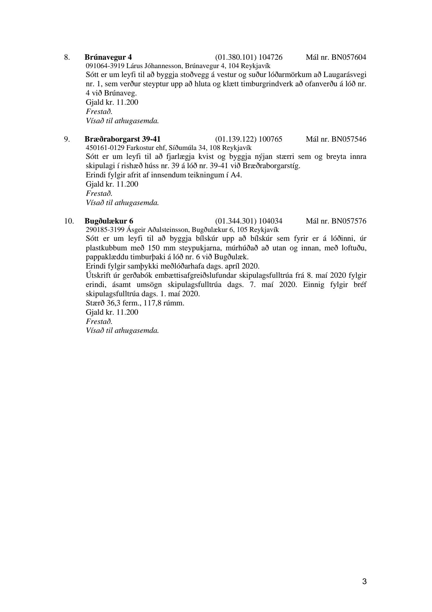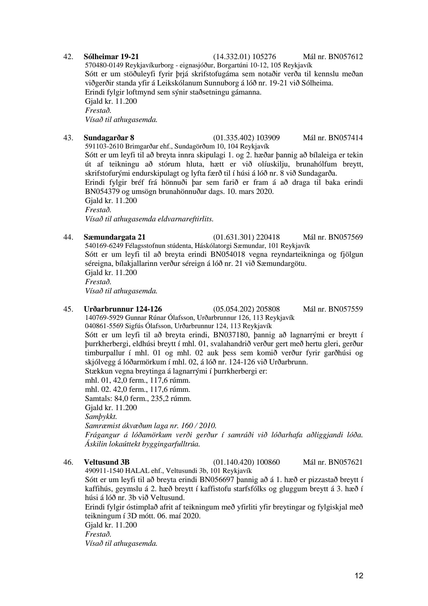 Fylgiskjal með fundargerð þessari er fundargerð afgreiðslufundar byggingarfulltrúa nr. 1067 frá 12. maí 2020.