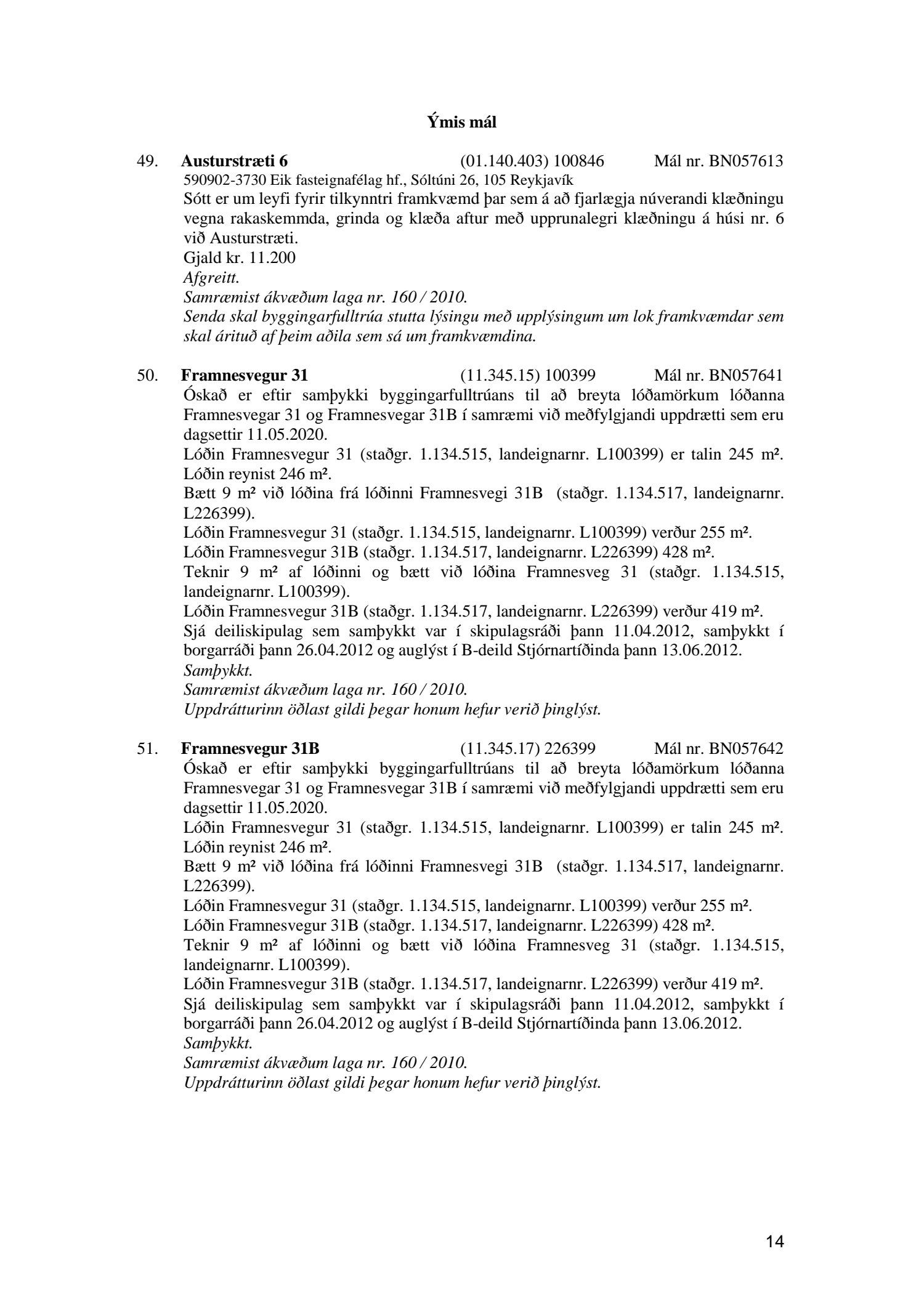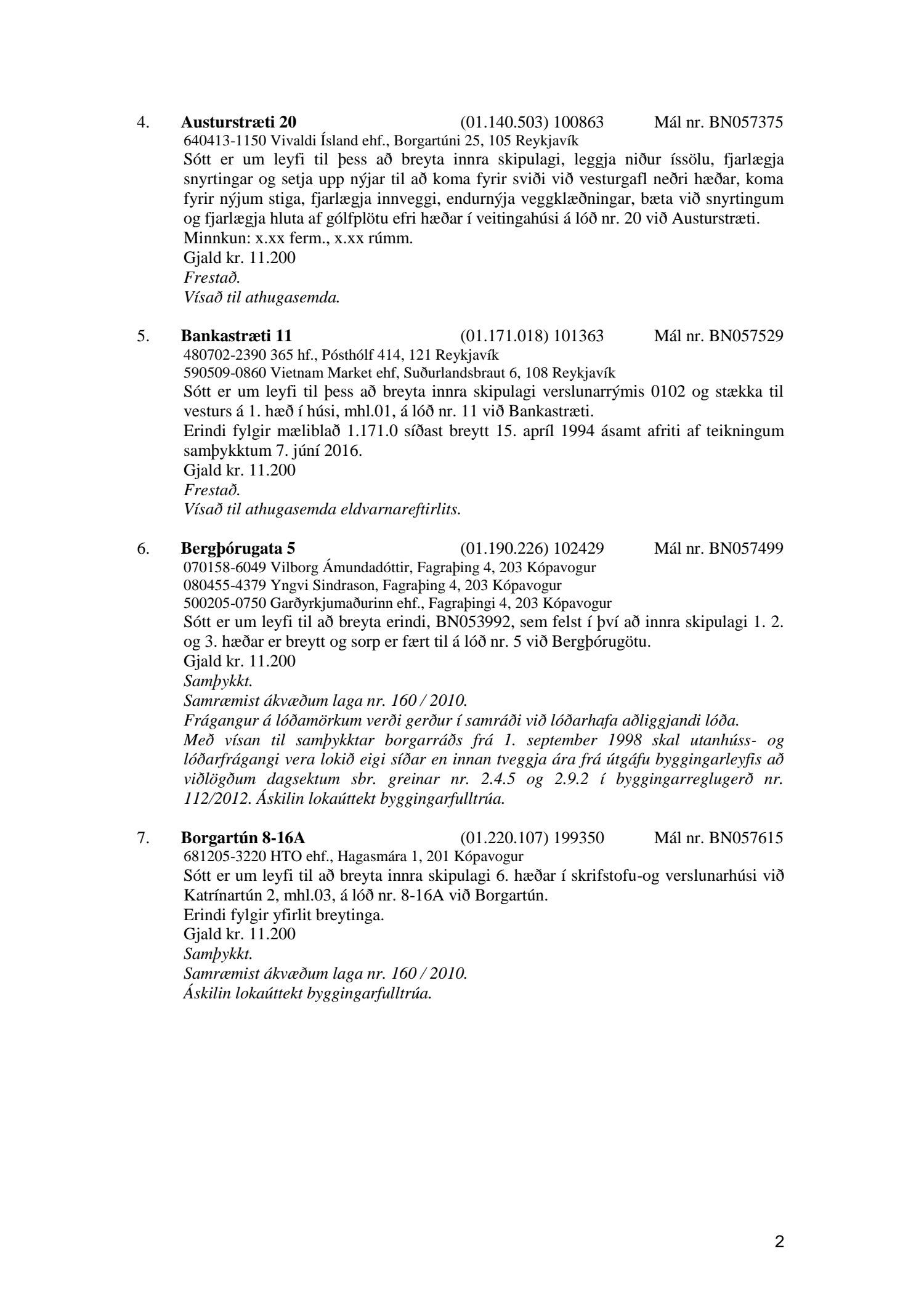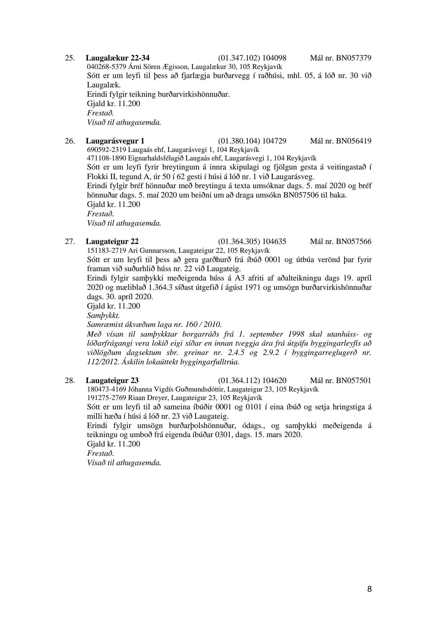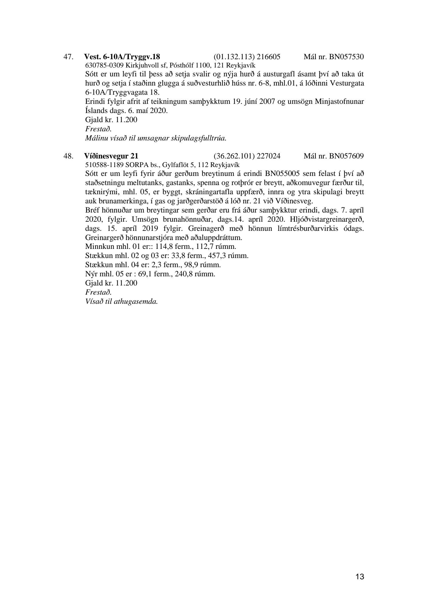 Fylgiskjal með fundargerð þessari er fundargerð afgreiðslufundar byggingarfulltrúa nr. 1067 frá 12. maí 2020.