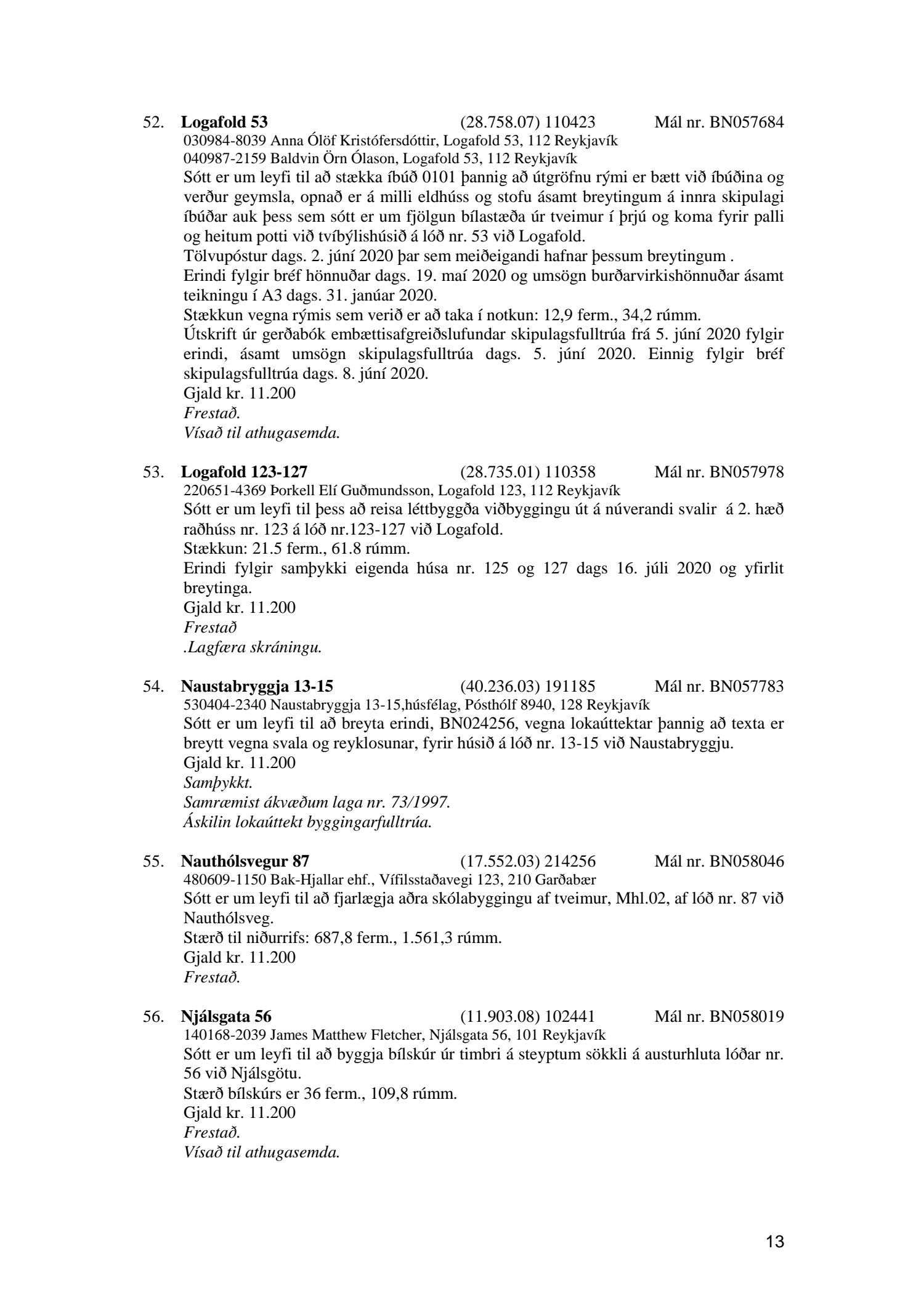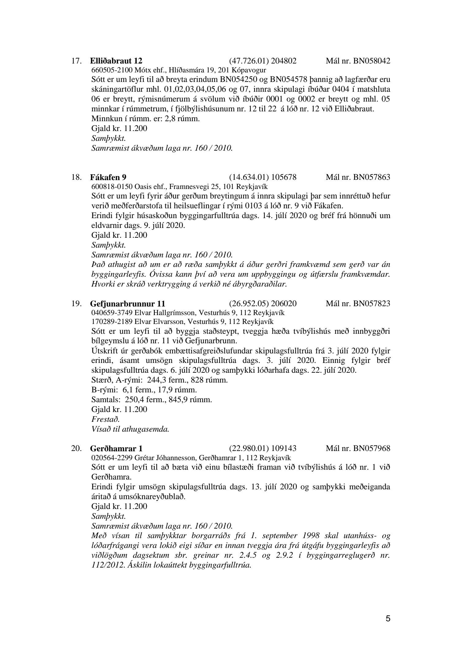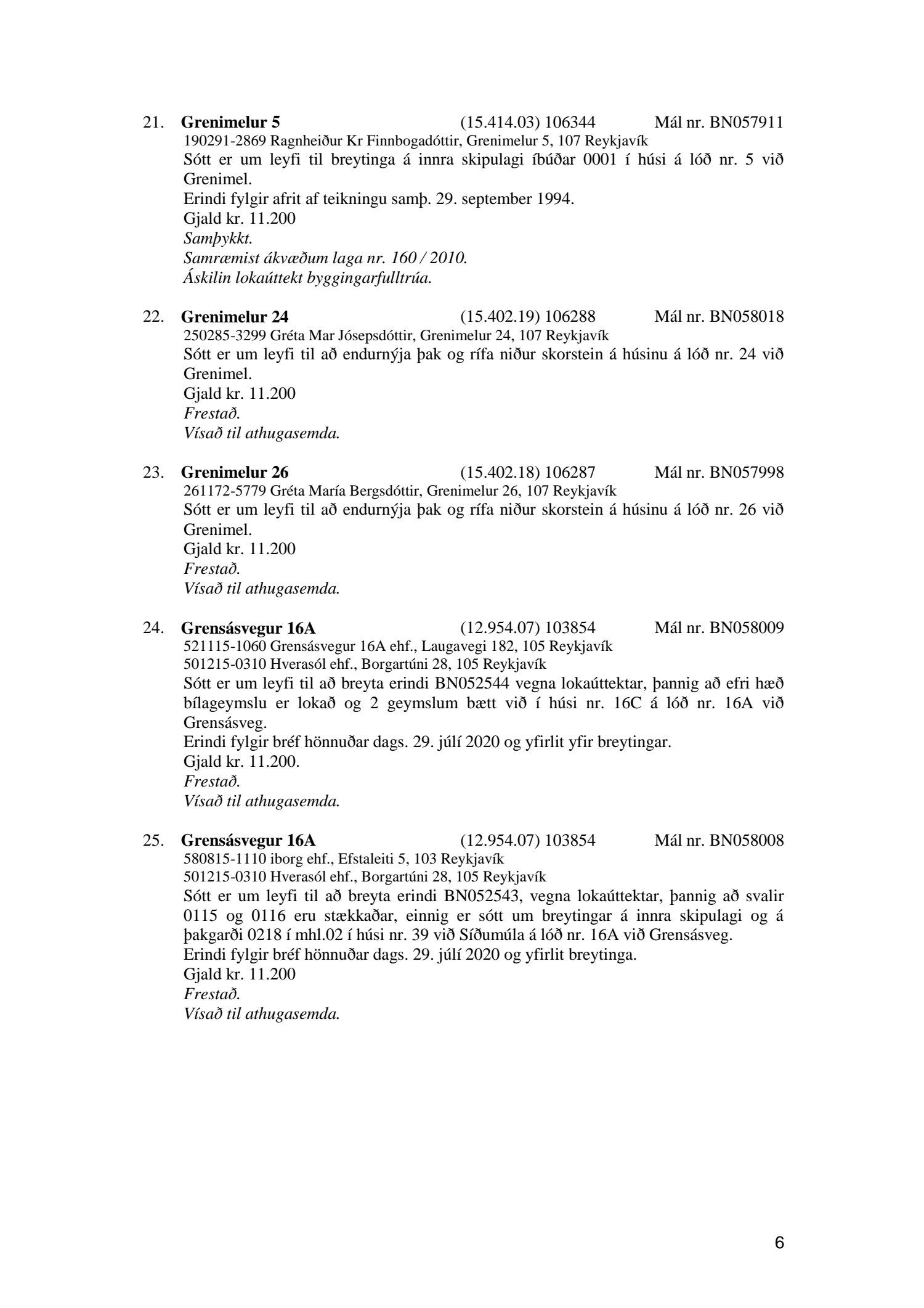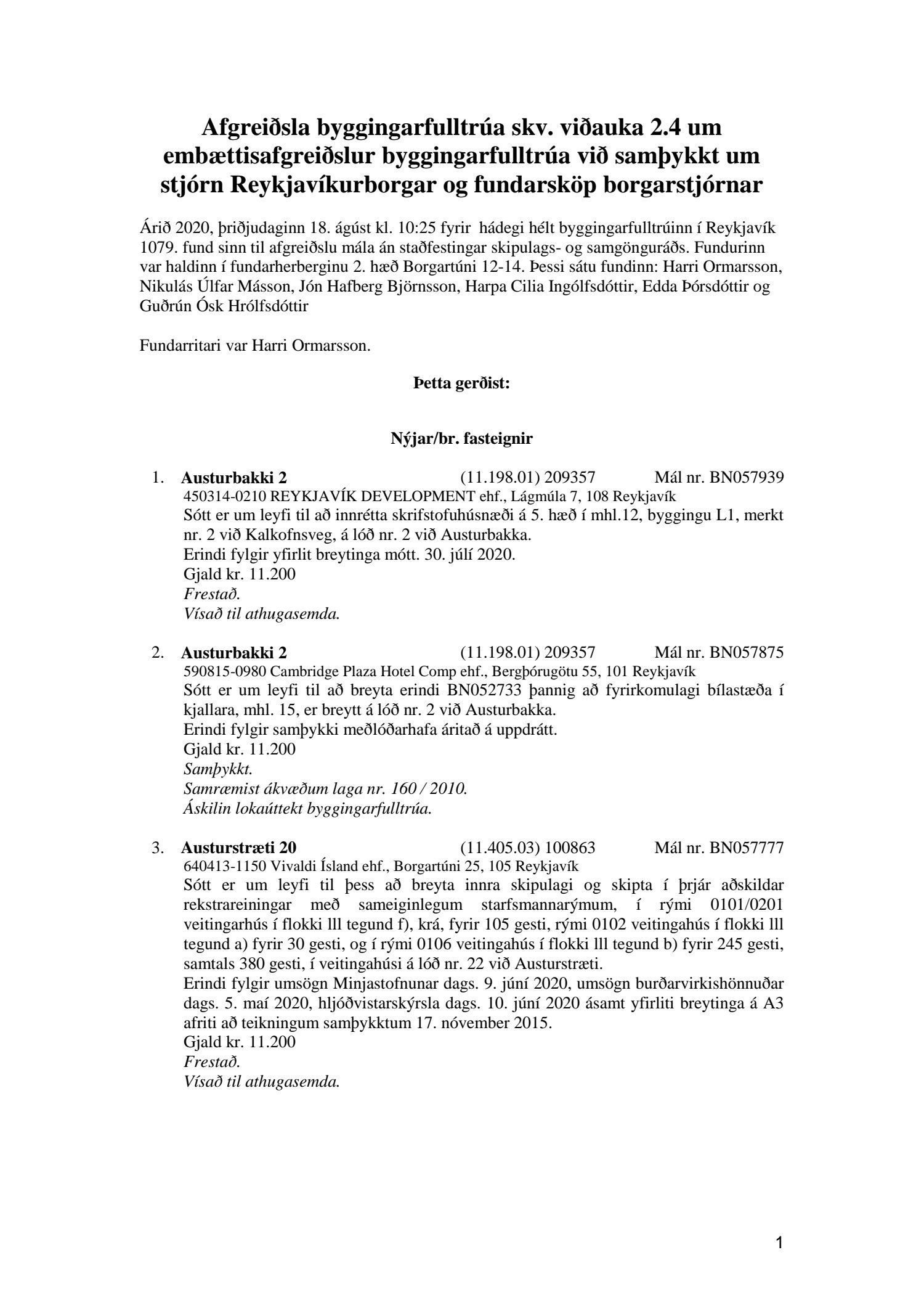 Fylgiskjal með fundargerð þessari er fundargerð afgreiðslufundar byggingarfulltrúa nr. 1079 frá 18. ágúst 2020.