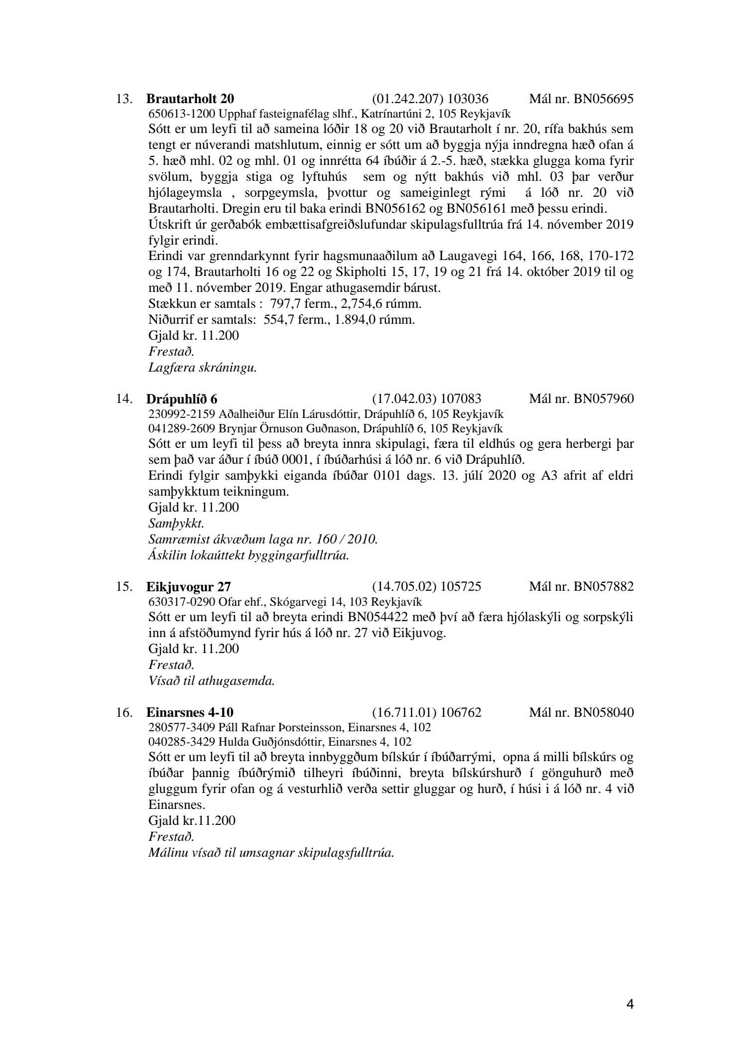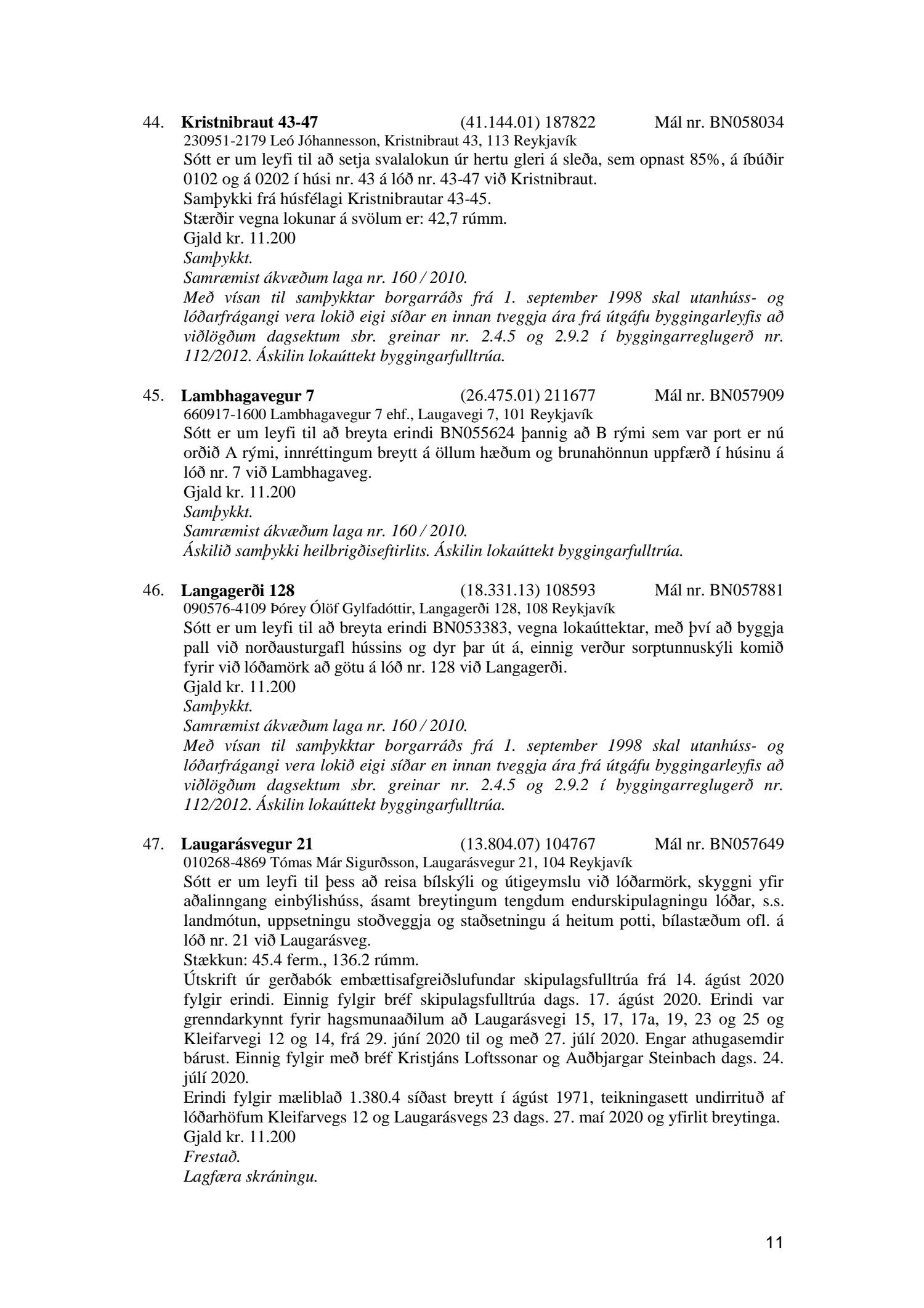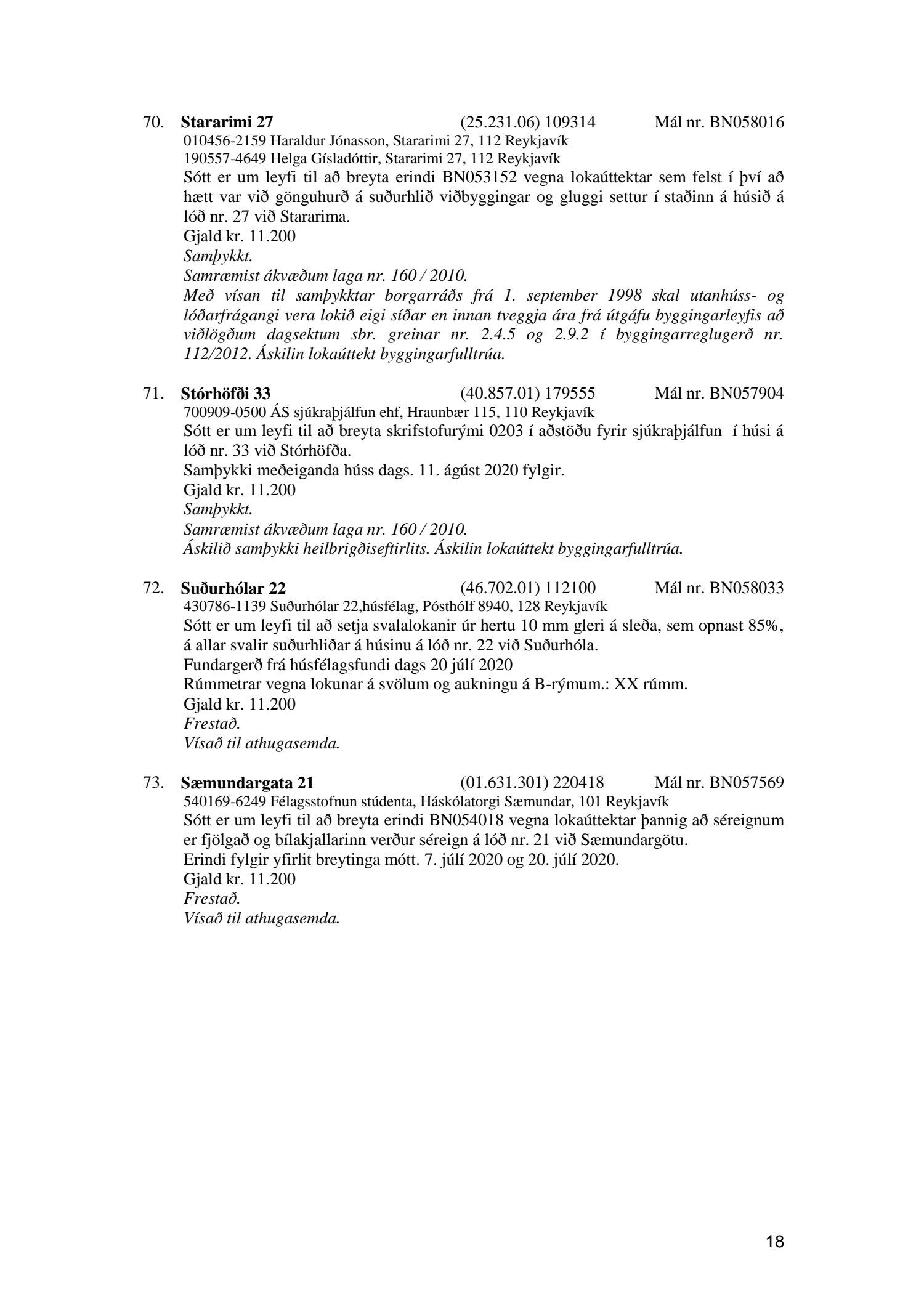 Fylgiskjal með fundargerð þessari er fundargerð afgreiðslufundar byggingarfulltrúa nr. 1079 frá 18. ágúst 2020.