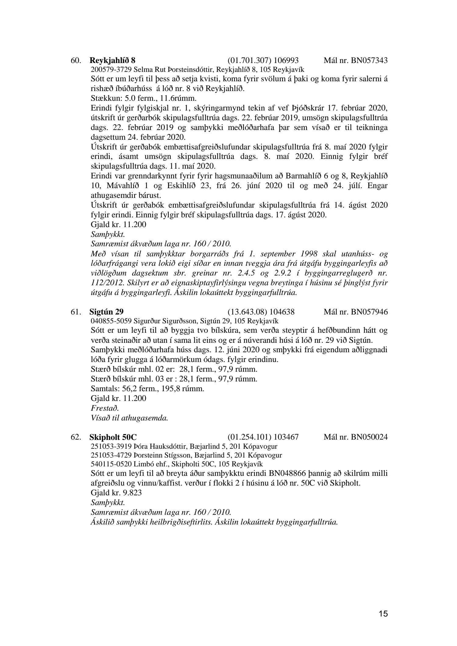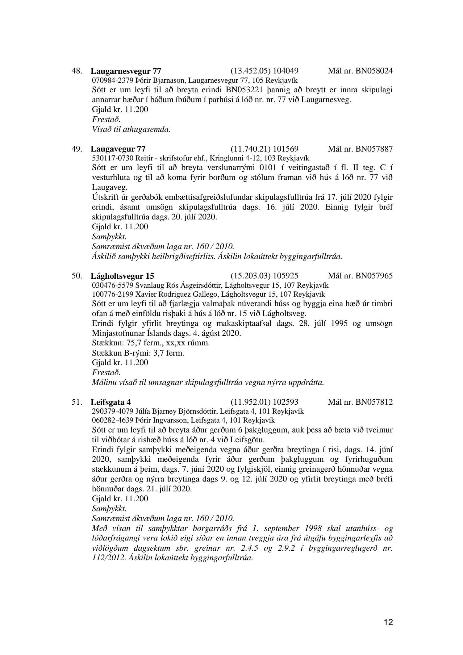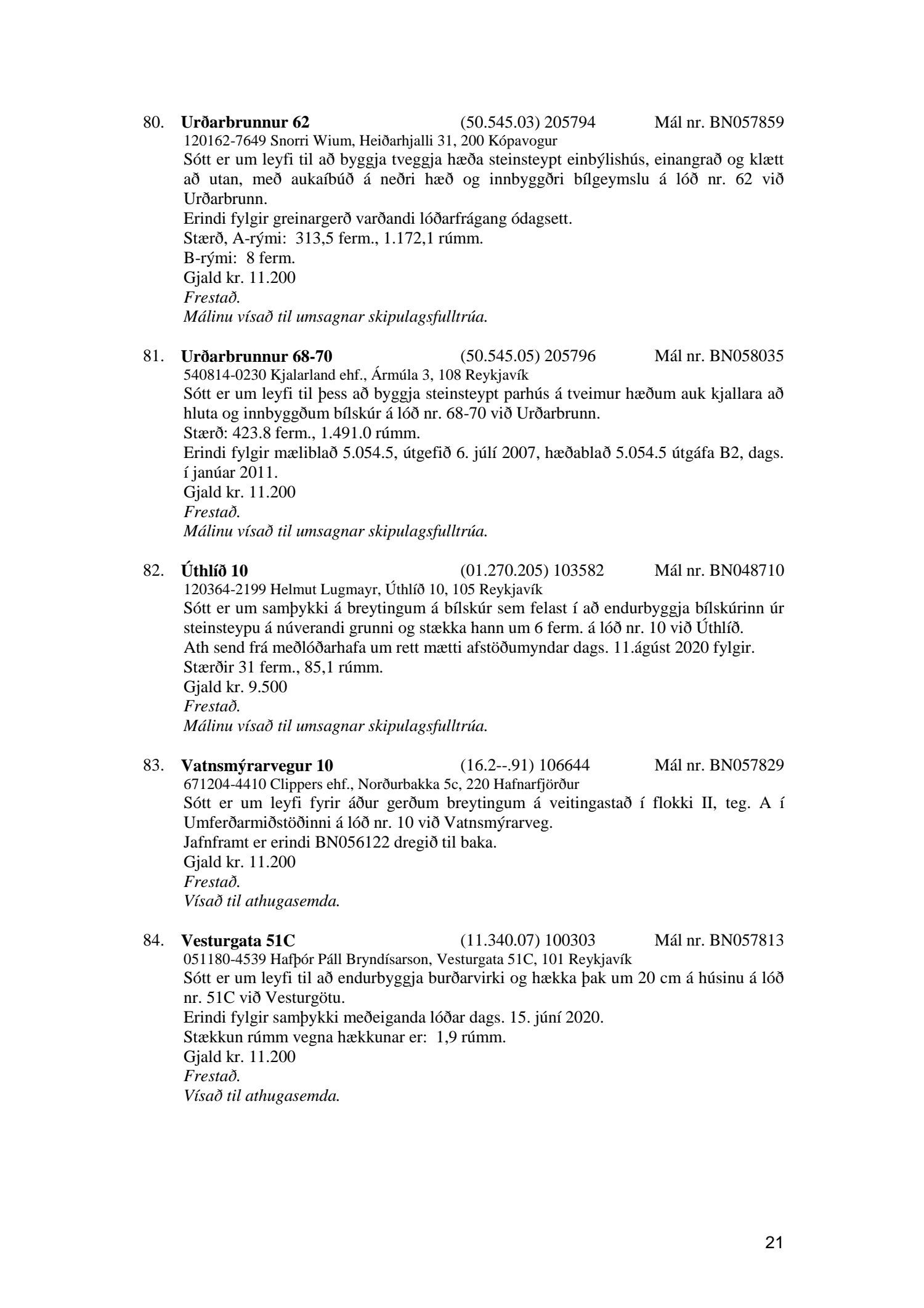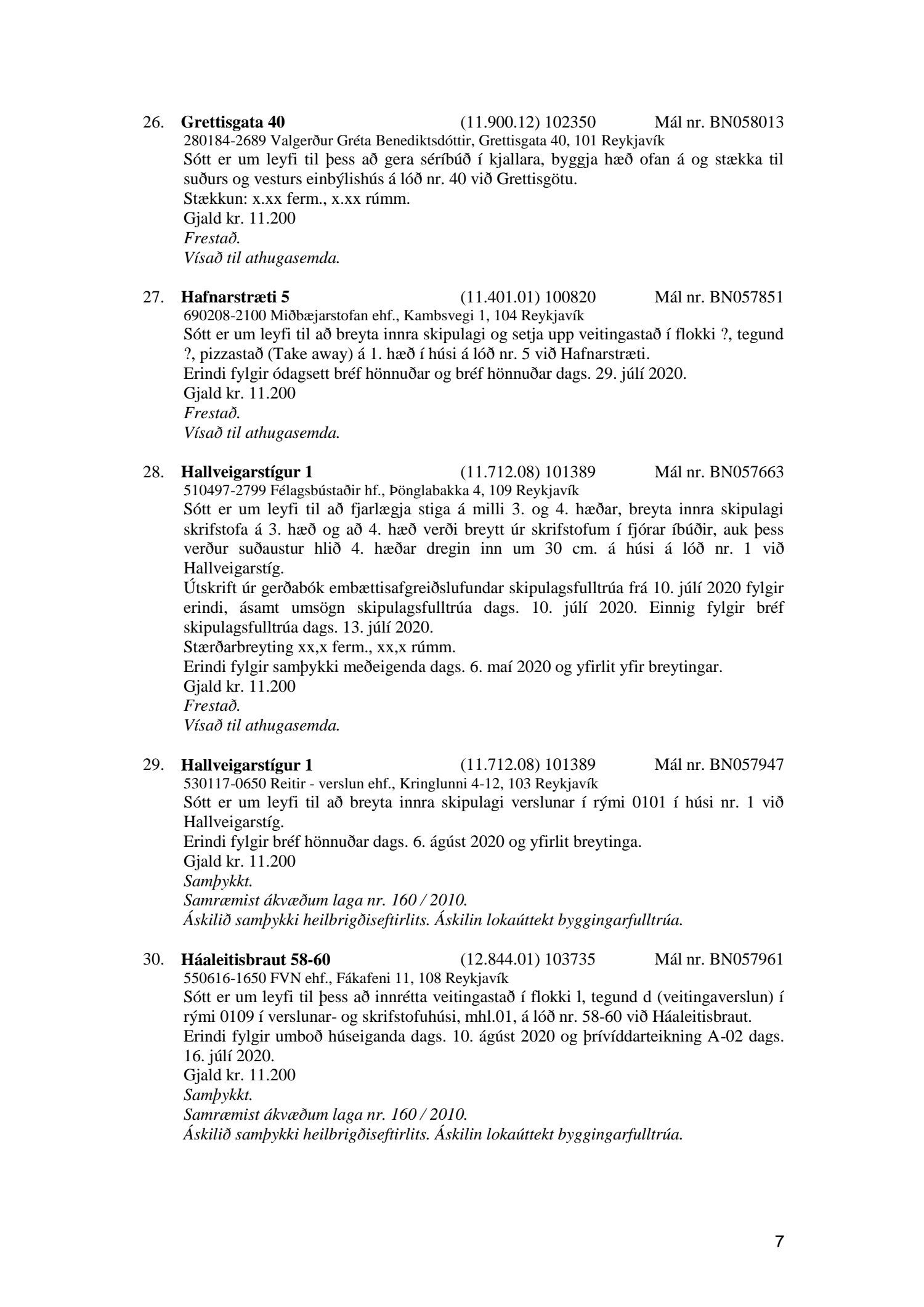 Fylgiskjal með fundargerð þessari er fundargerð afgreiðslufundar byggingarfulltrúa nr. 1079 frá 18. ágúst 2020.