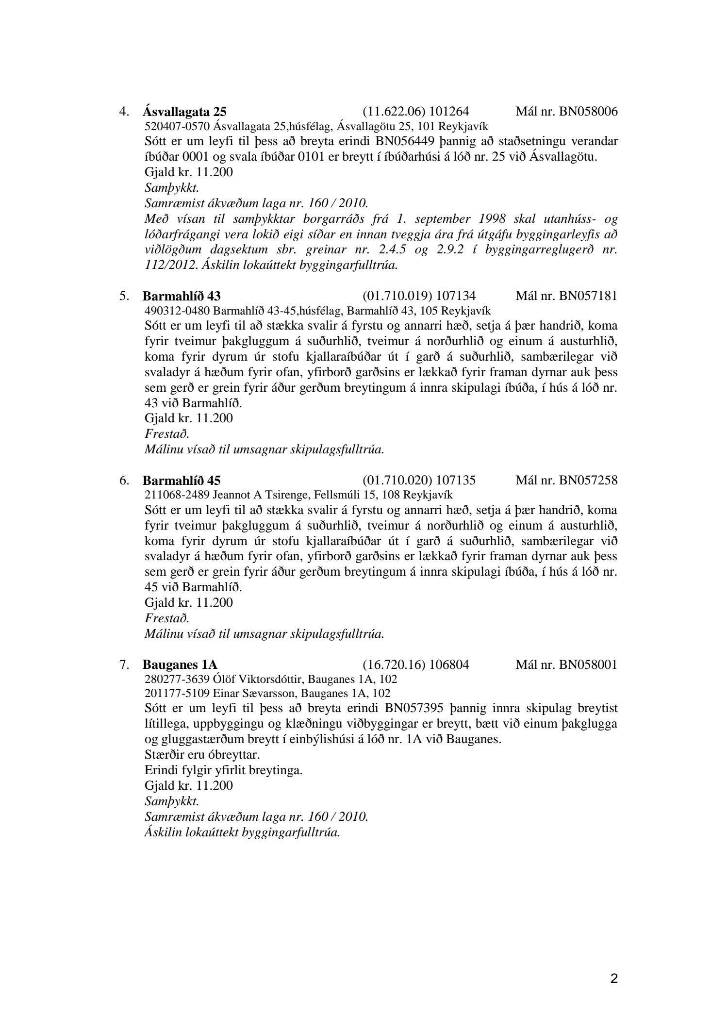 Afgreiðslufundur byggingarfulltrúa, fundargerð