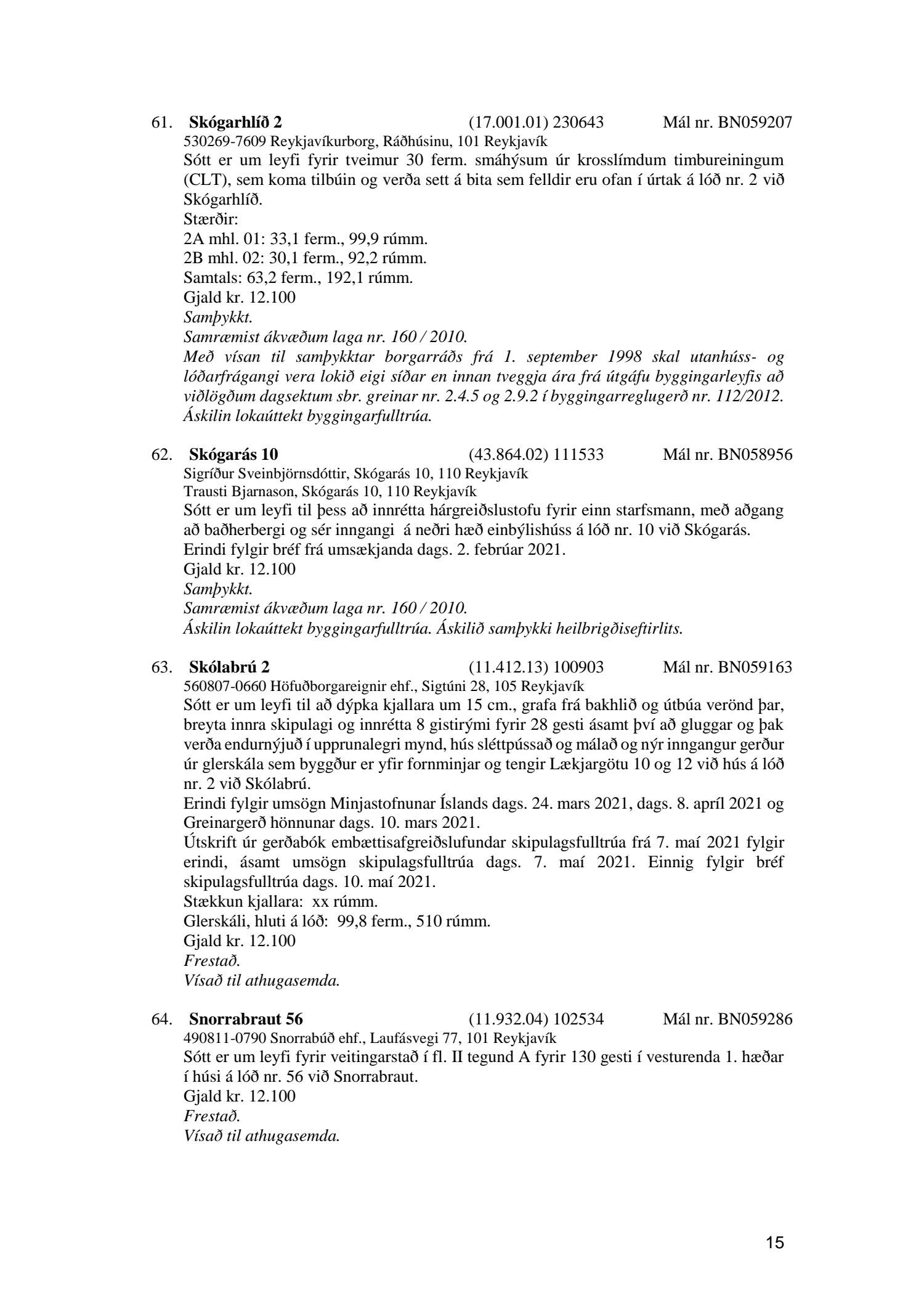 Umhverfis- og skipulagsráð nr. 61