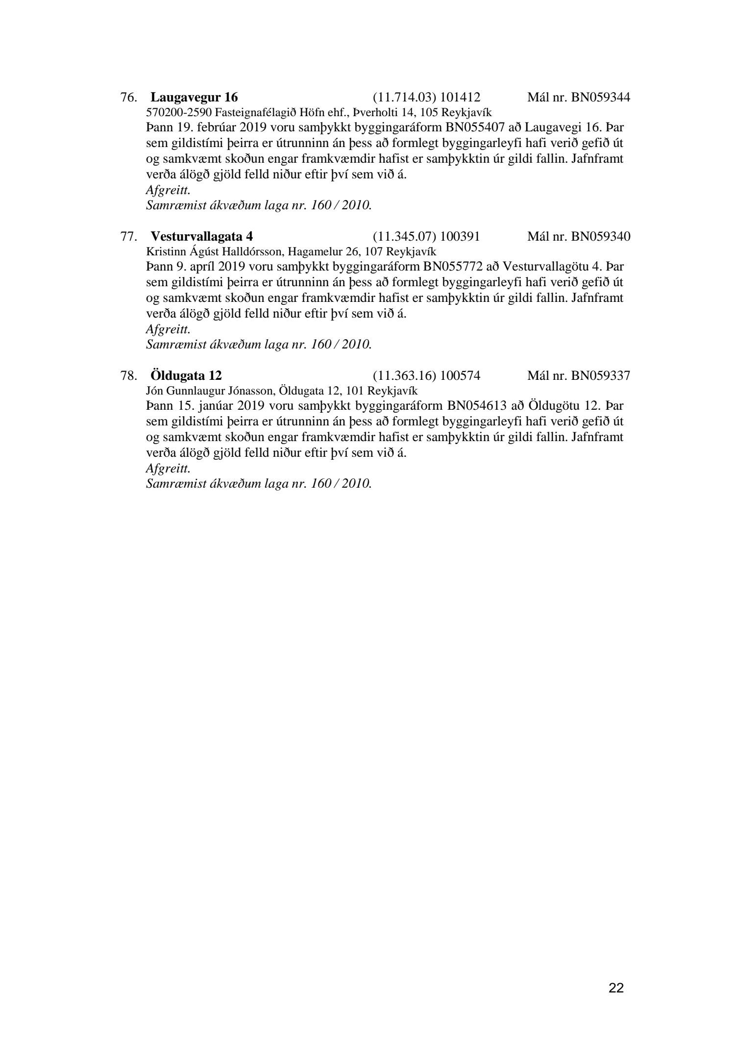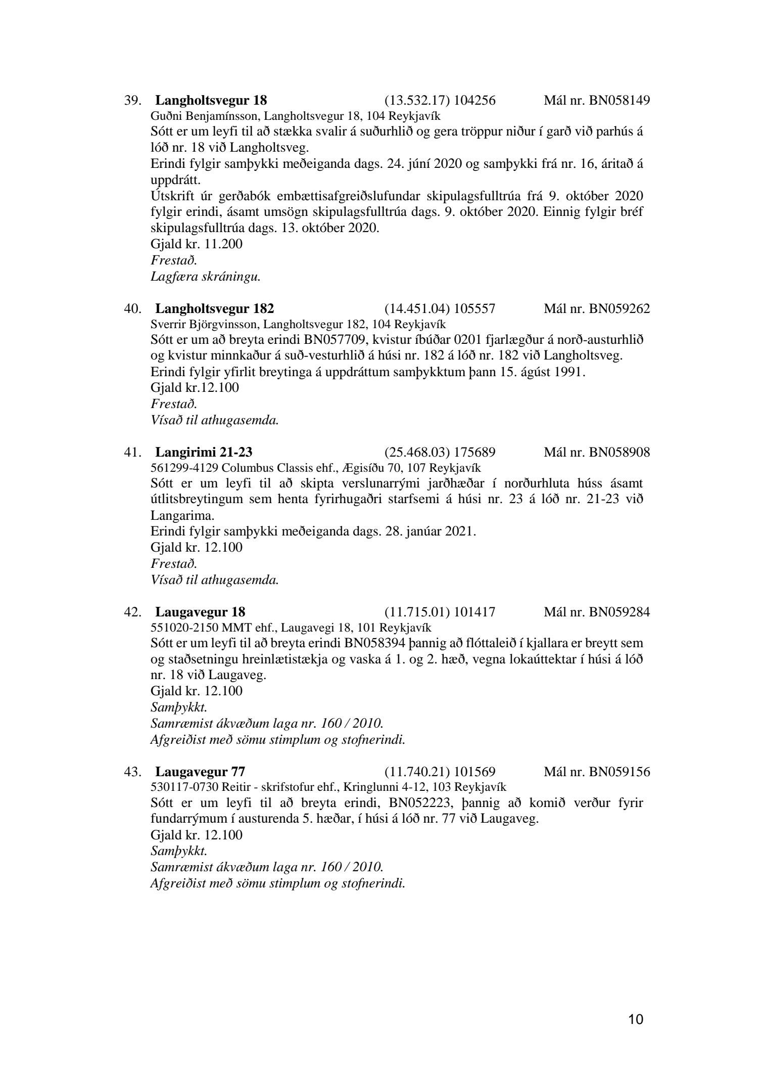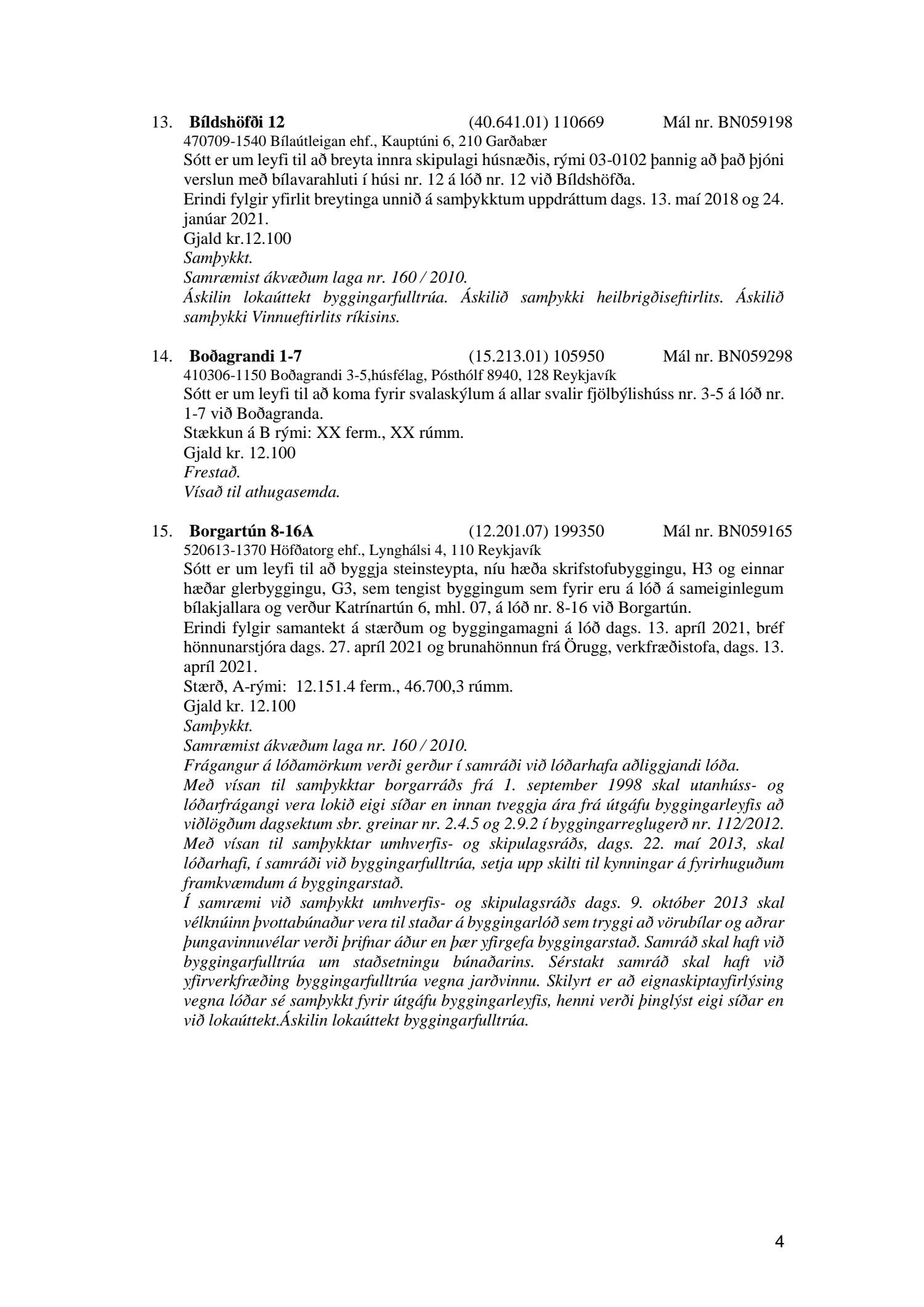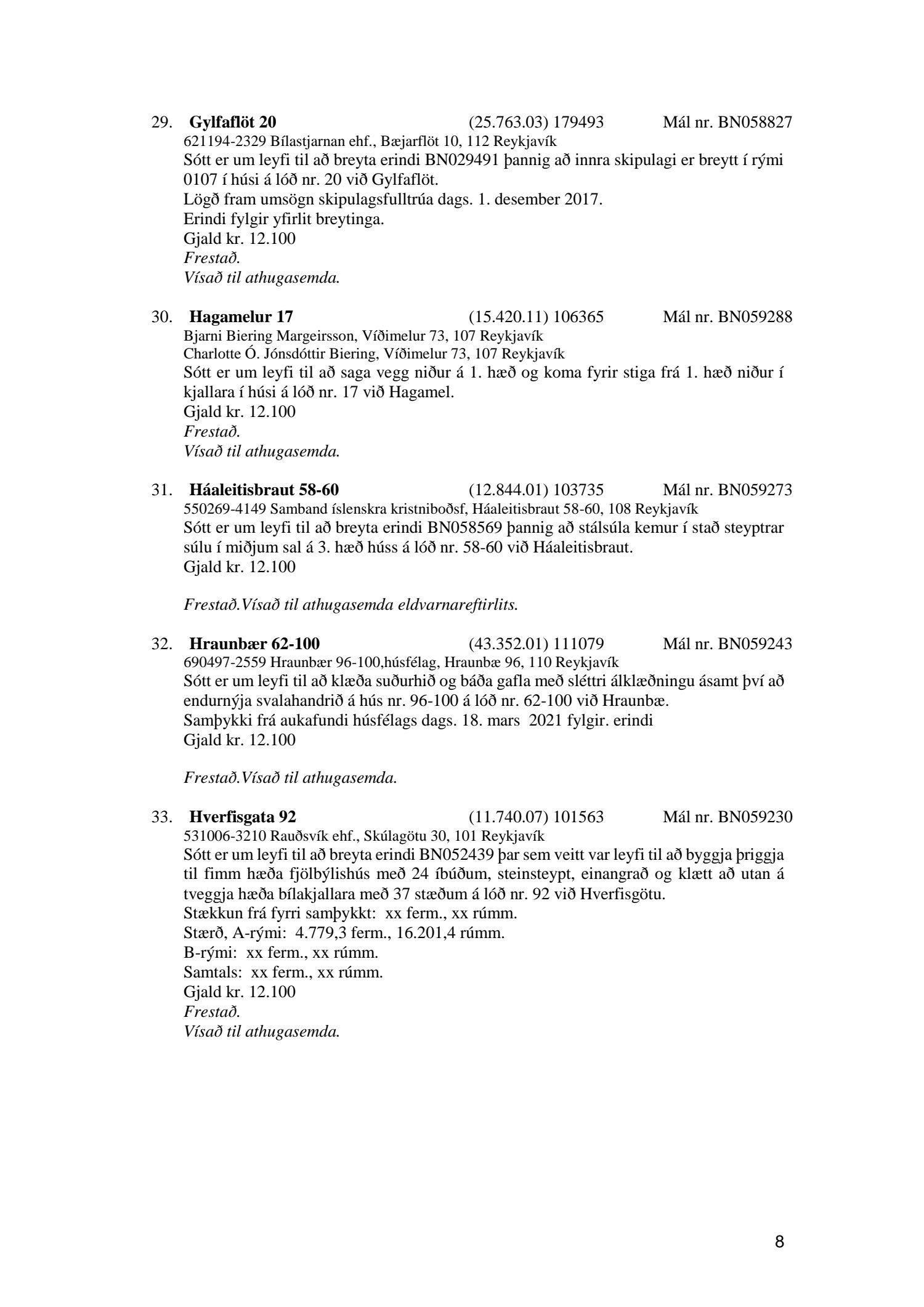 Afgreiðslufundur byggingarfulltrúa, fundargerð