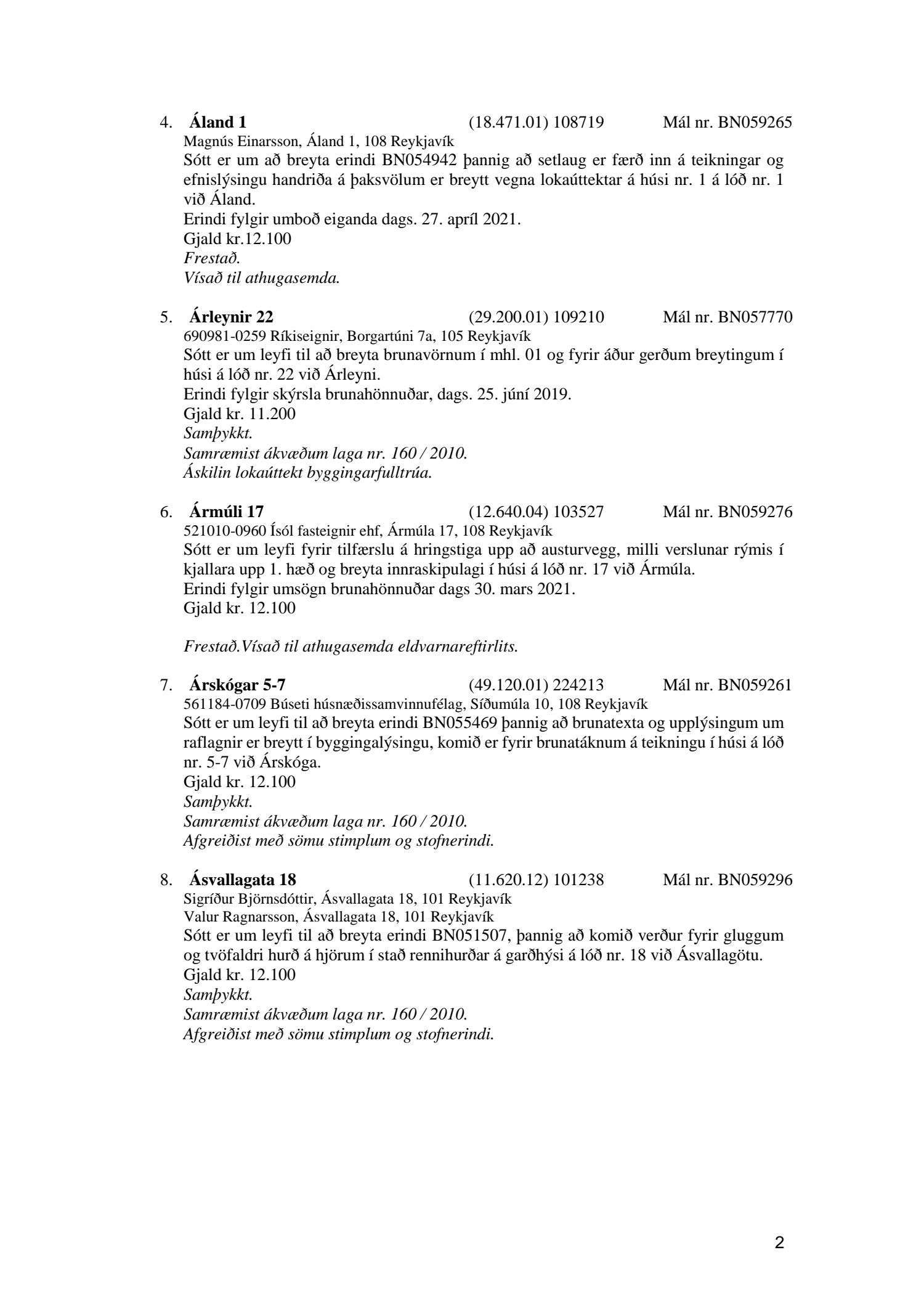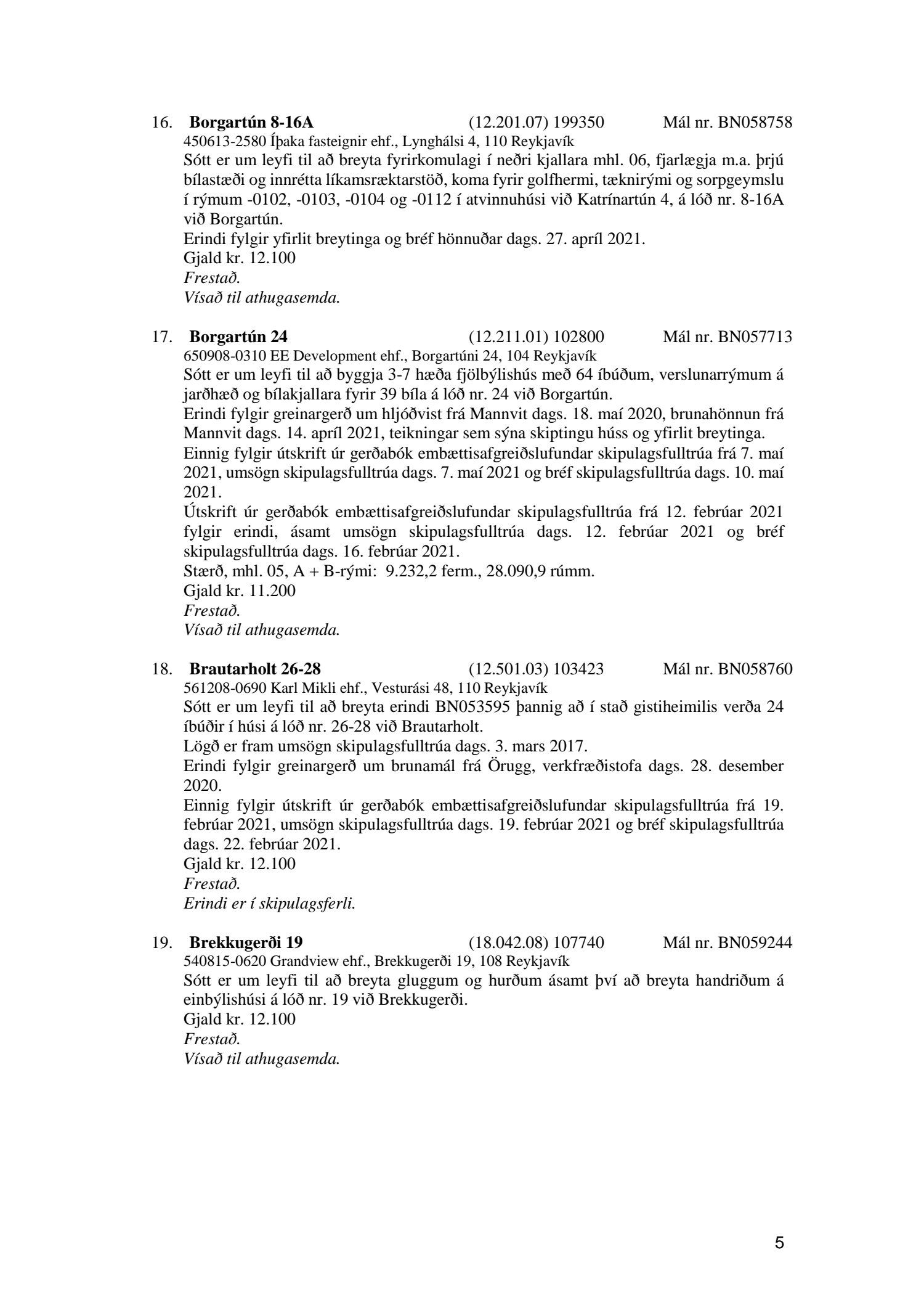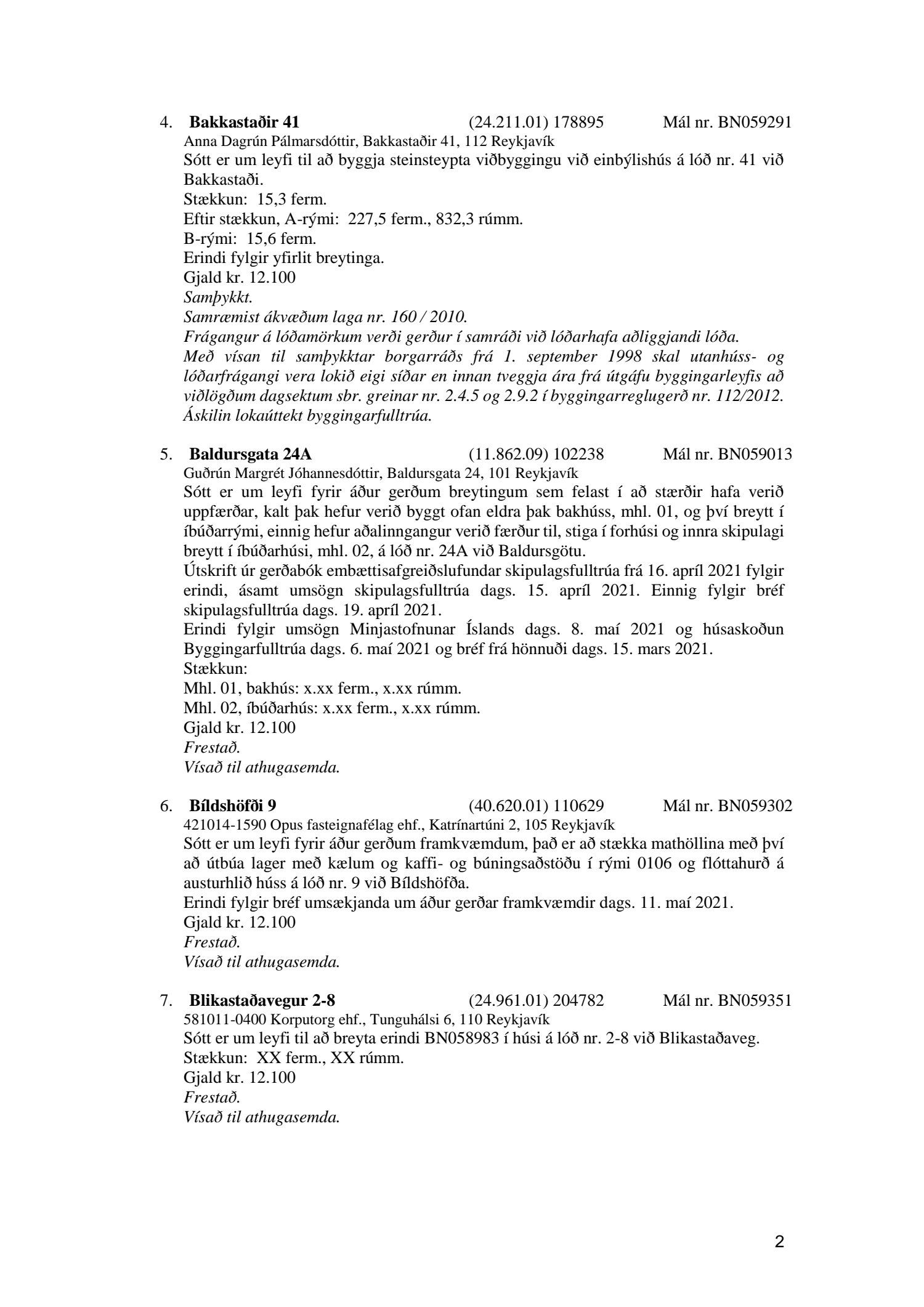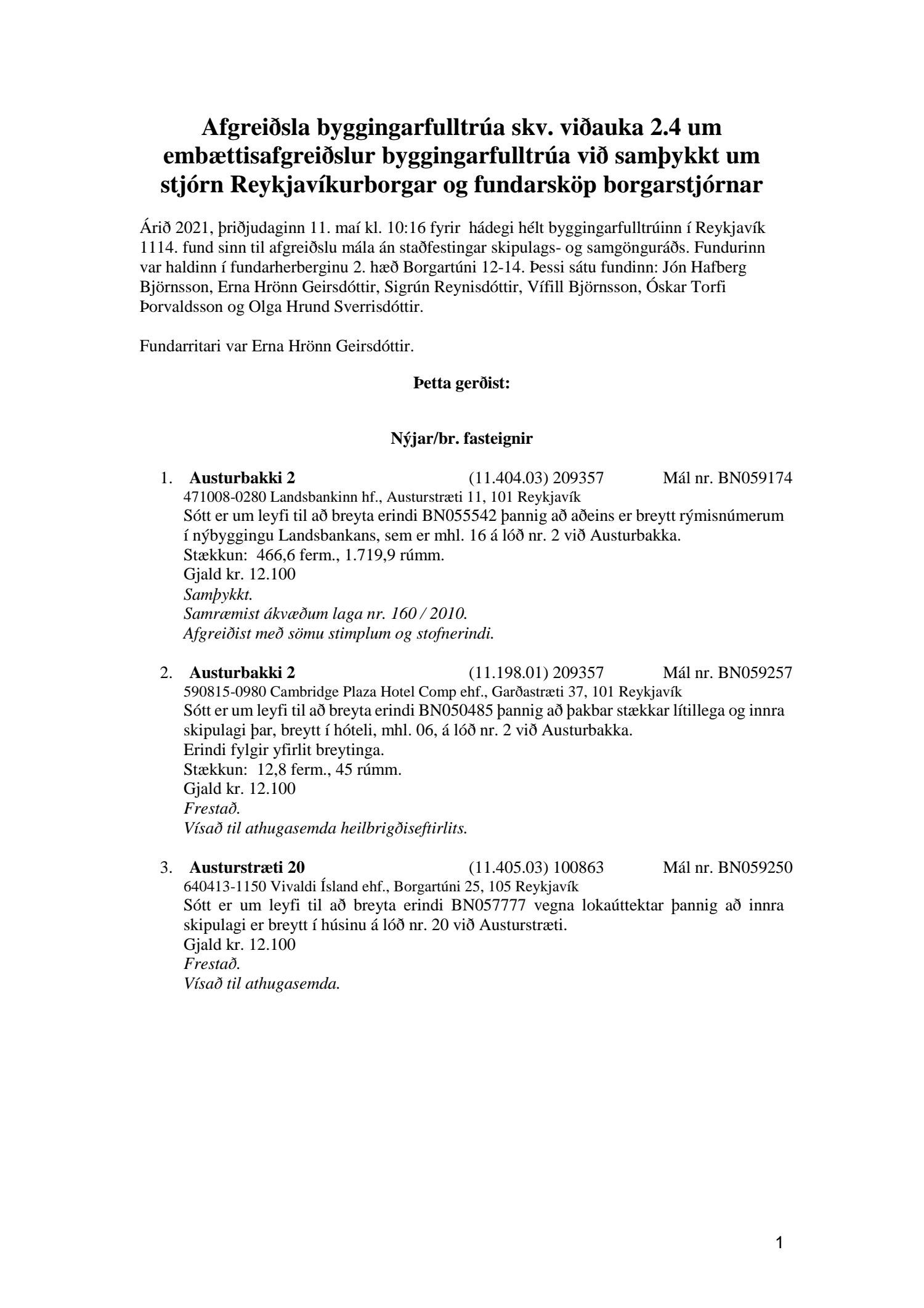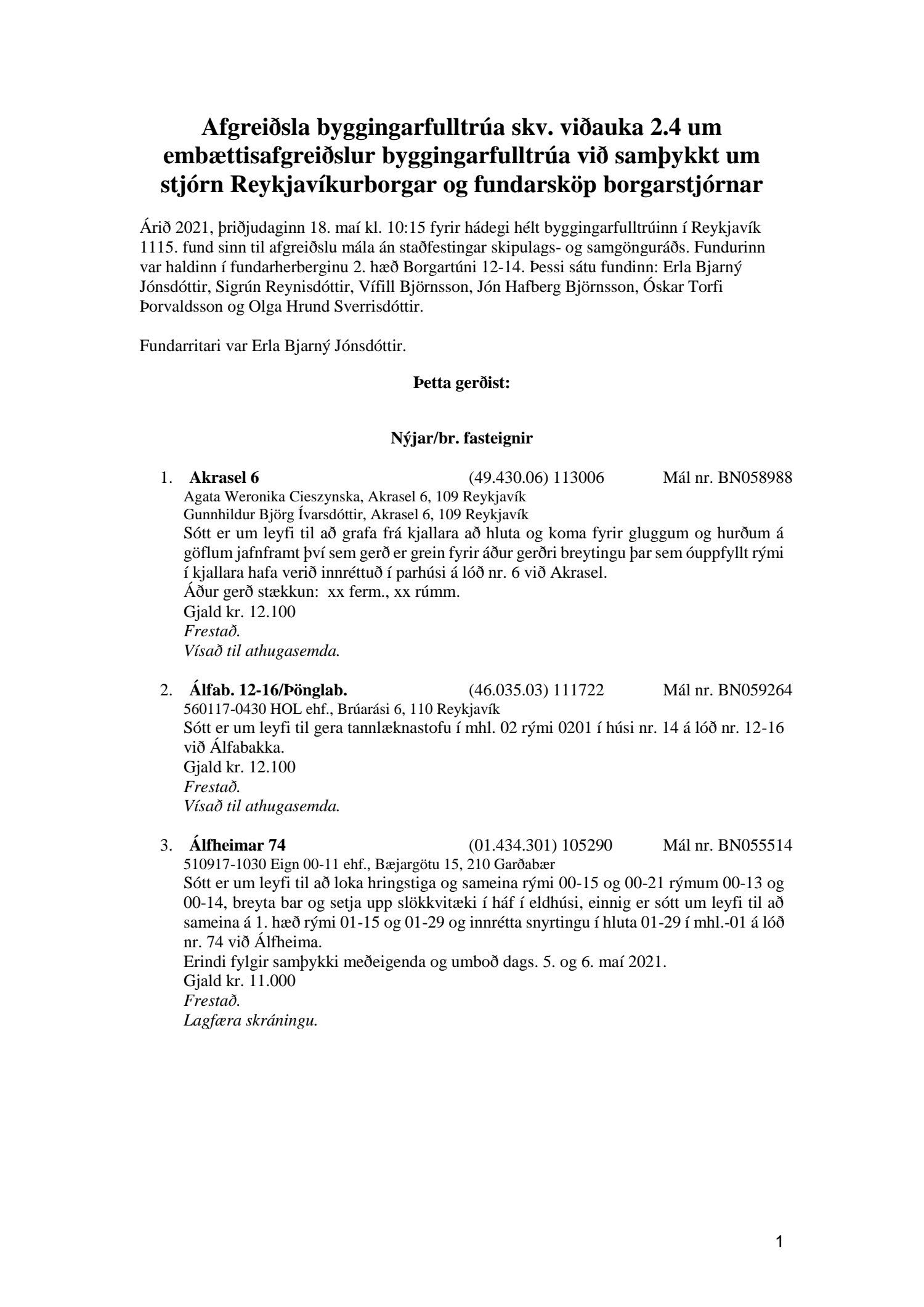 Fylgiskjal með fundargerð þessari er fundargerð afgreiðslufundar byggingarfulltrúa nr. 1114 frá 11. maí 2021 og nr. 1115 frá 18. maí 2021.