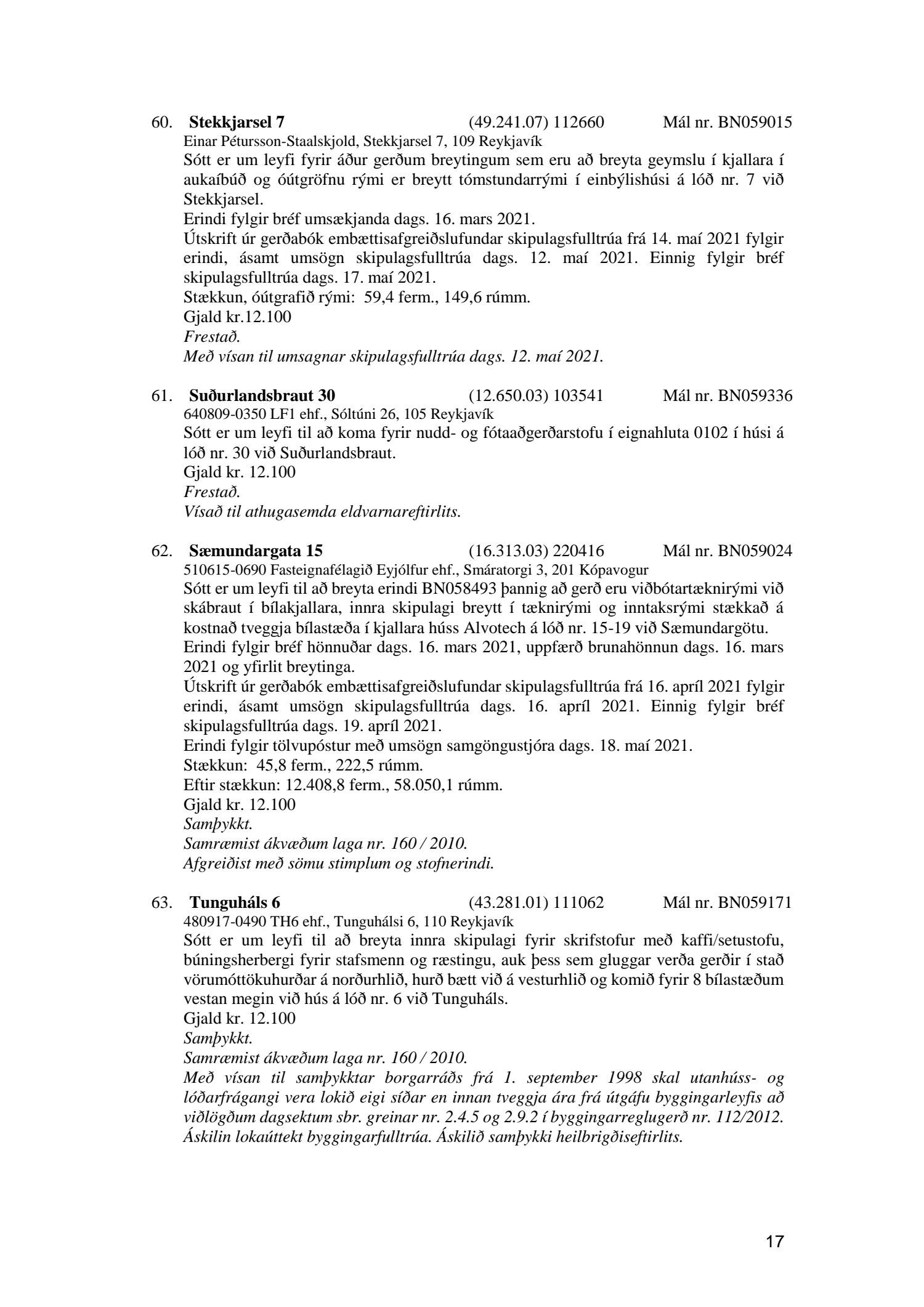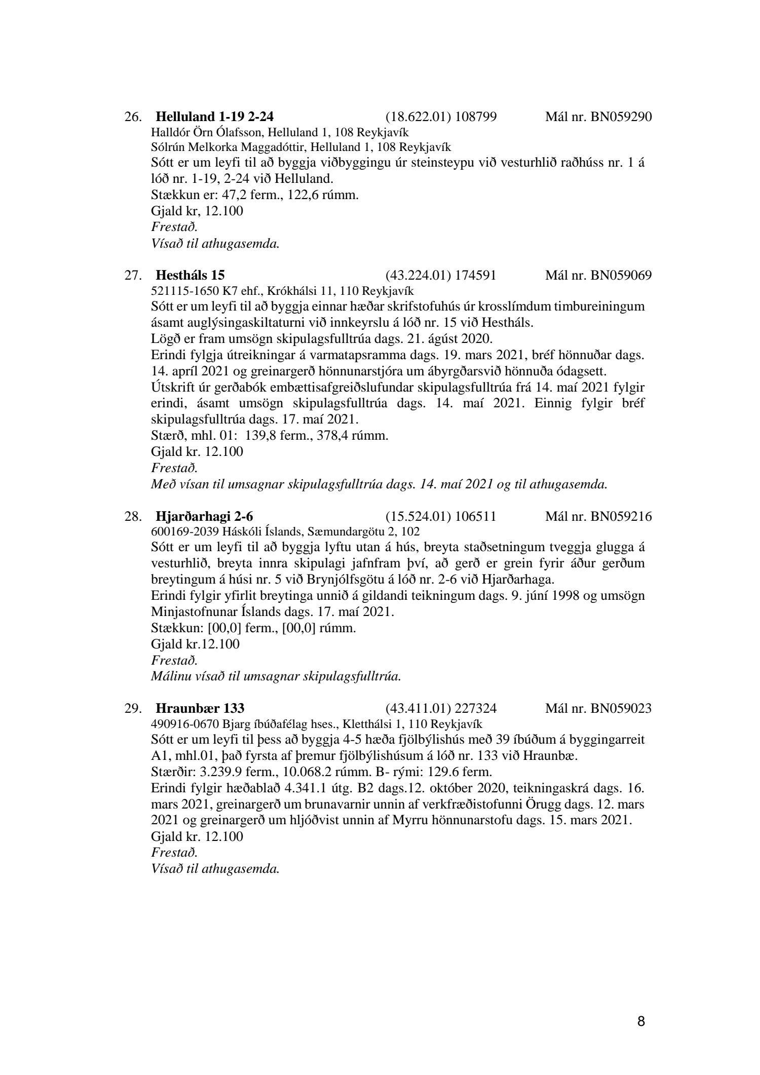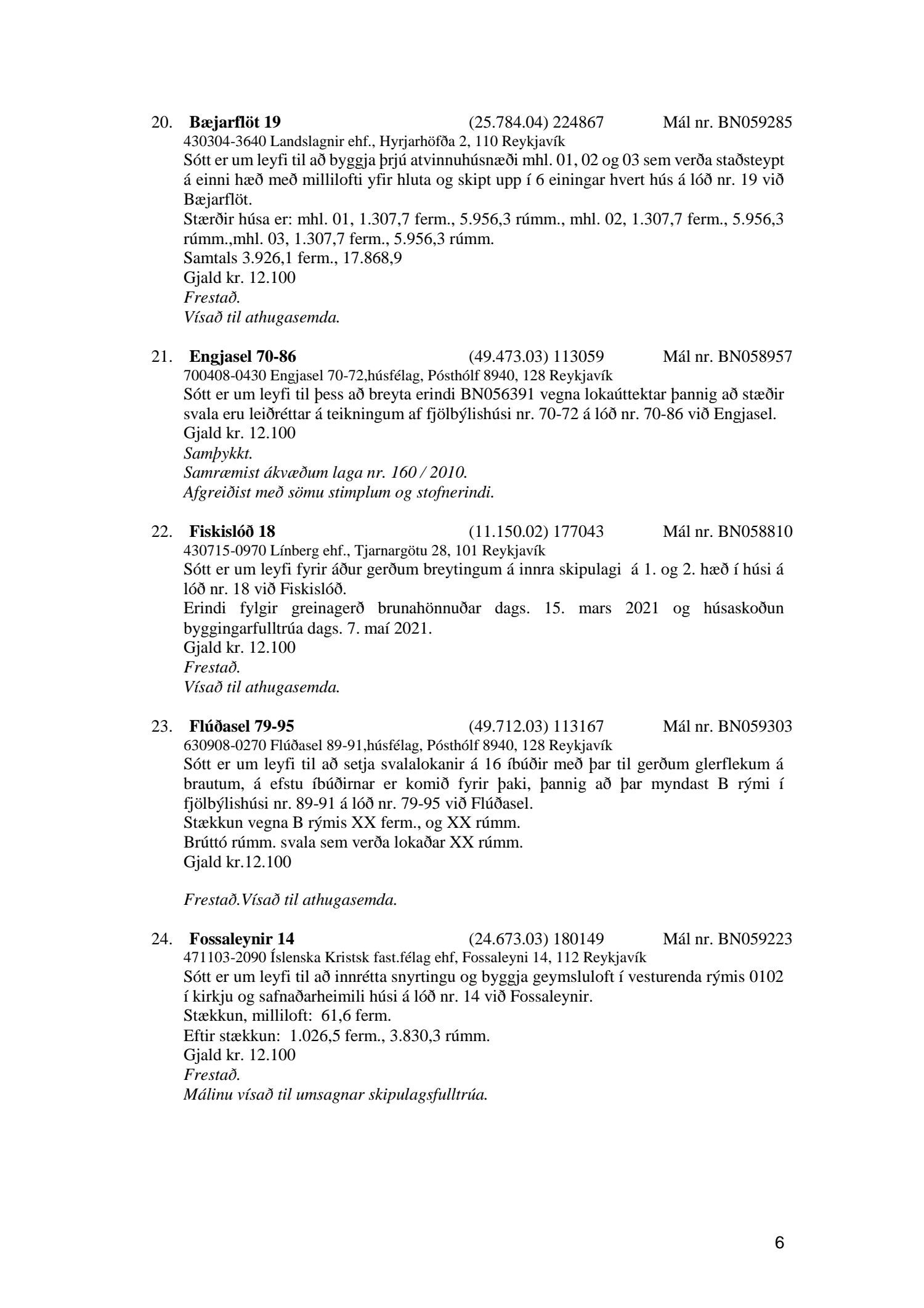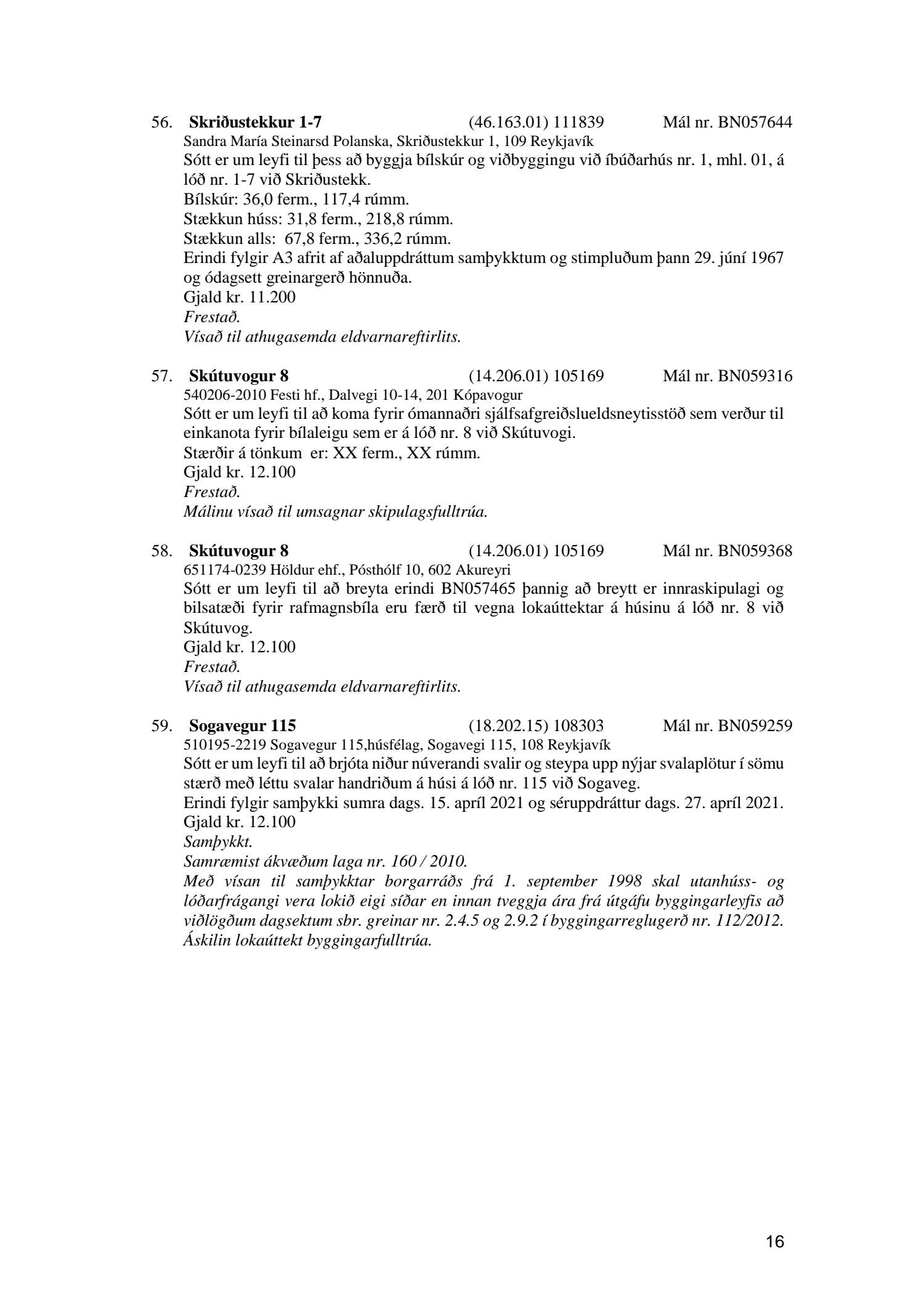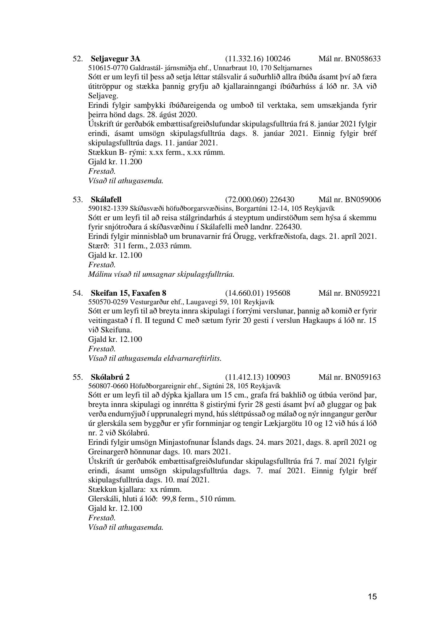 Fylgiskjal með fundargerð þessari er fundargerð afgreiðslufundar byggingarfulltrúa nr. 1114 frá 11. maí 2021 og nr. 1115 frá 18. maí 2021.