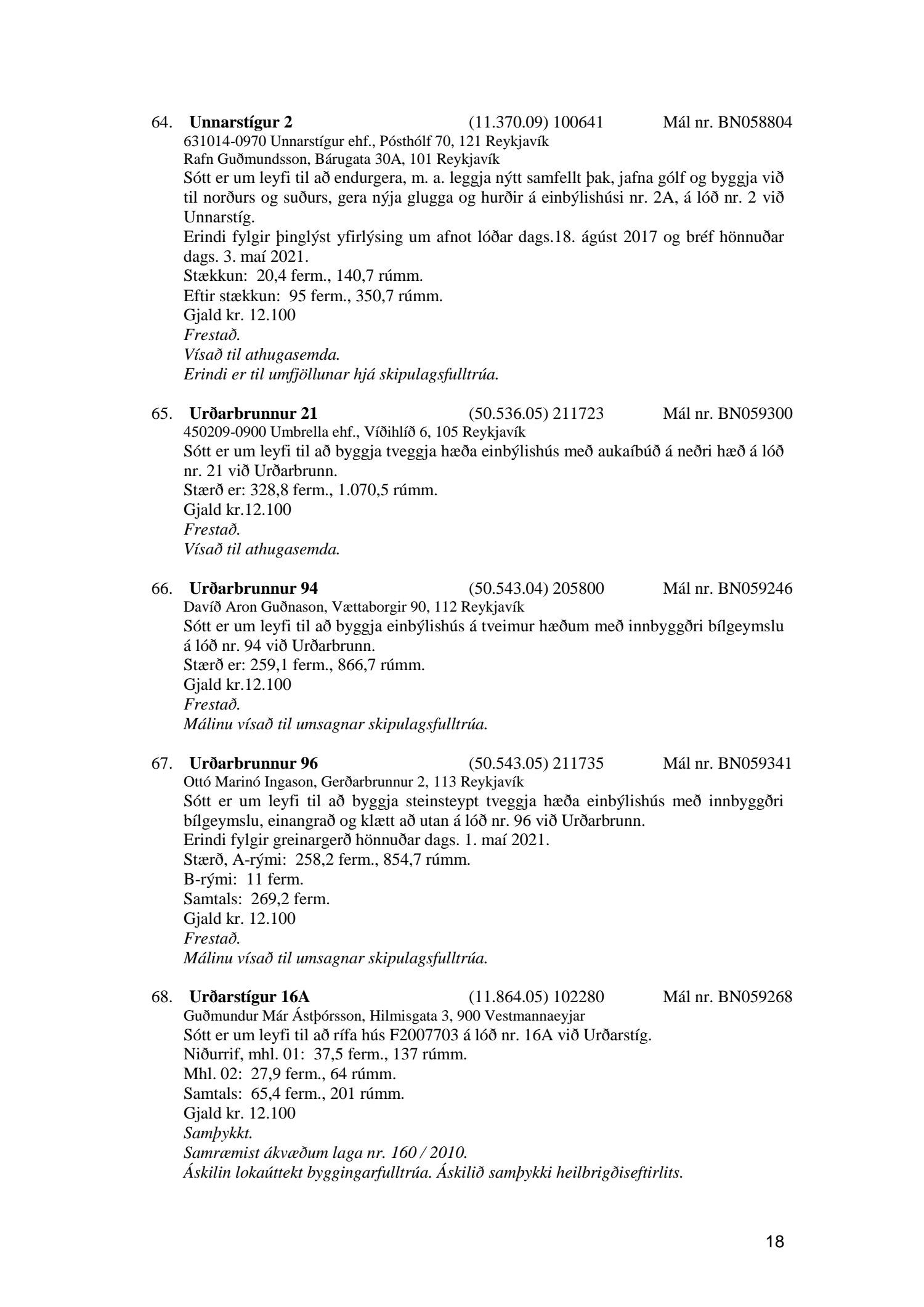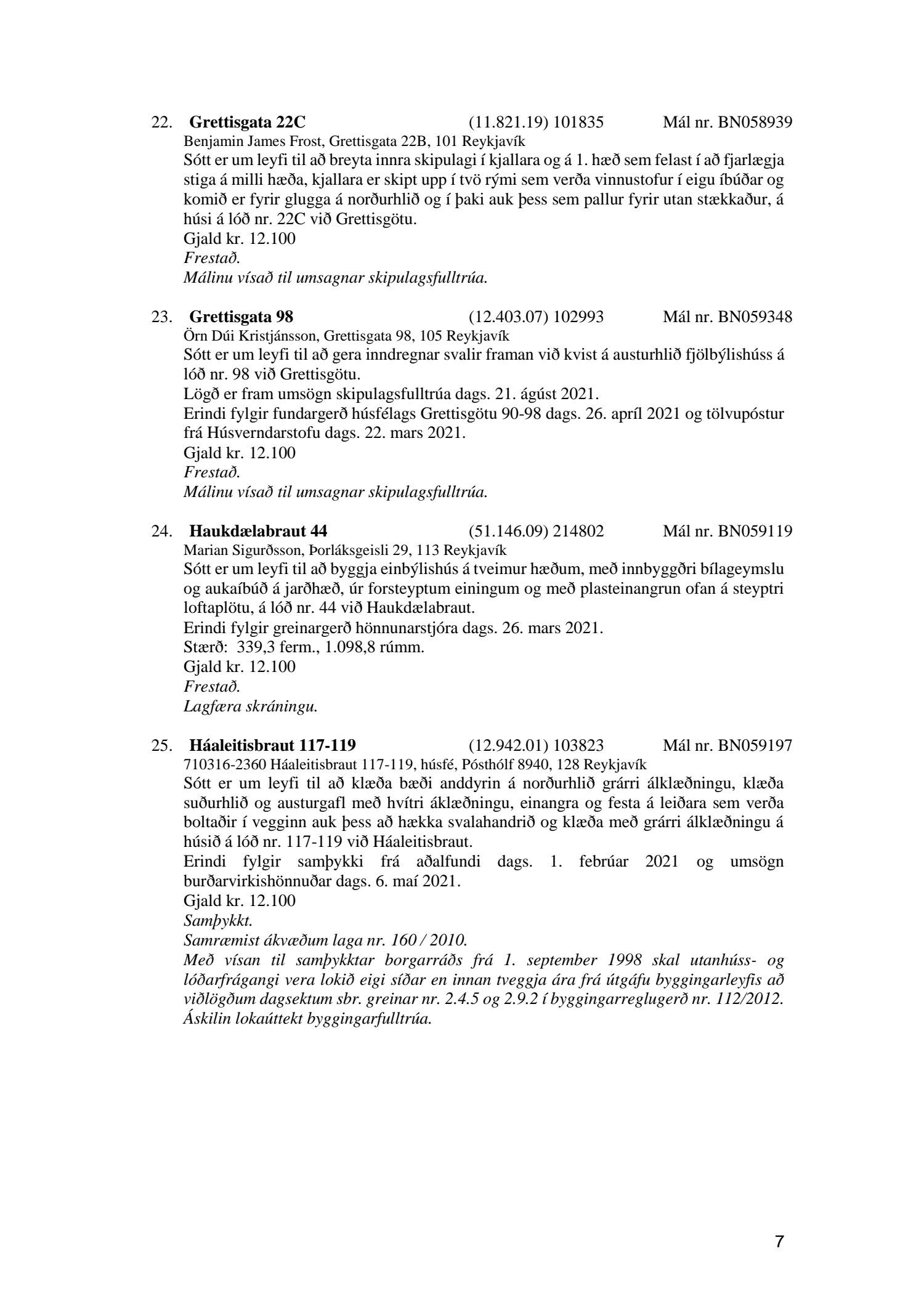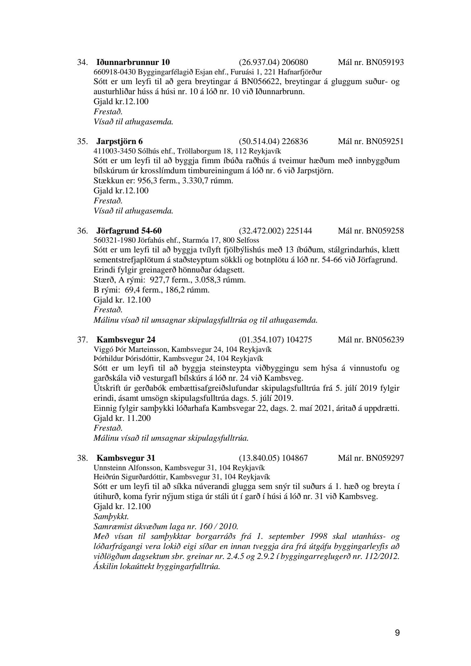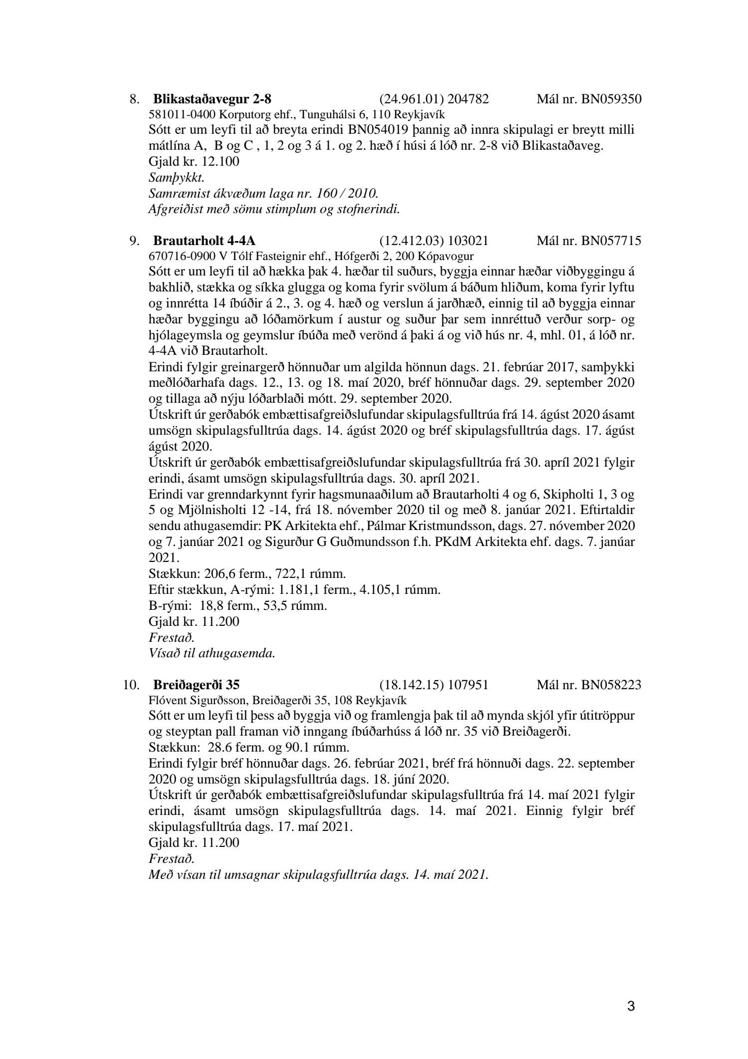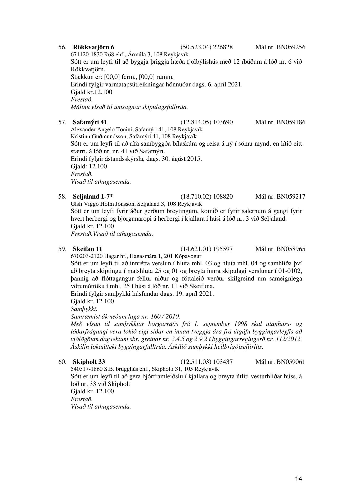 Fylgiskjal með fundargerð þessari er fundargerð afgreiðslufundar byggingarfulltrúa nr. 1114 frá 11. maí 2021 og nr. 1115 frá 18. maí 2021.