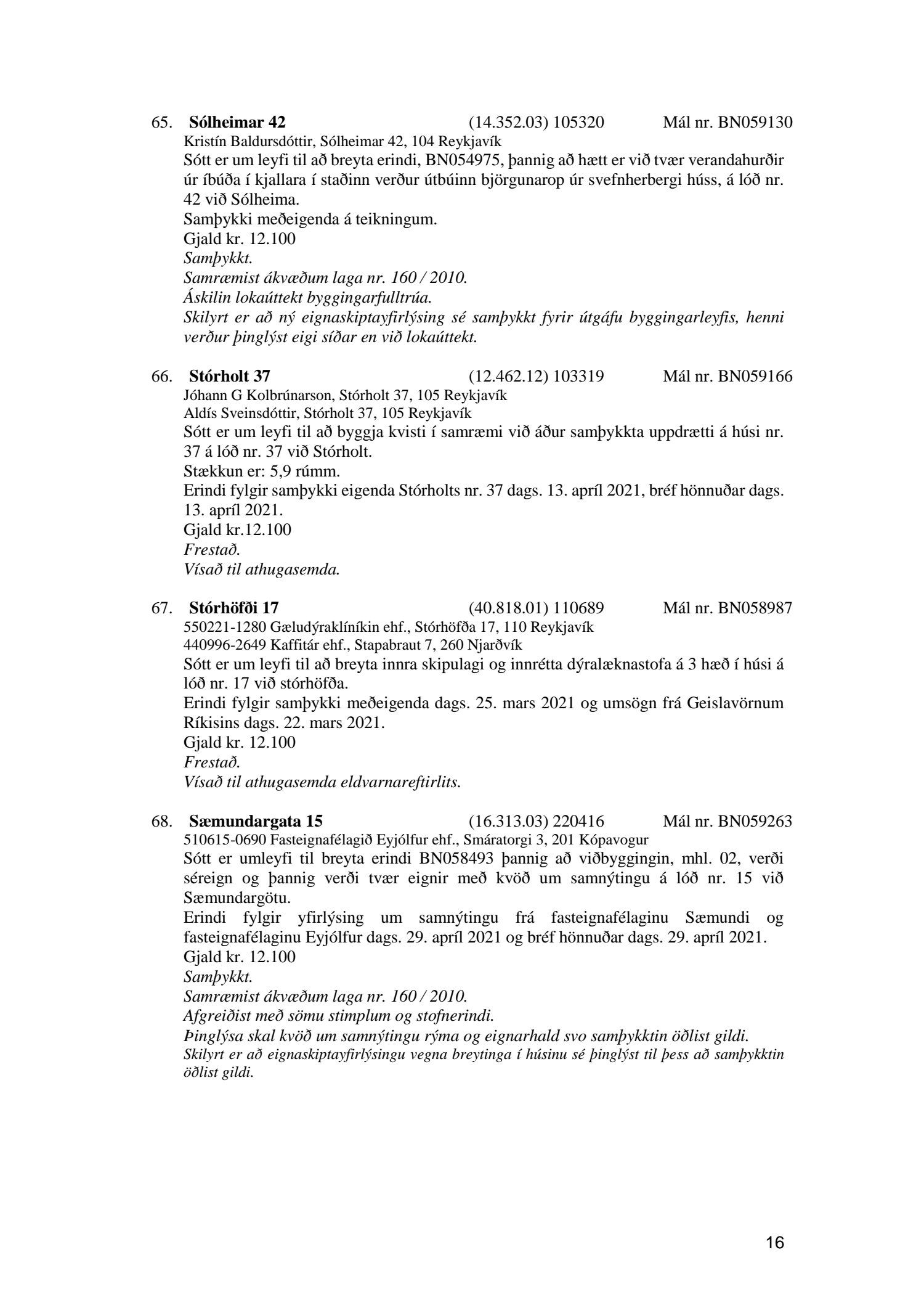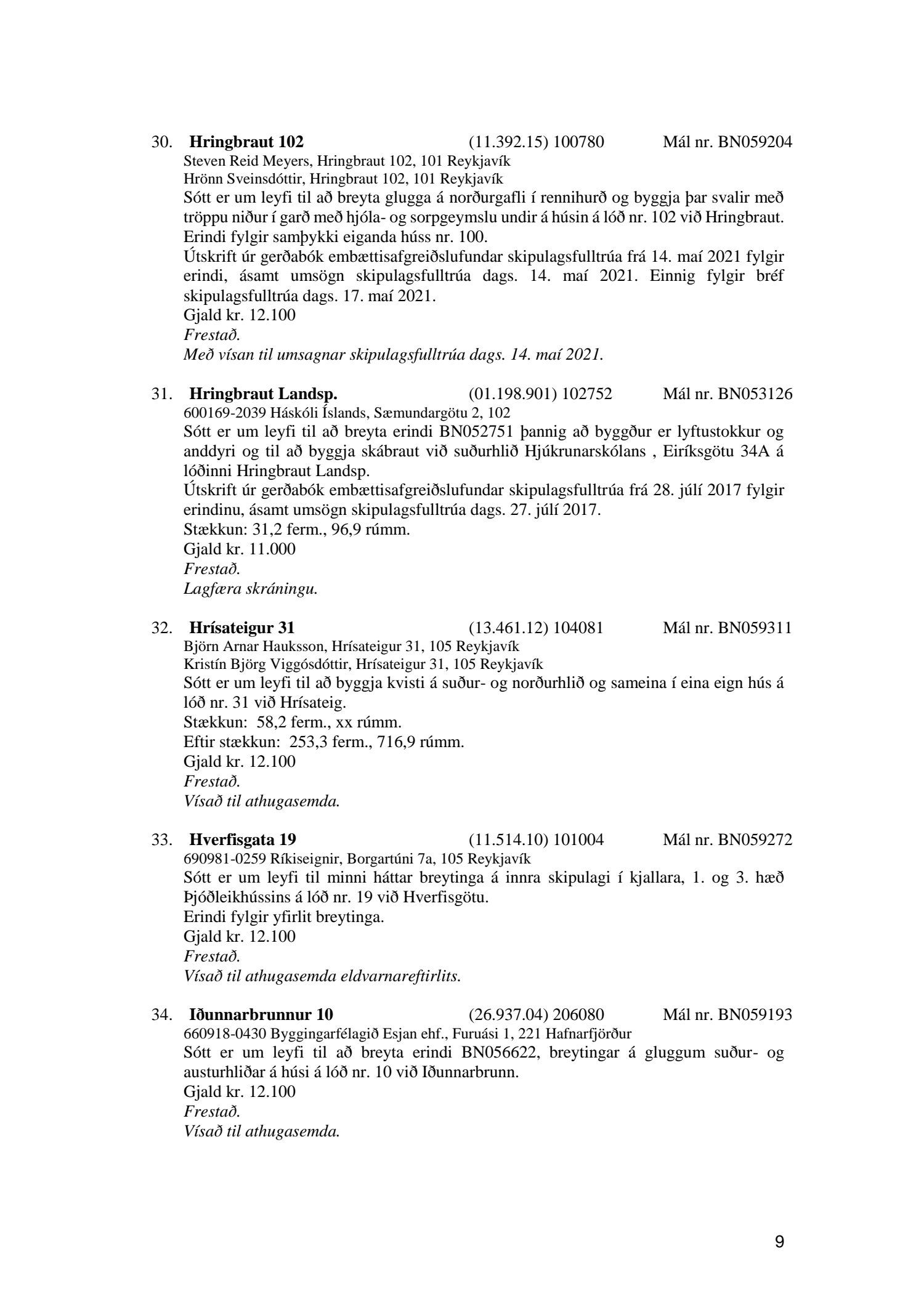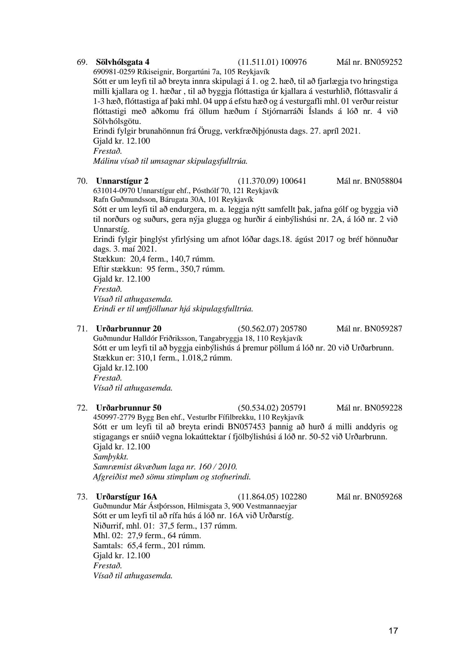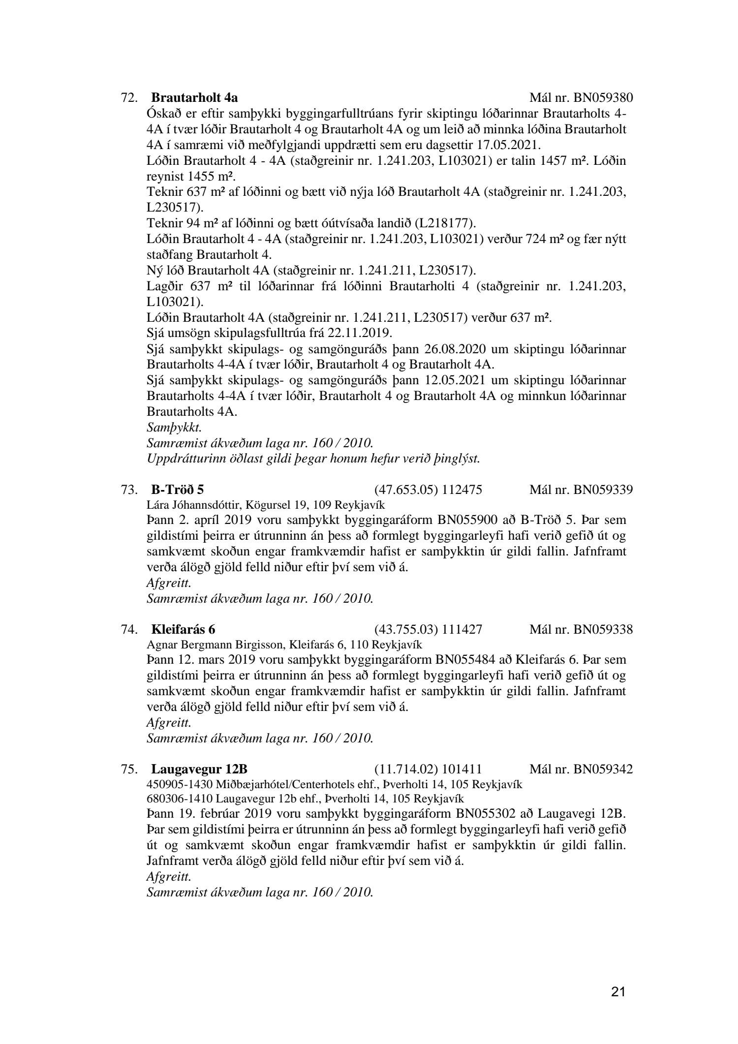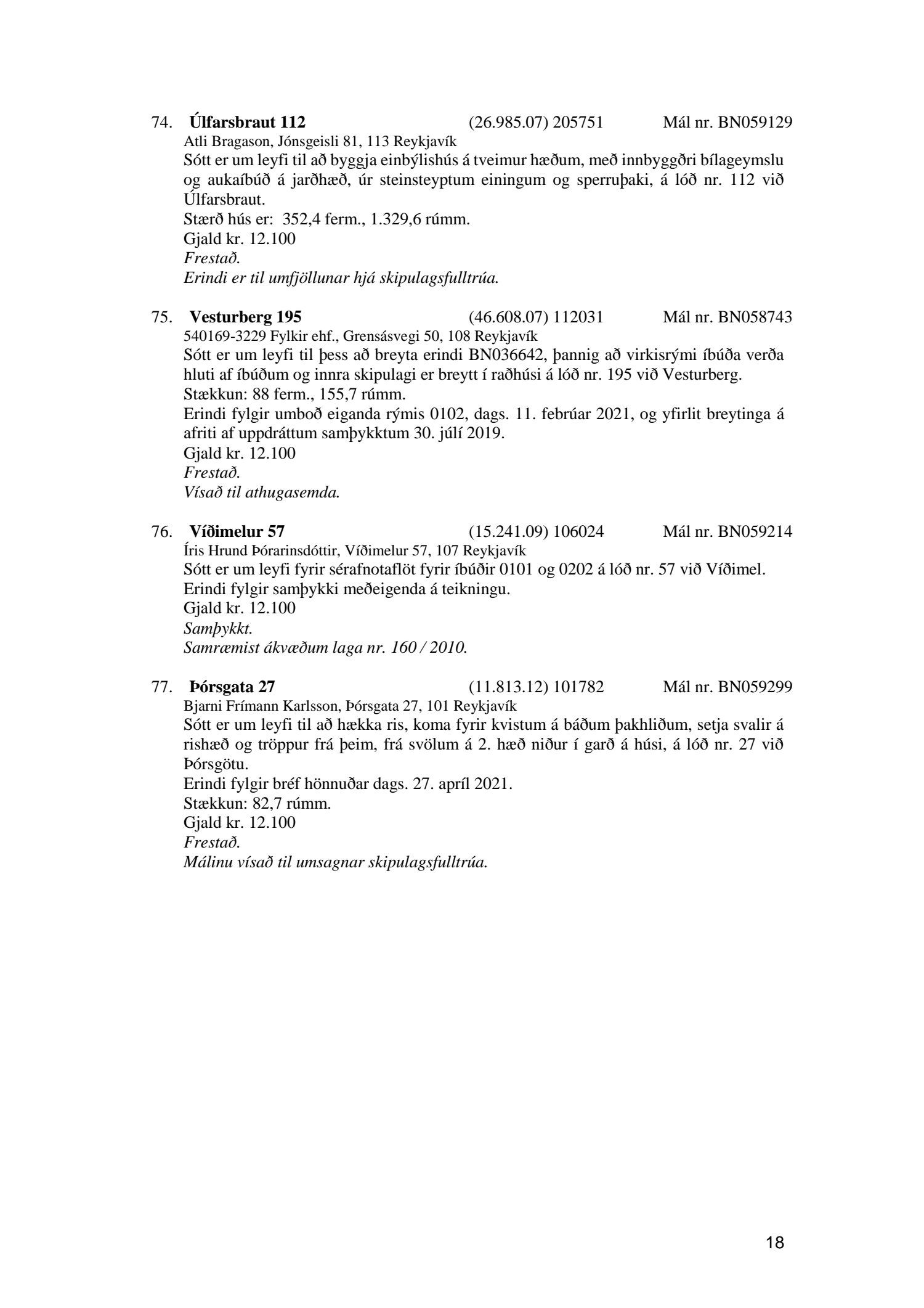 Fylgiskjal með fundargerð þessari er fundargerð afgreiðslufundar byggingarfulltrúa nr. 1114 frá 11. maí 2021 og nr. 1115 frá 18. maí 2021.