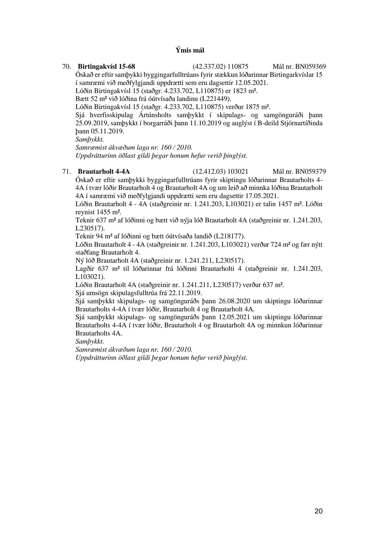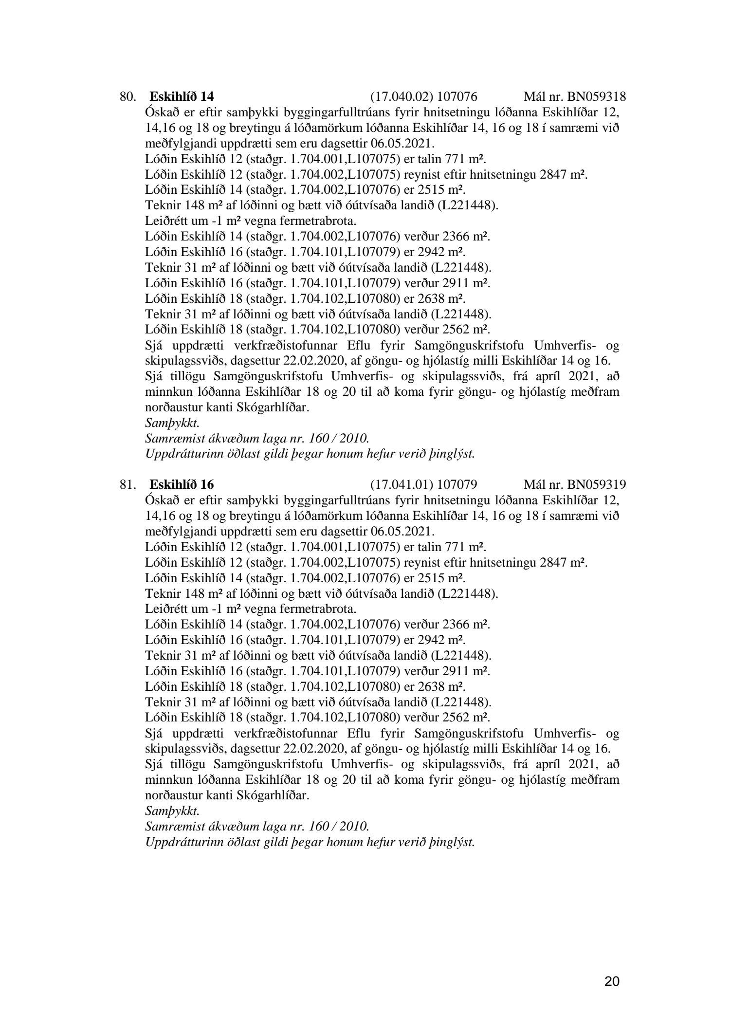 Umhverfis- og skipulagsráð nr. 20