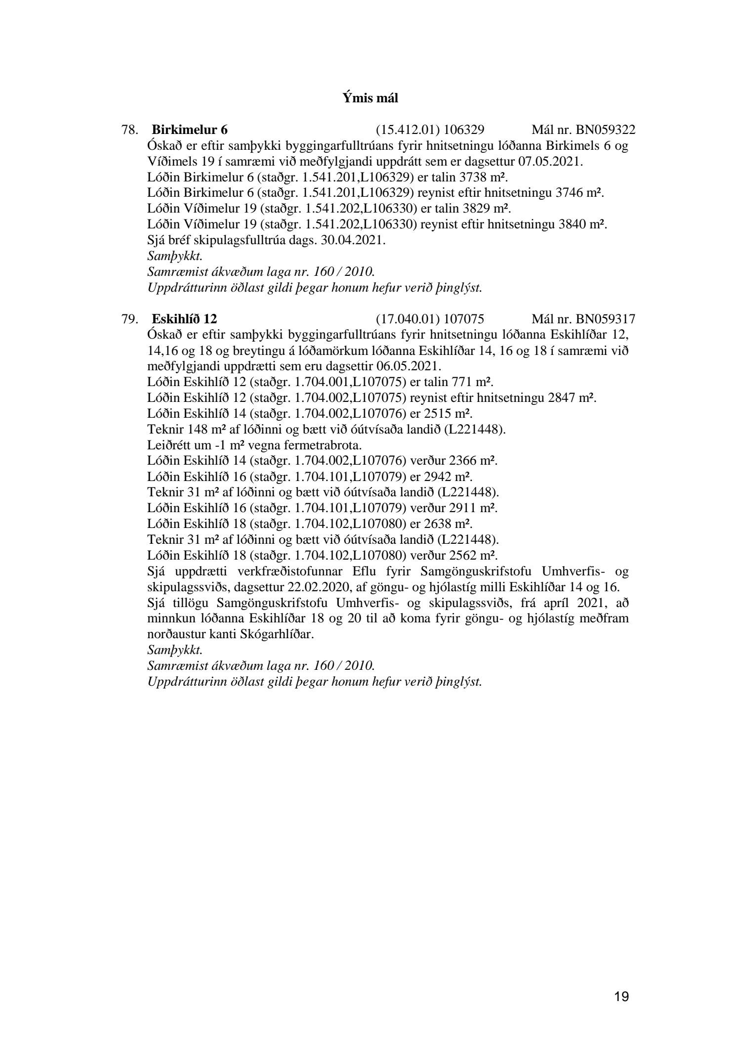 Umhverfis- og skipulagsráð nr. 19
