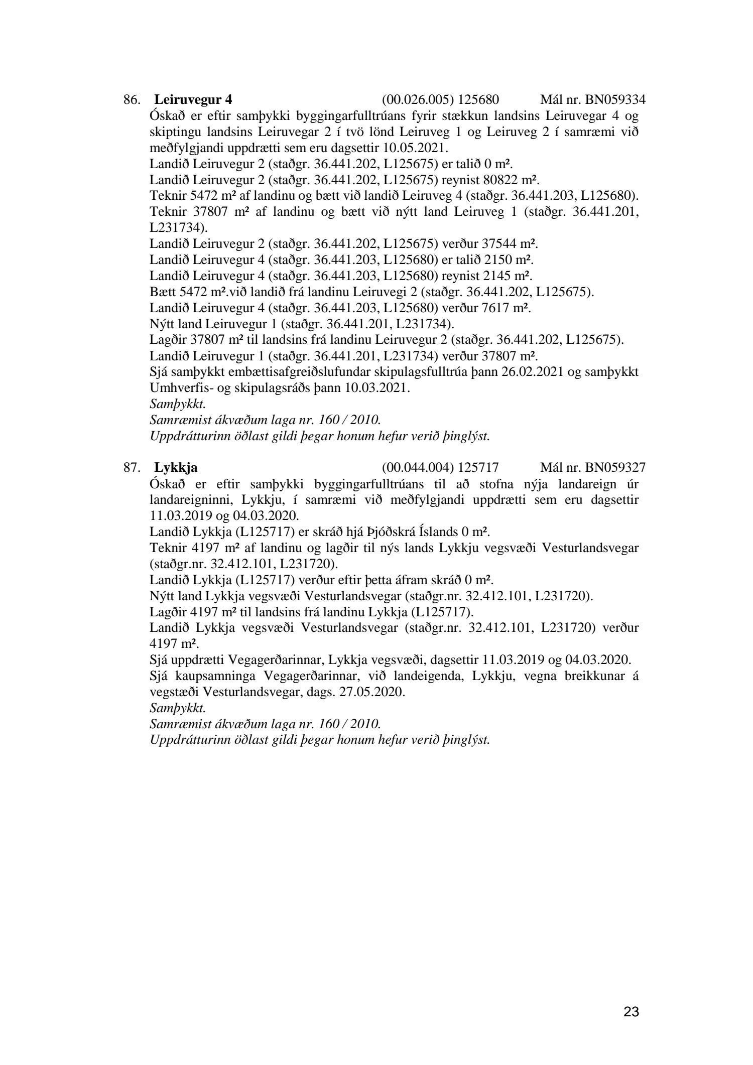 Umhverfis- og skipulagsráð nr. 23