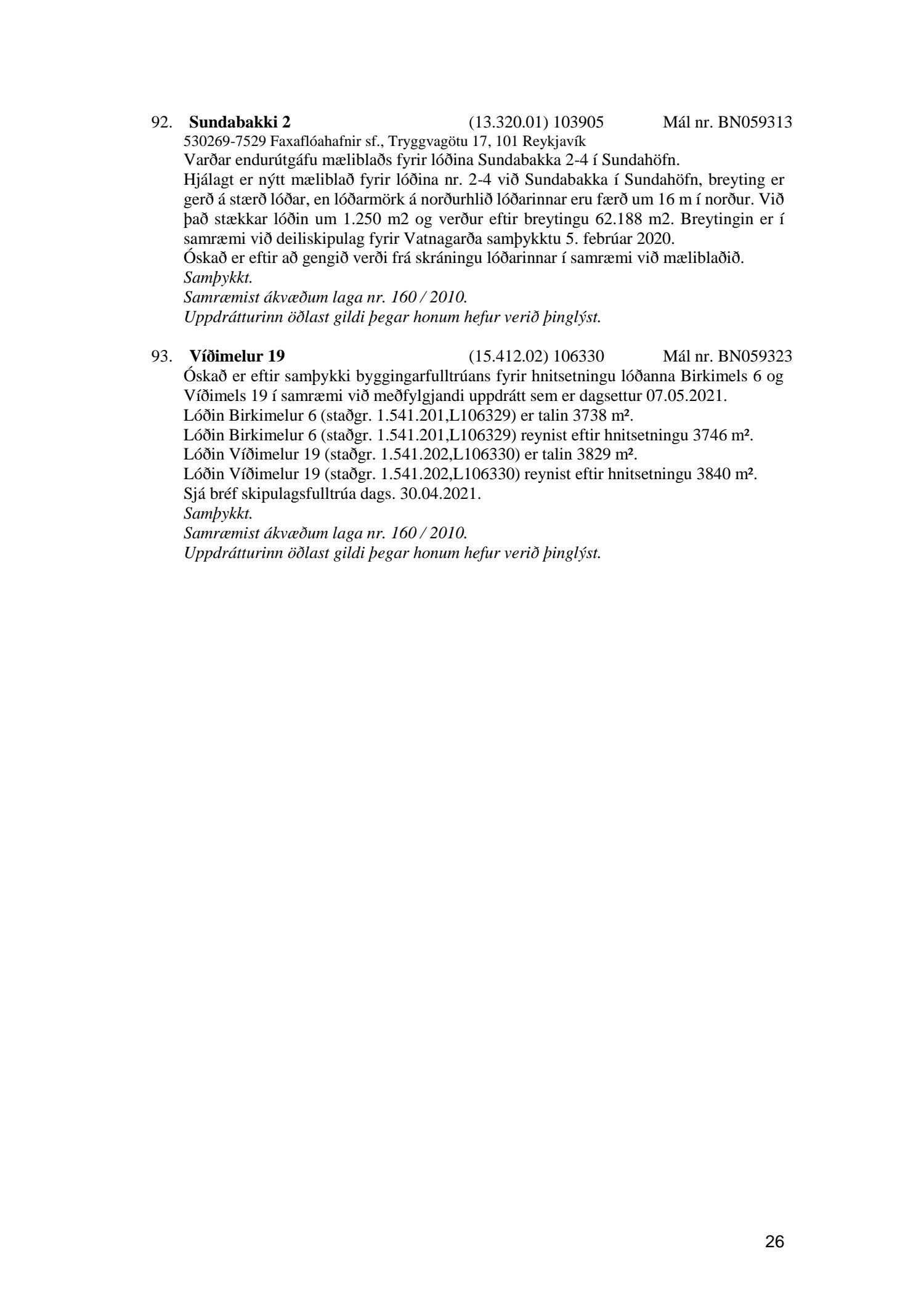 Umhverfis- og skipulagsráð nr. 26