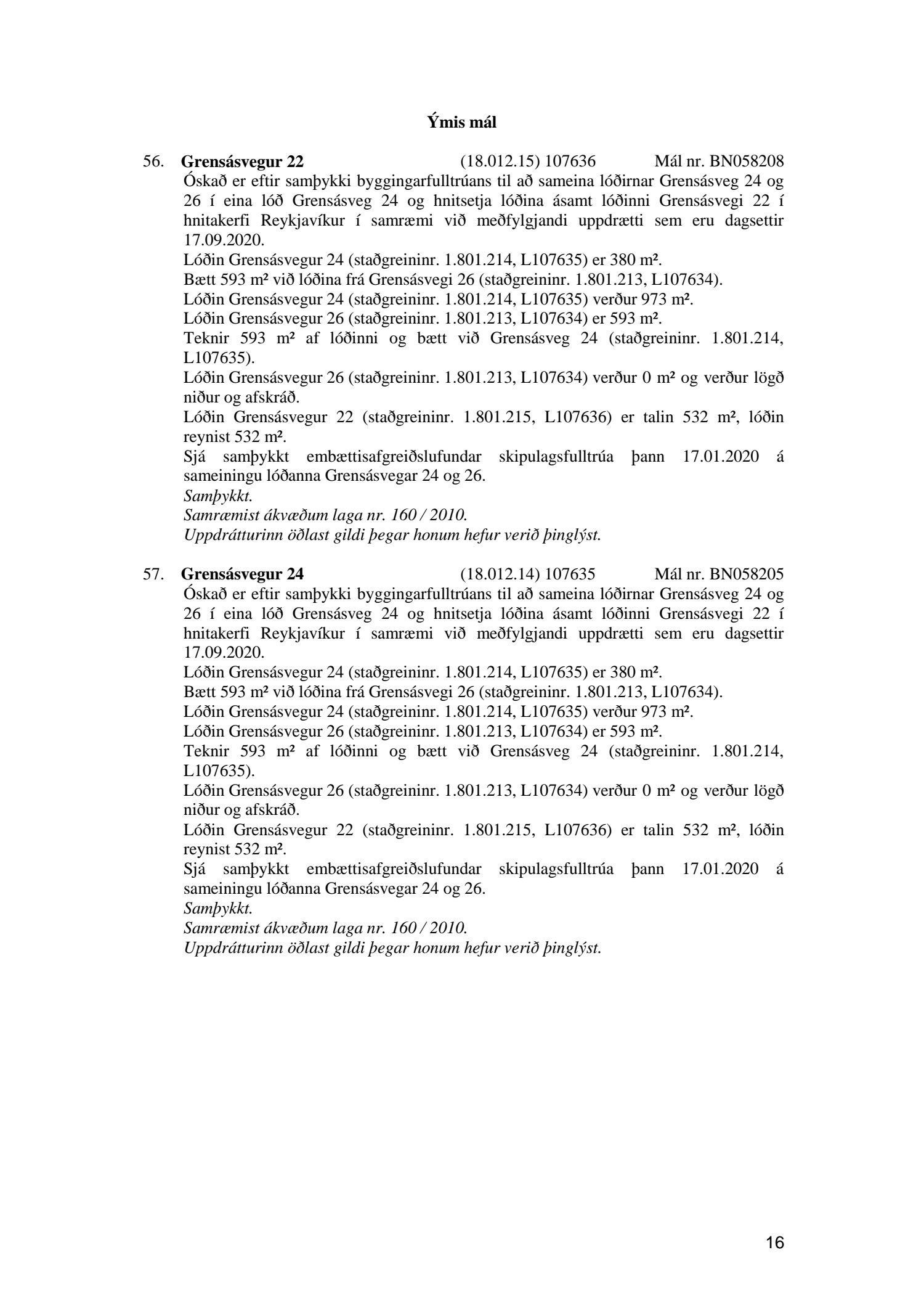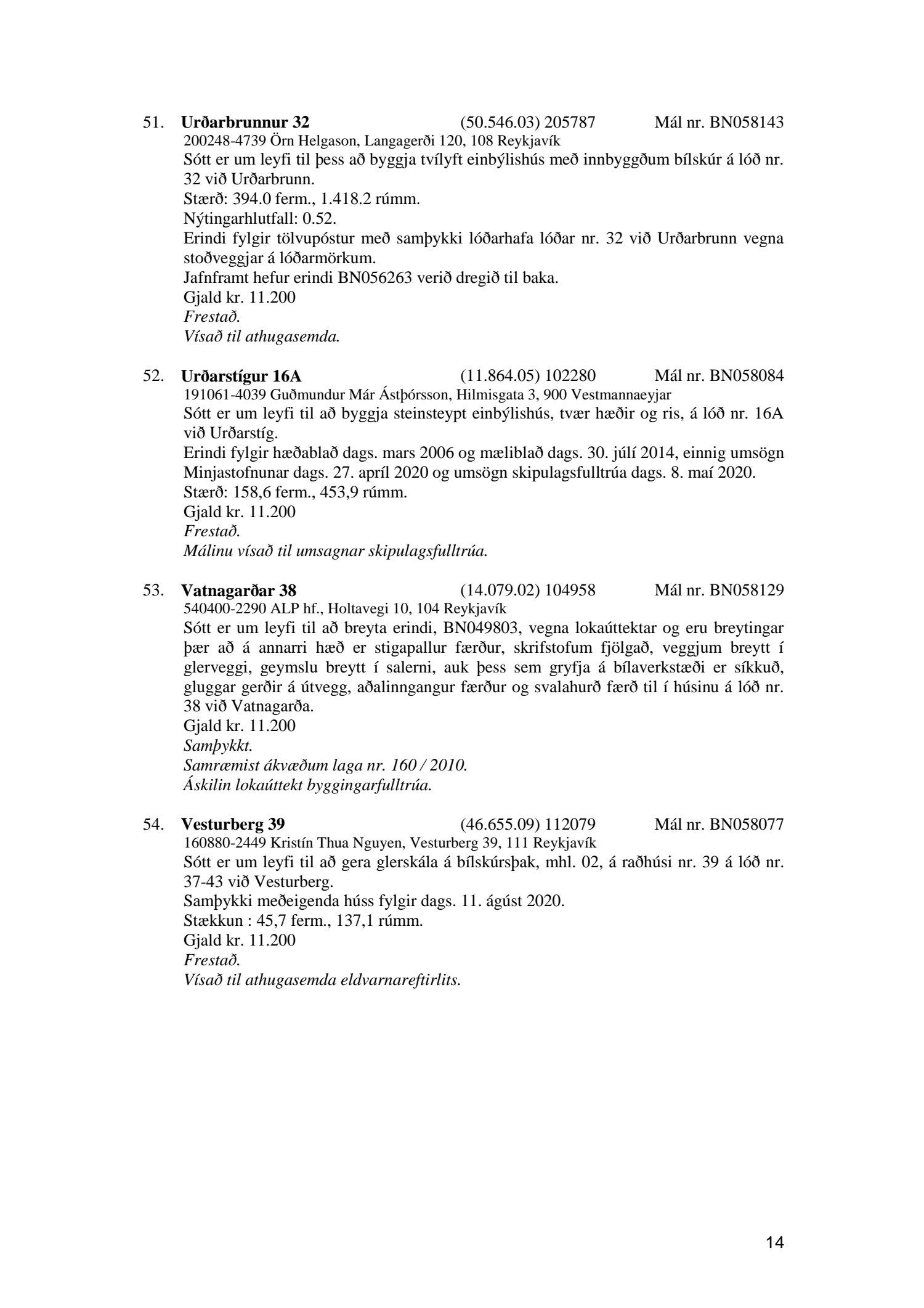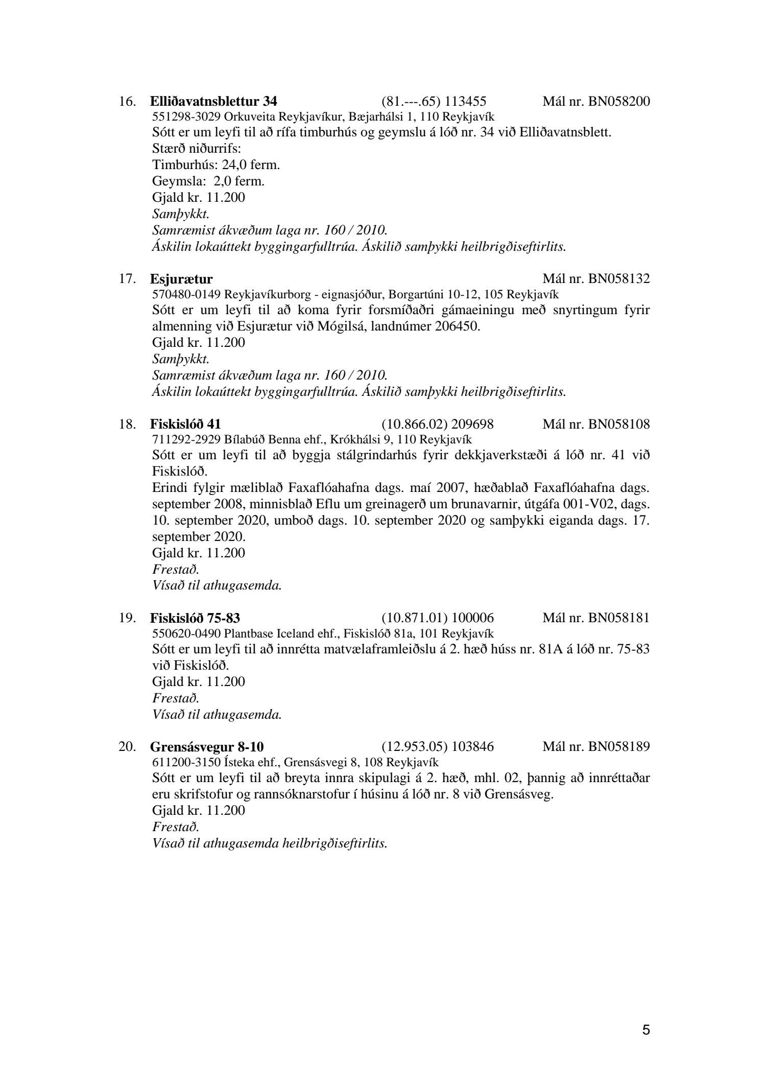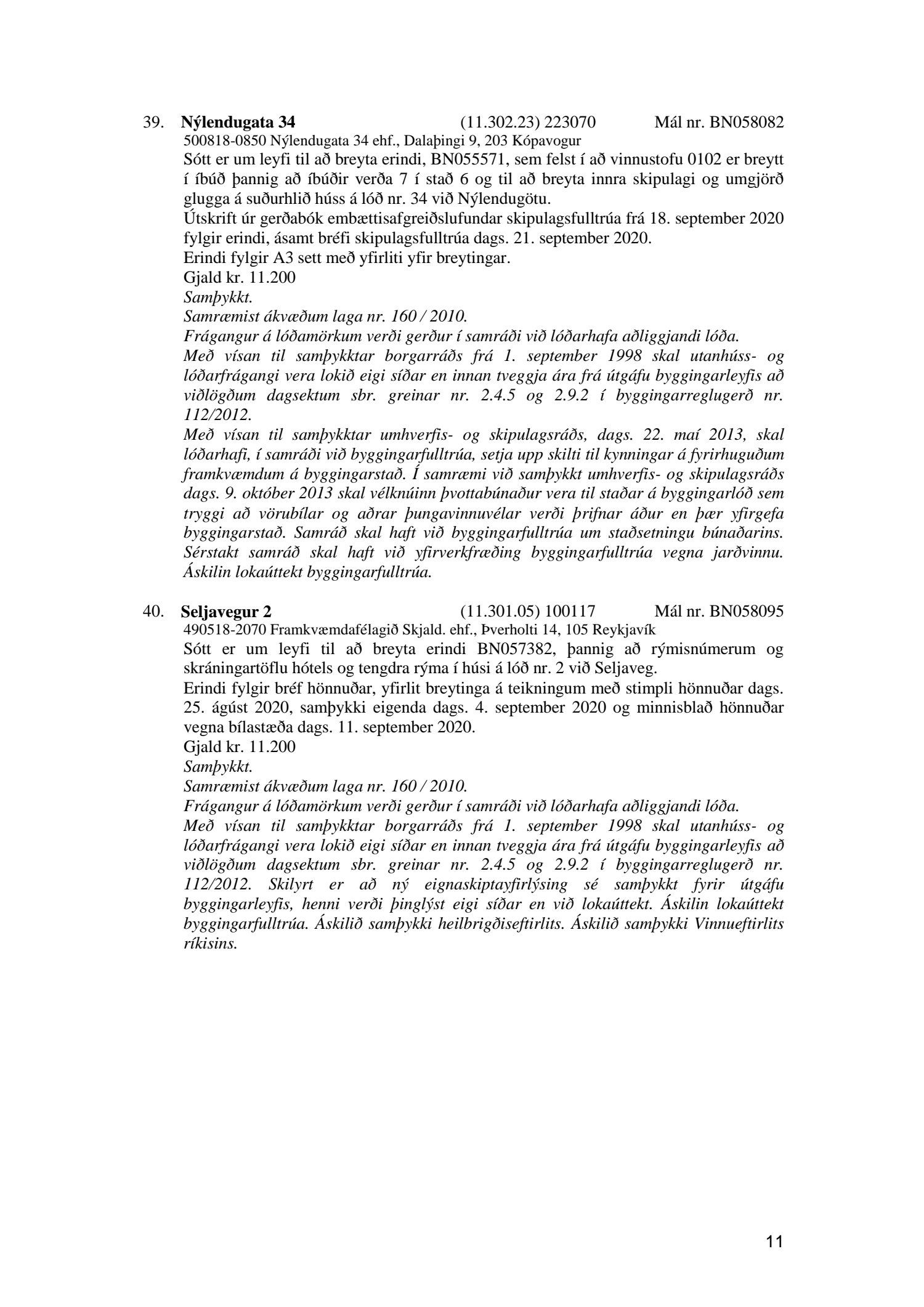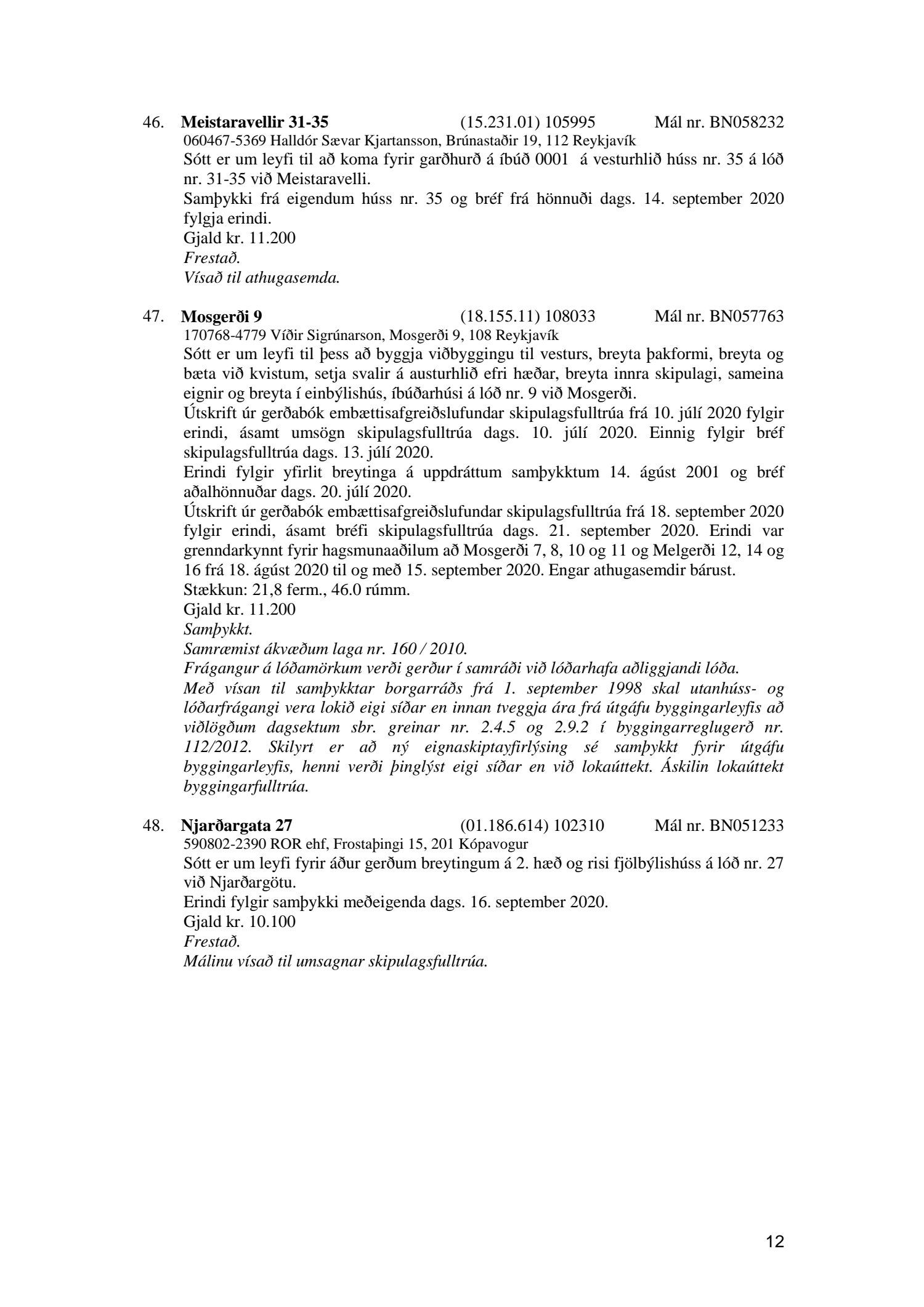 Fylgiskjal með fundargerð þessari er fundargerð afgreiðslufundar byggingarfulltrúa nr. 1084 frá 22. september 2020 og fundargerð afgreiðslufundar byggingarfulltrúa nr. 1085 frá 29. september 2020.
