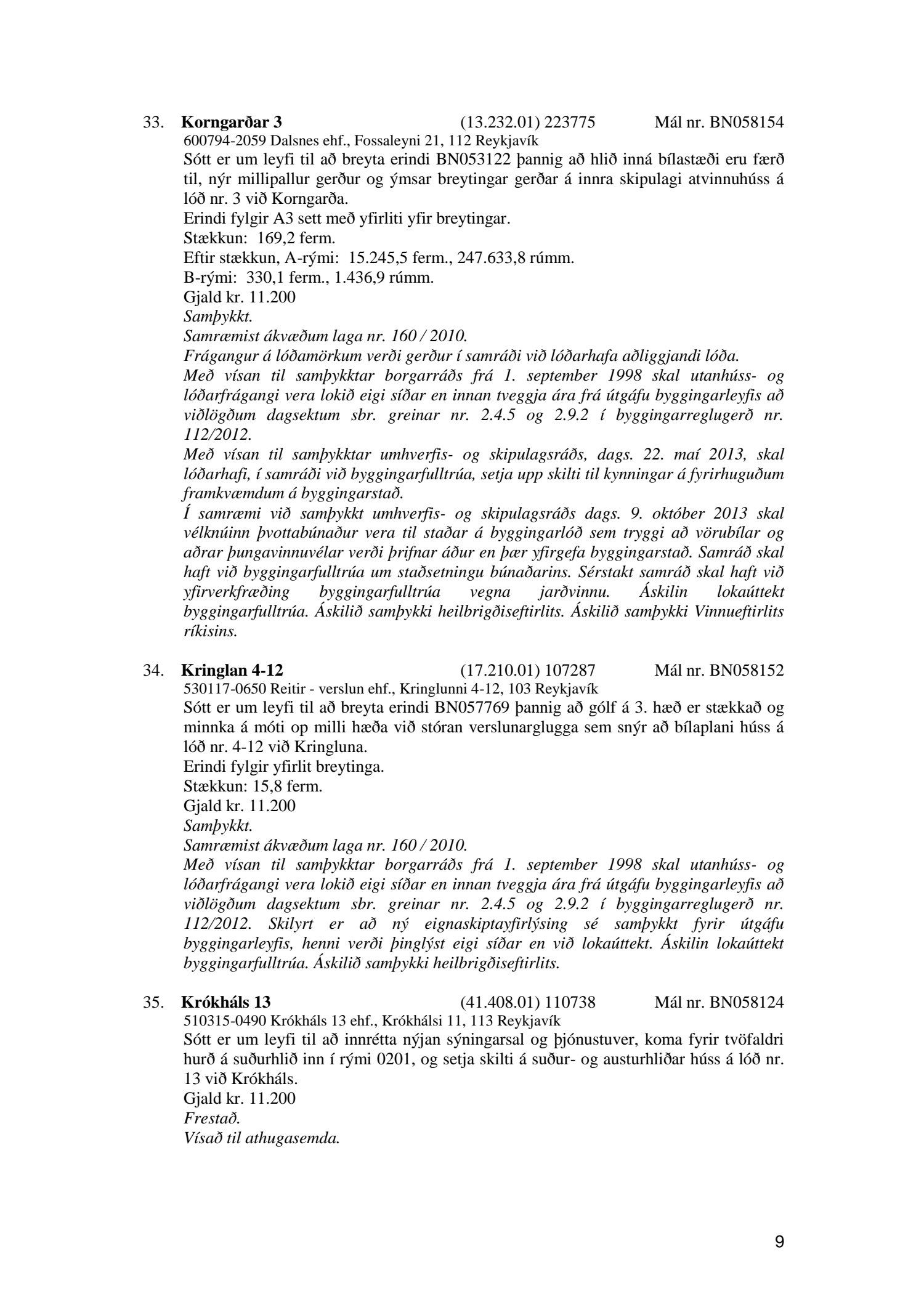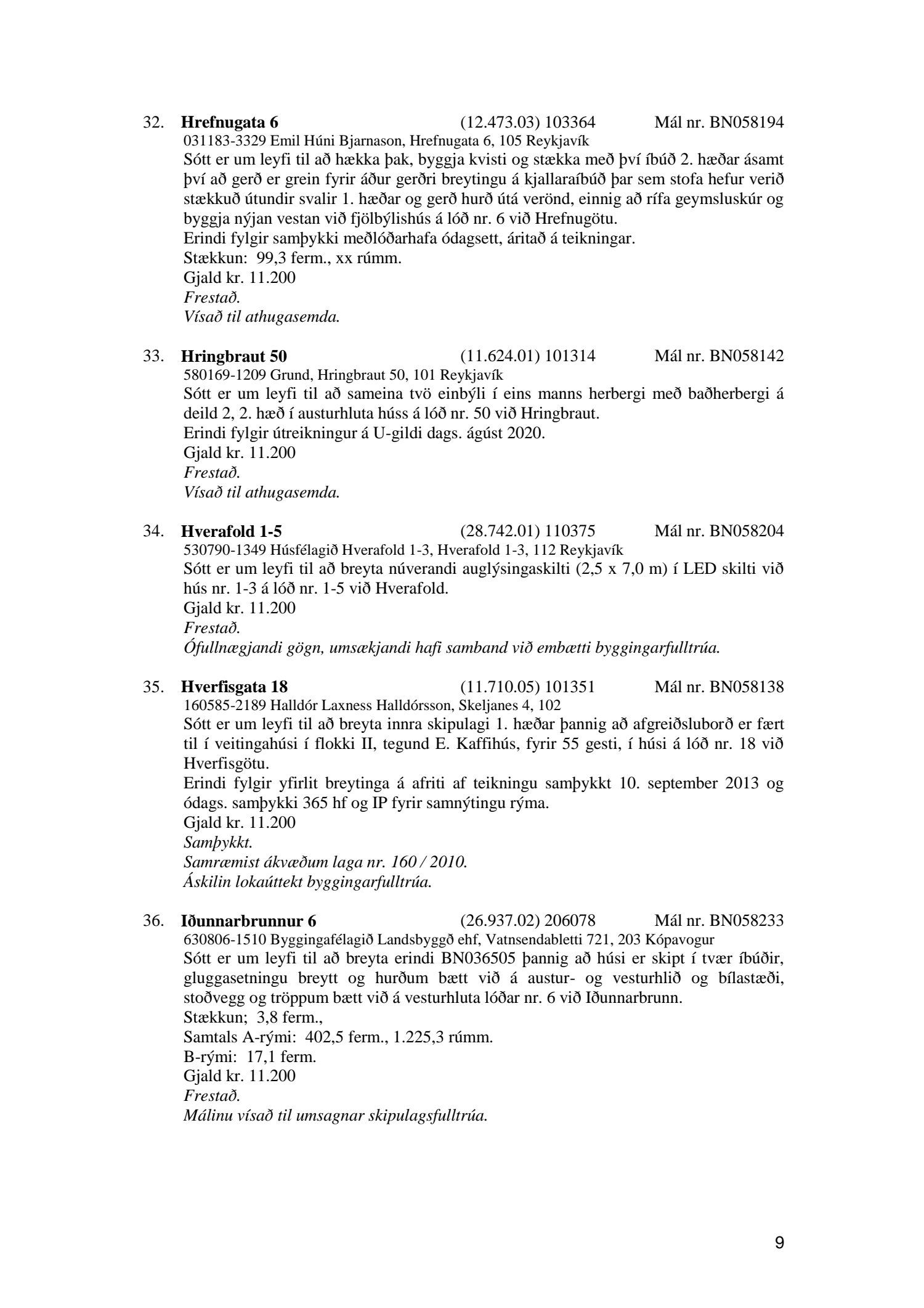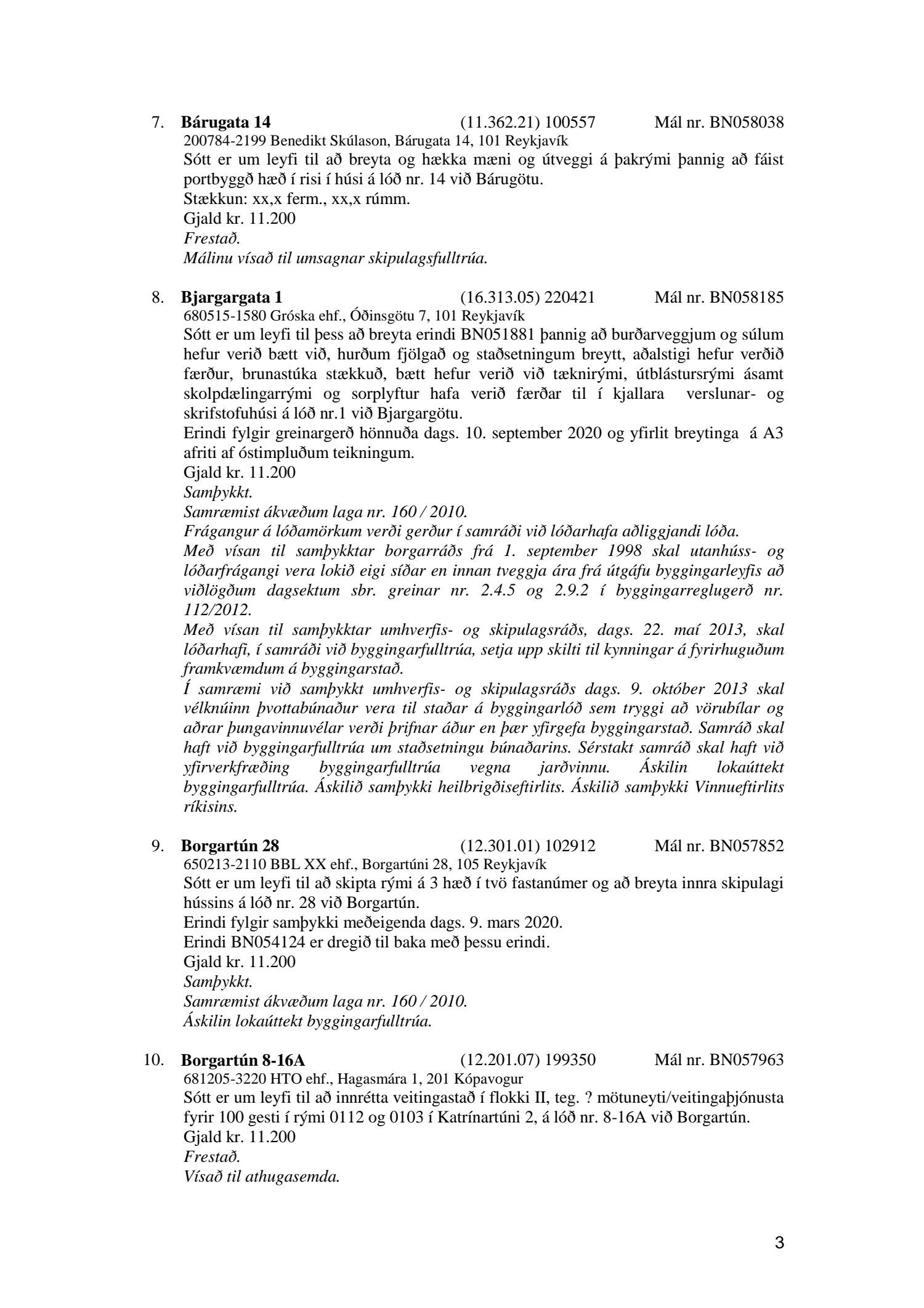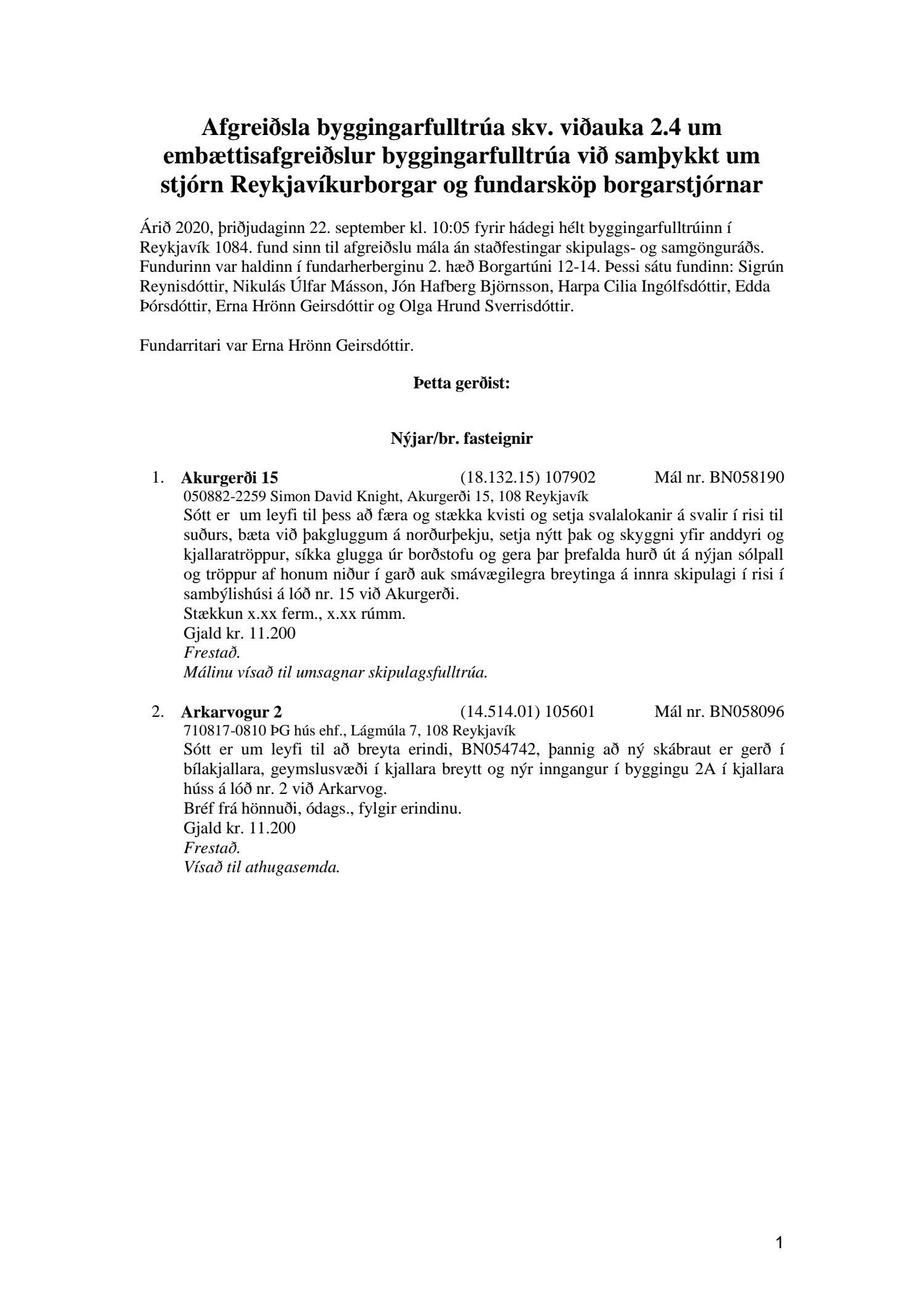 Afgreiðslufundur byggingarfulltrúa, fundargerð