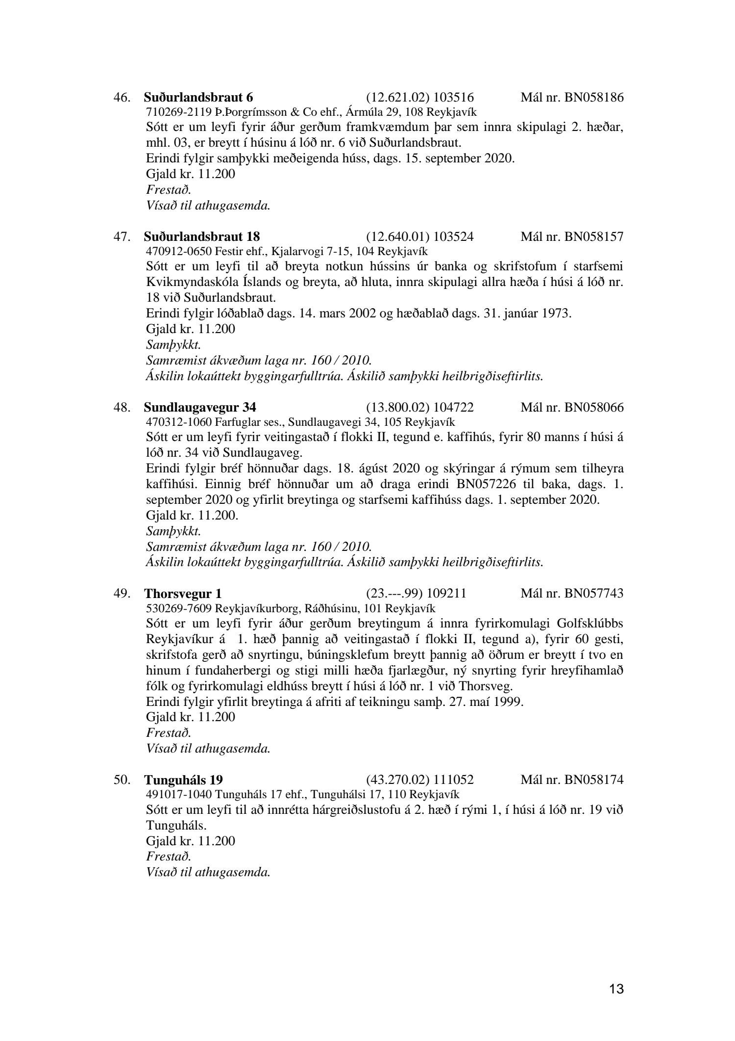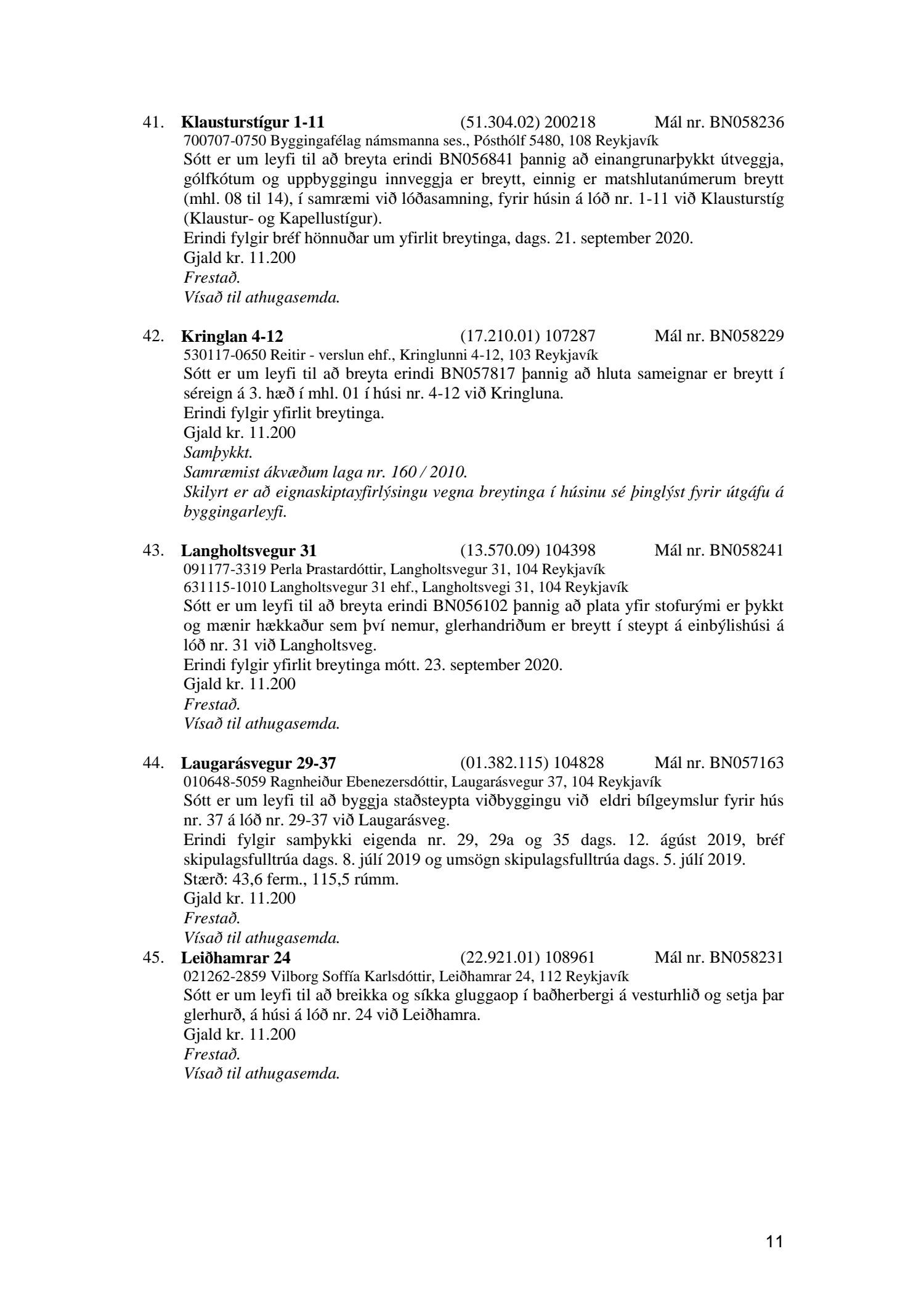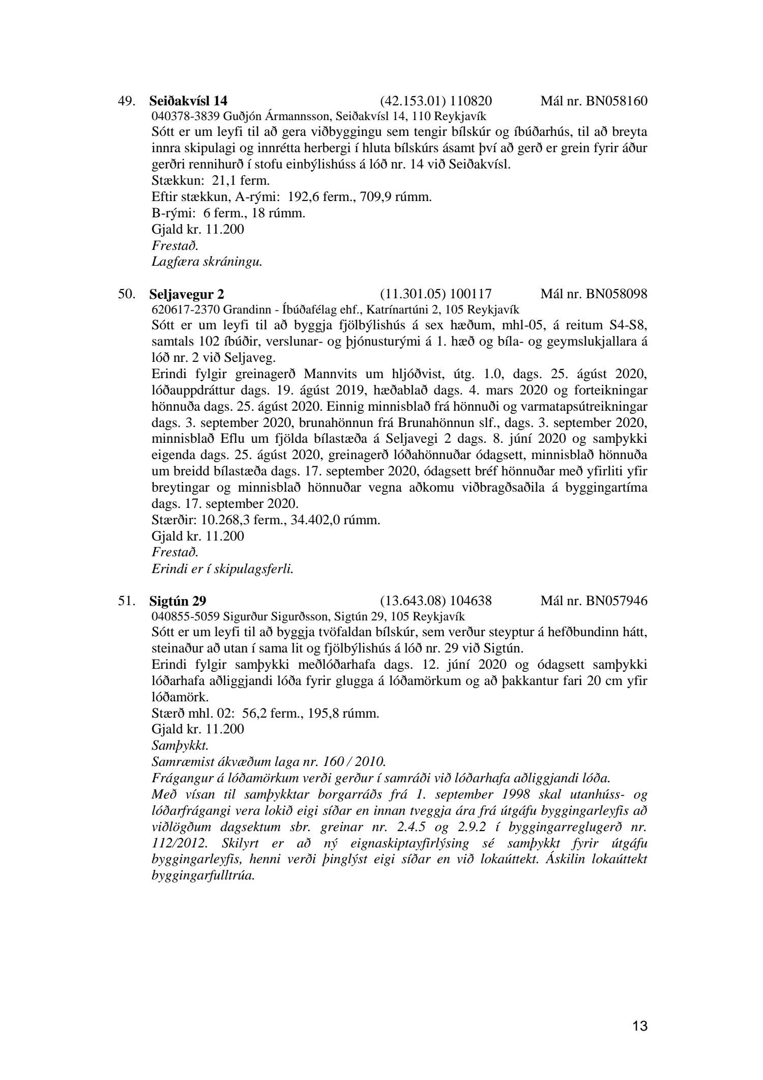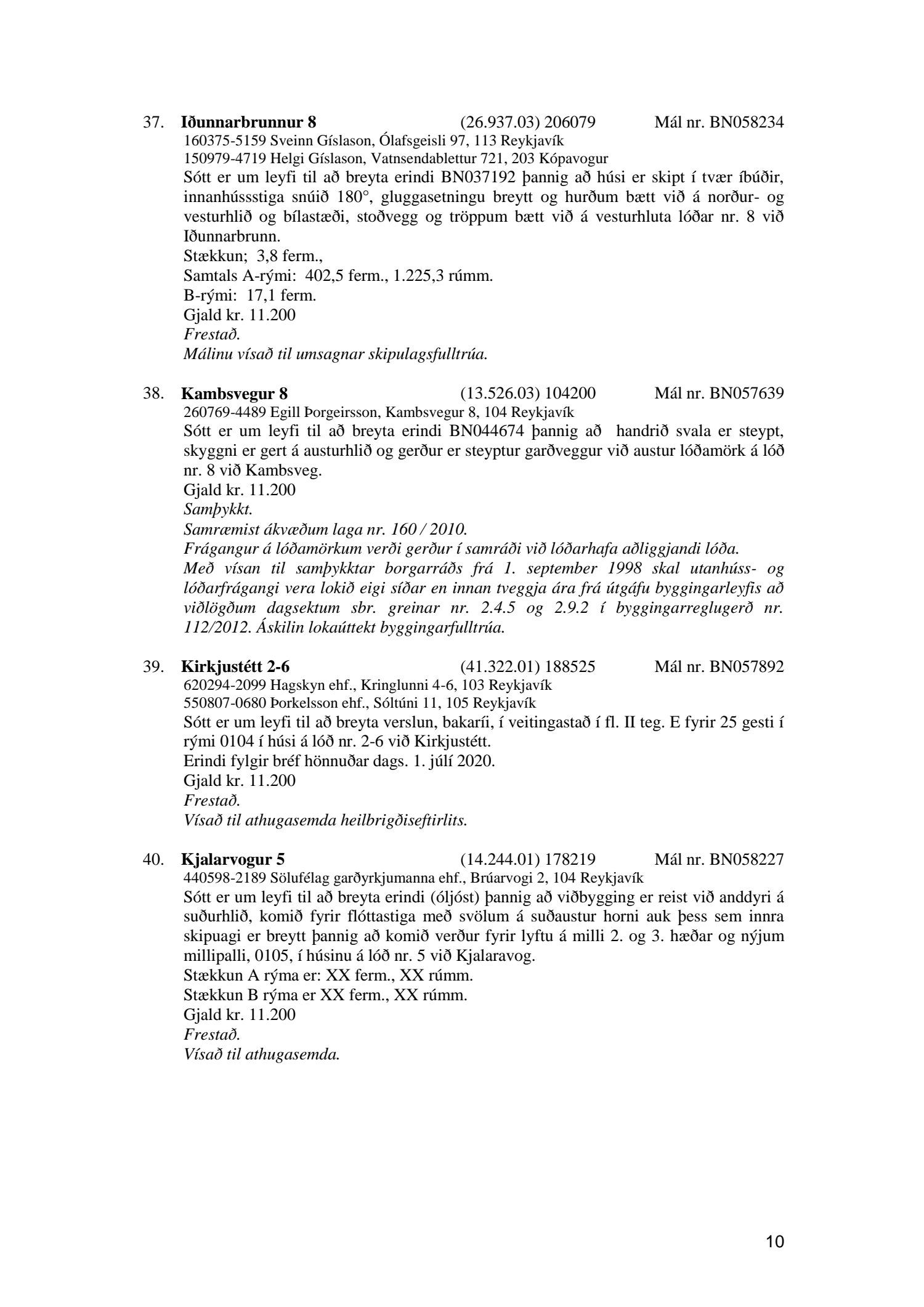 Afgreiðslufundur byggingarfulltrúa, fundargerð