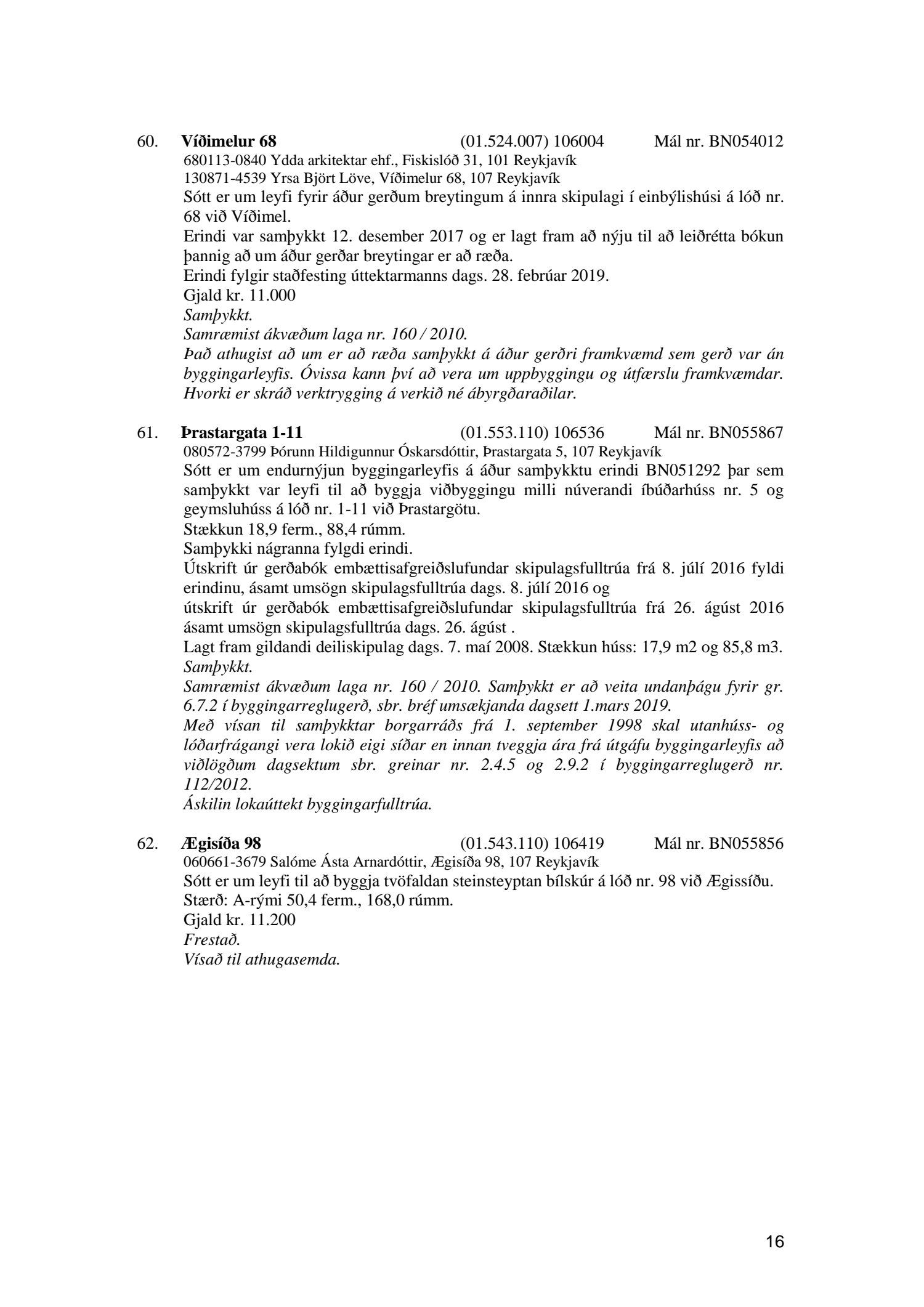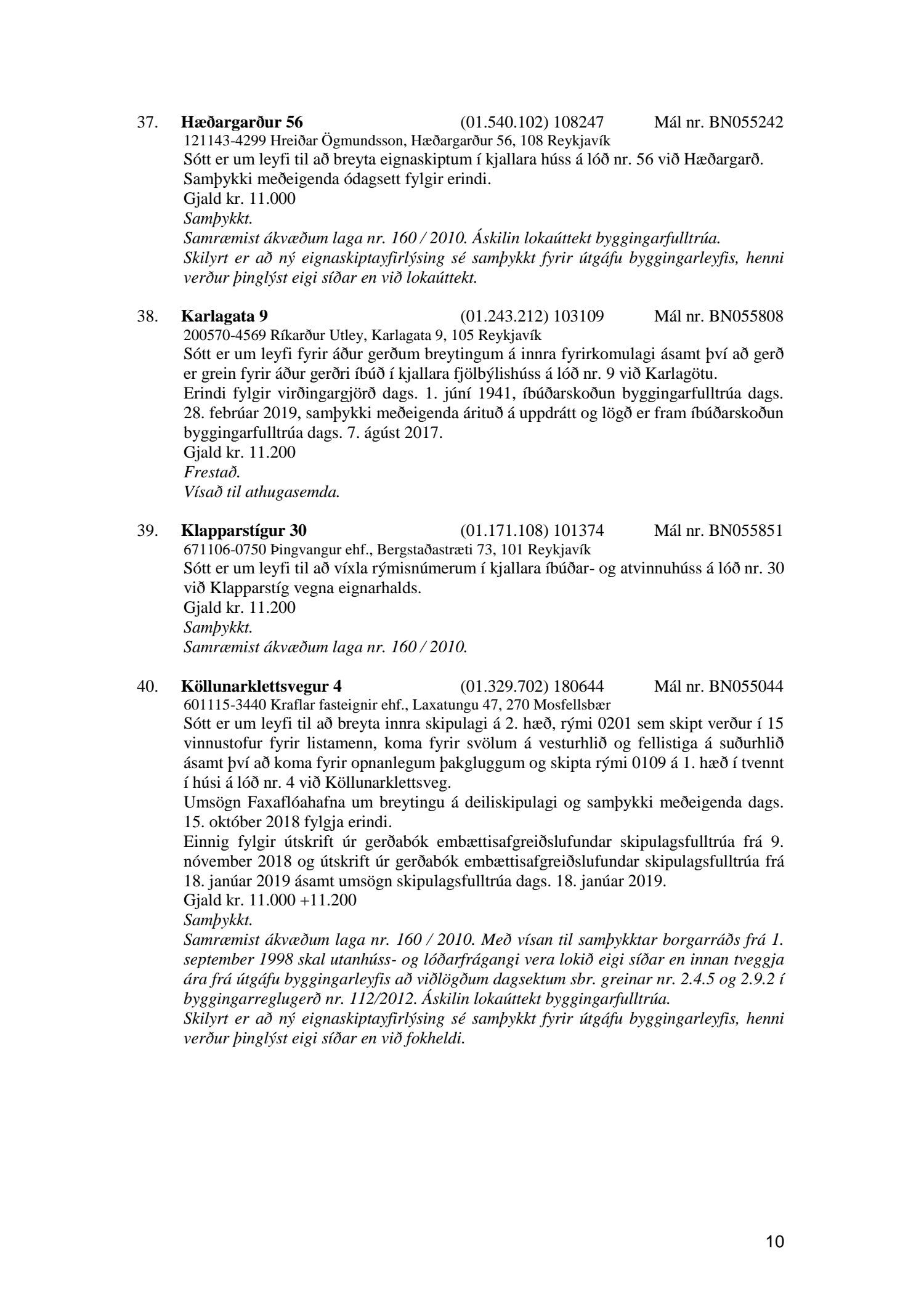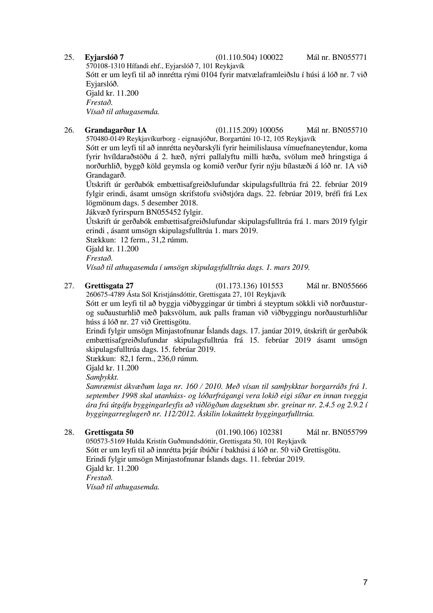 Fylgiskjal með fundargerð þessari er fundargerðir afgreiðslufundar byggingarfulltrúa nr. 1011 frá 5. mars 2019.