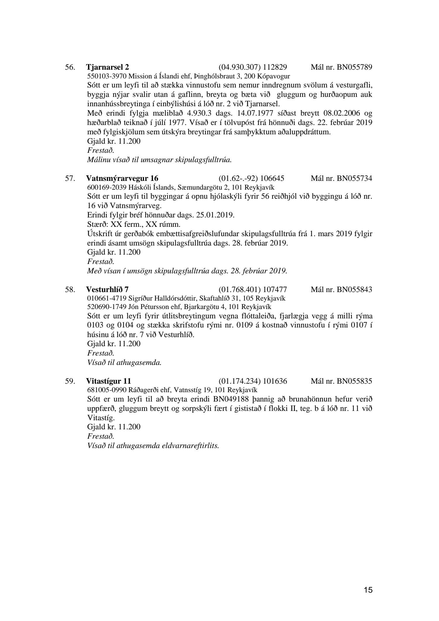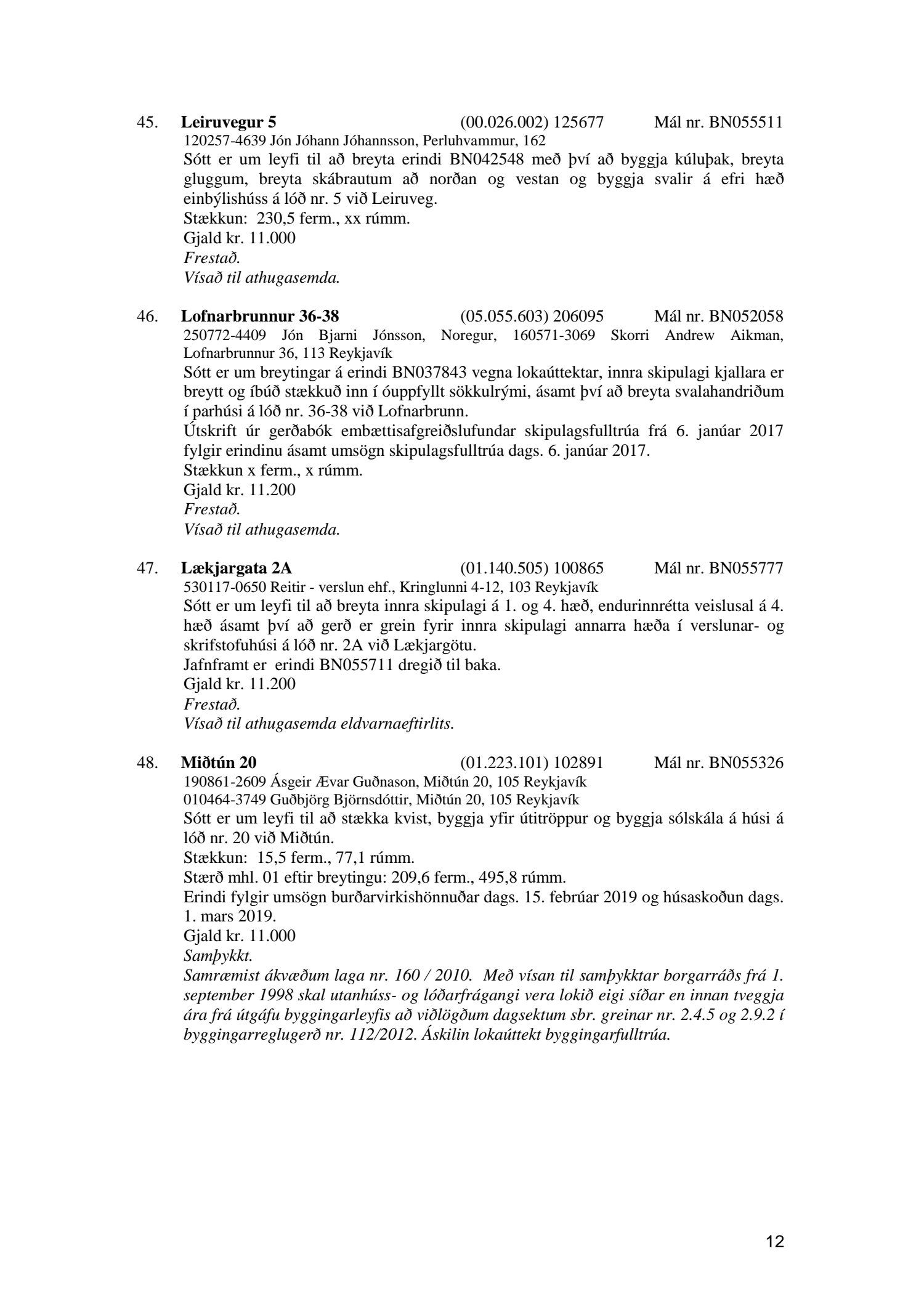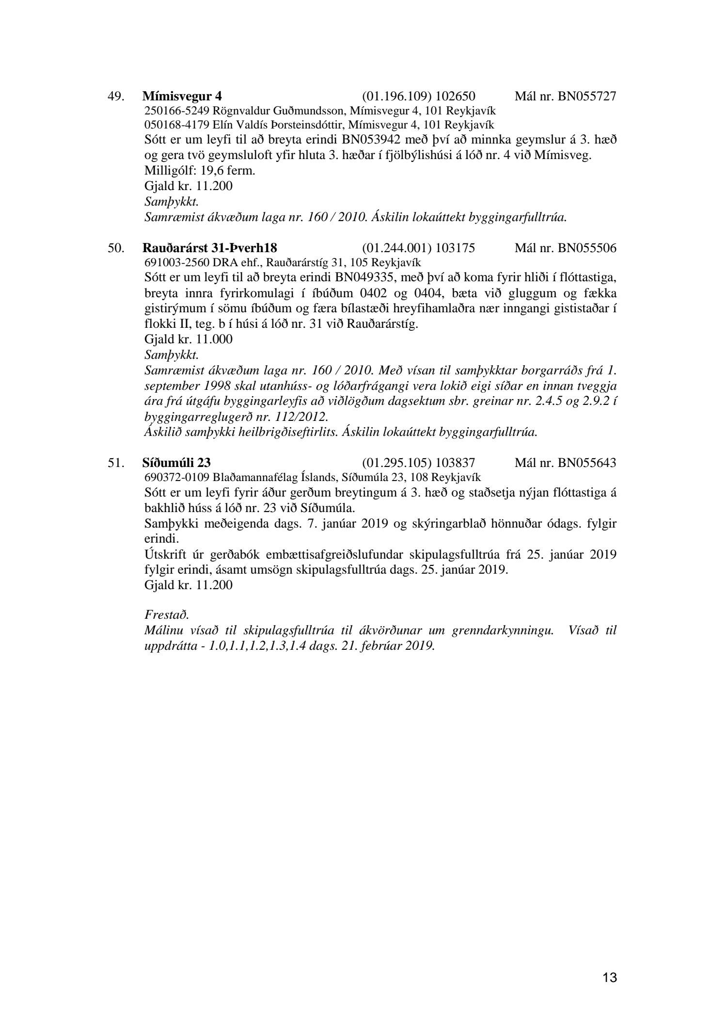 Fylgiskjal með fundargerð þessari er fundargerðir afgreiðslufundar byggingarfulltrúa nr. 1011 frá 5. mars 2019.