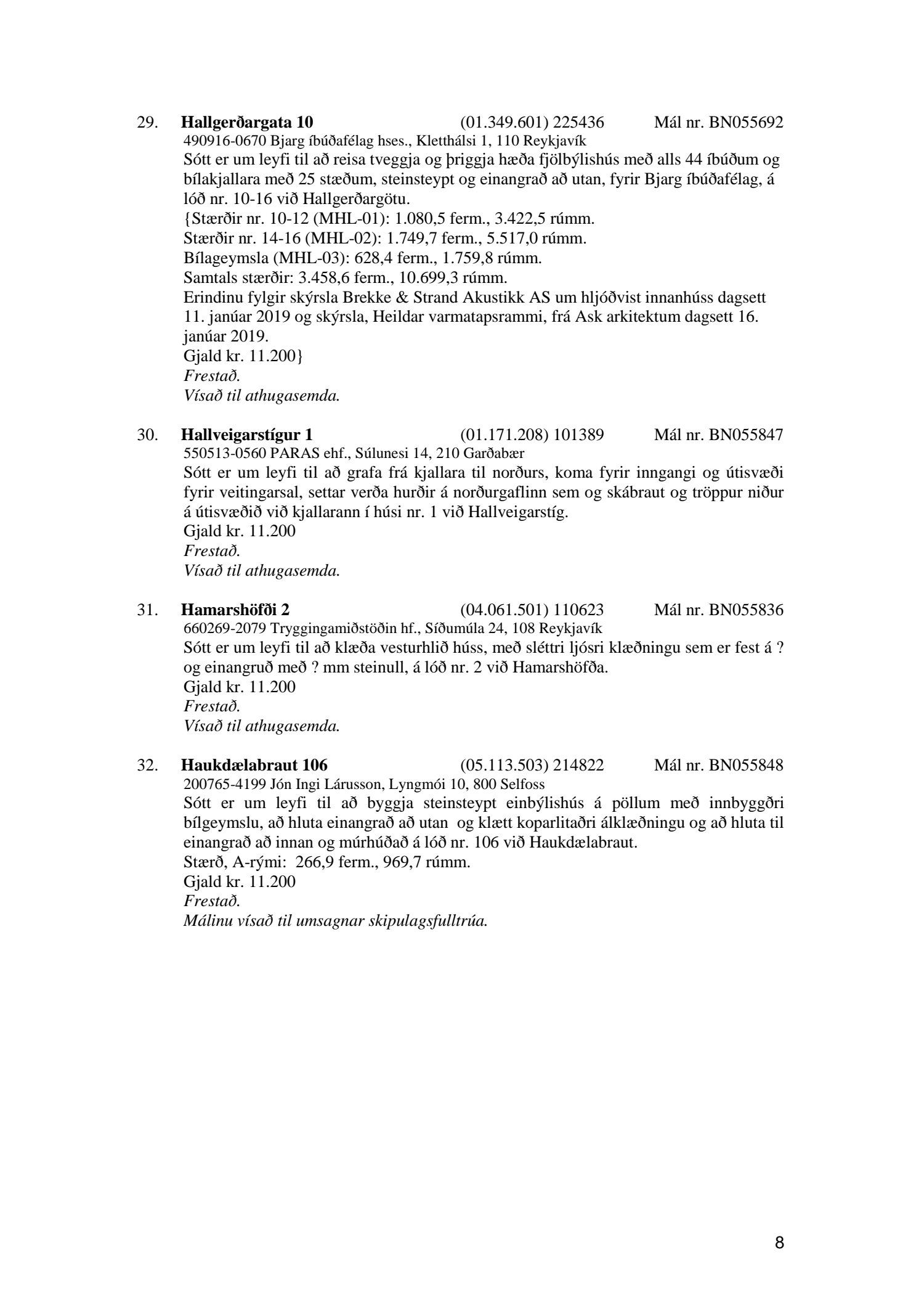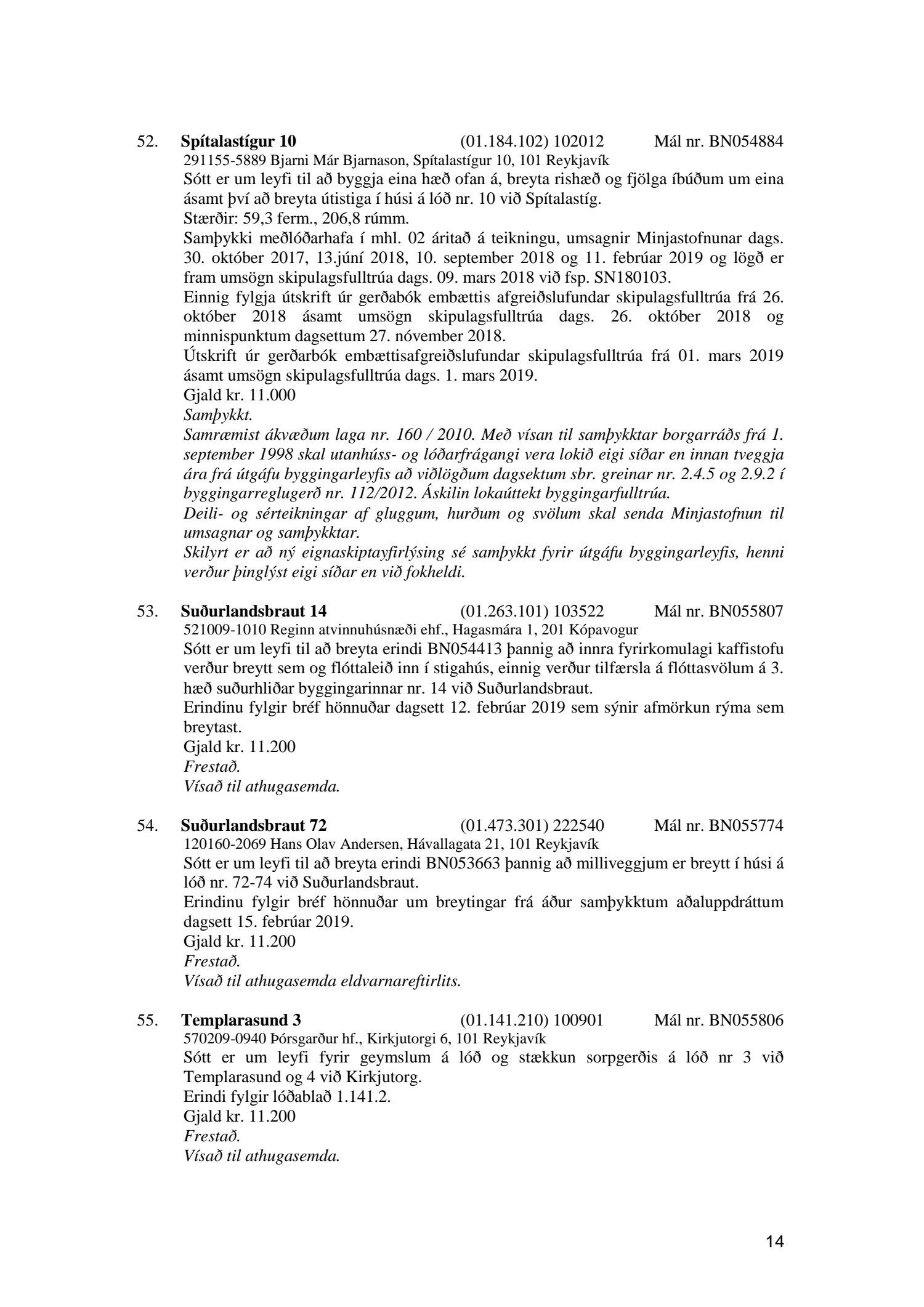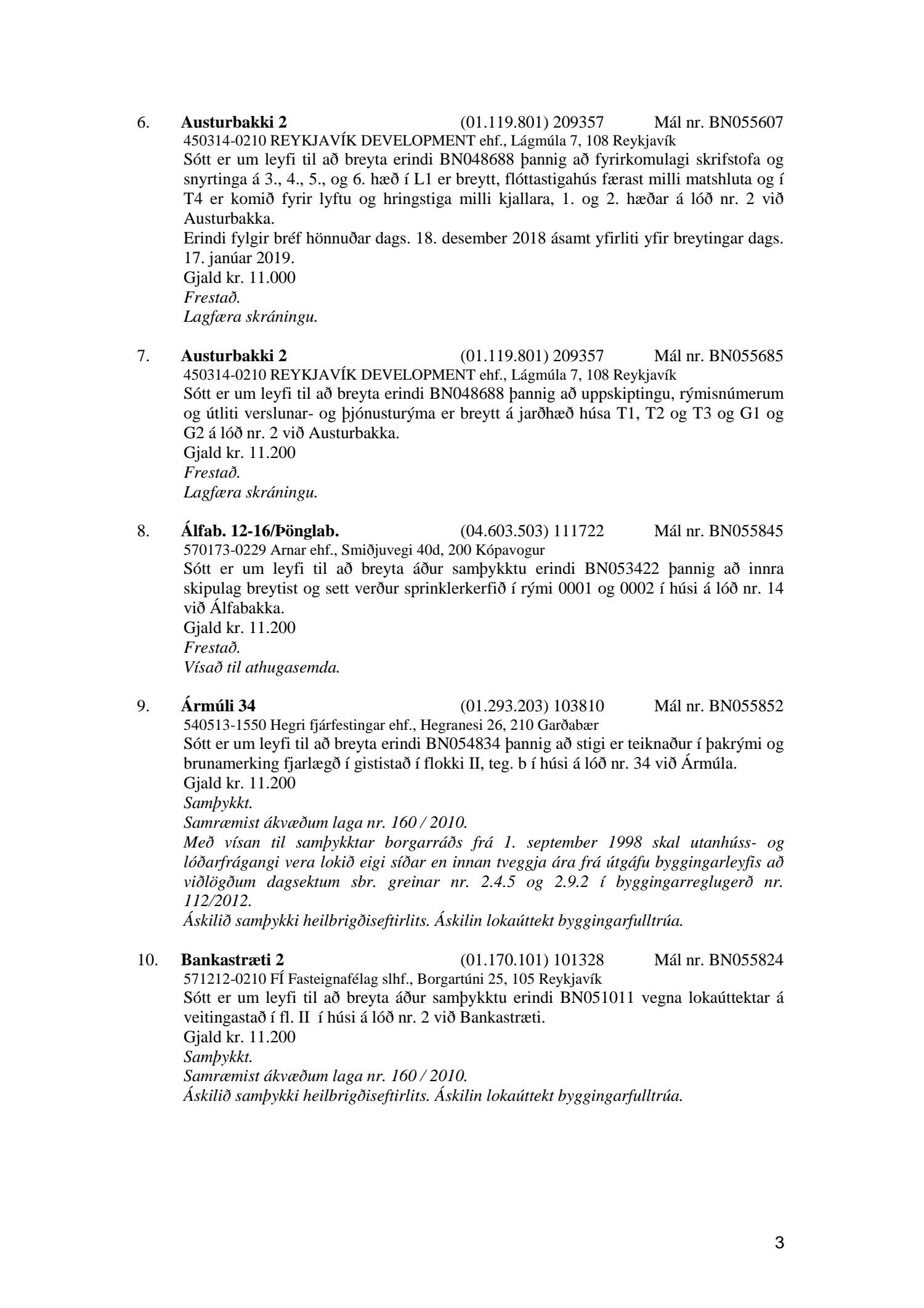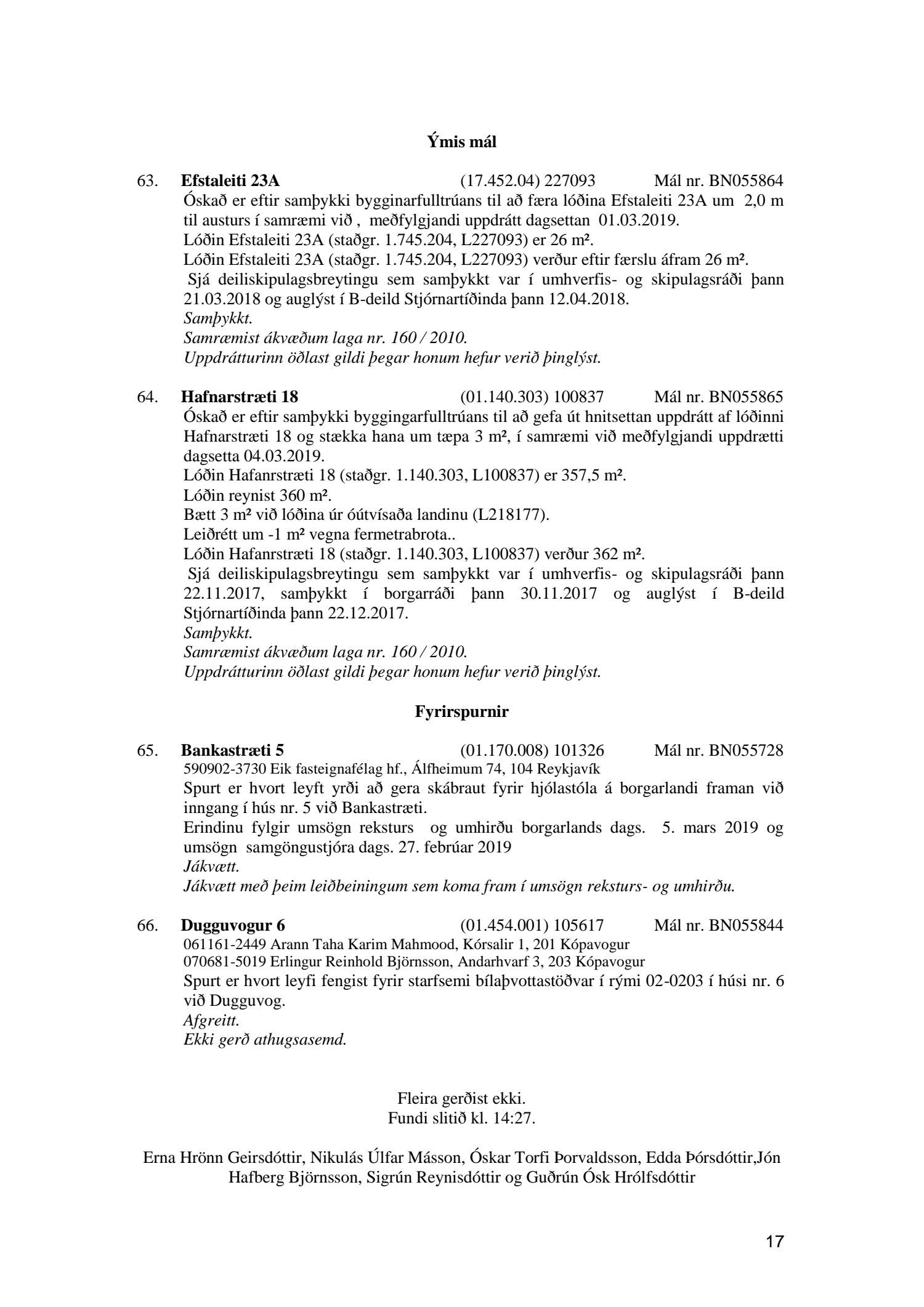 Afgreiðslufundur byggingarfulltrúa, fundargerð