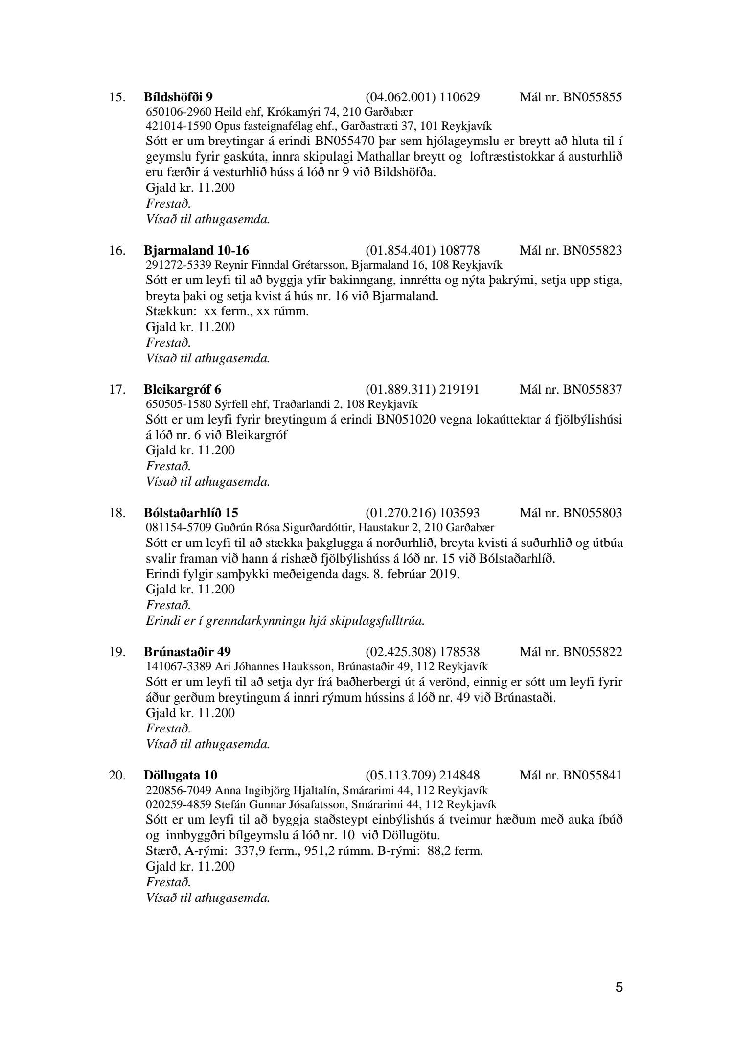 Afgreiðslufundur byggingarfulltrúa 5. mars 2019