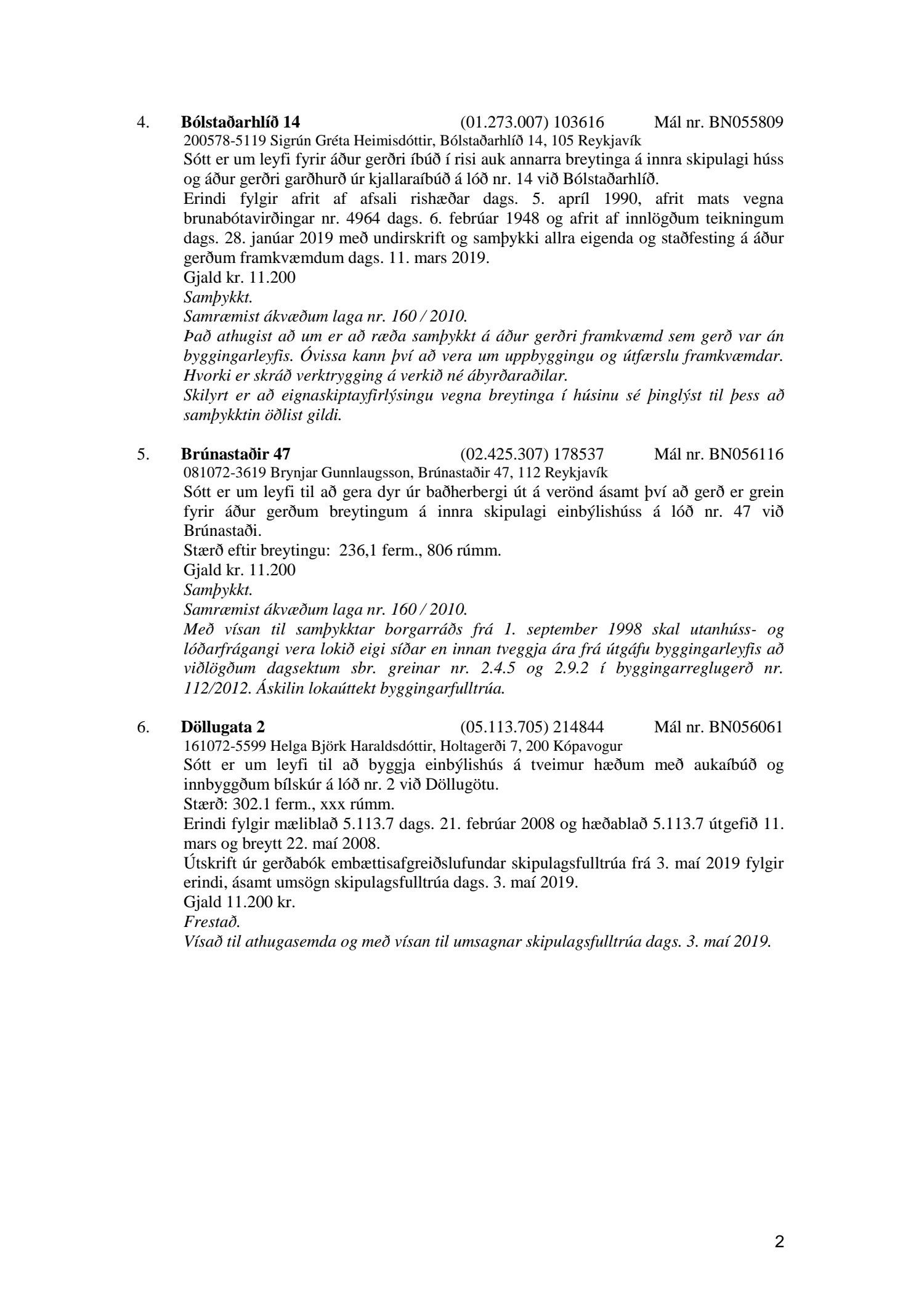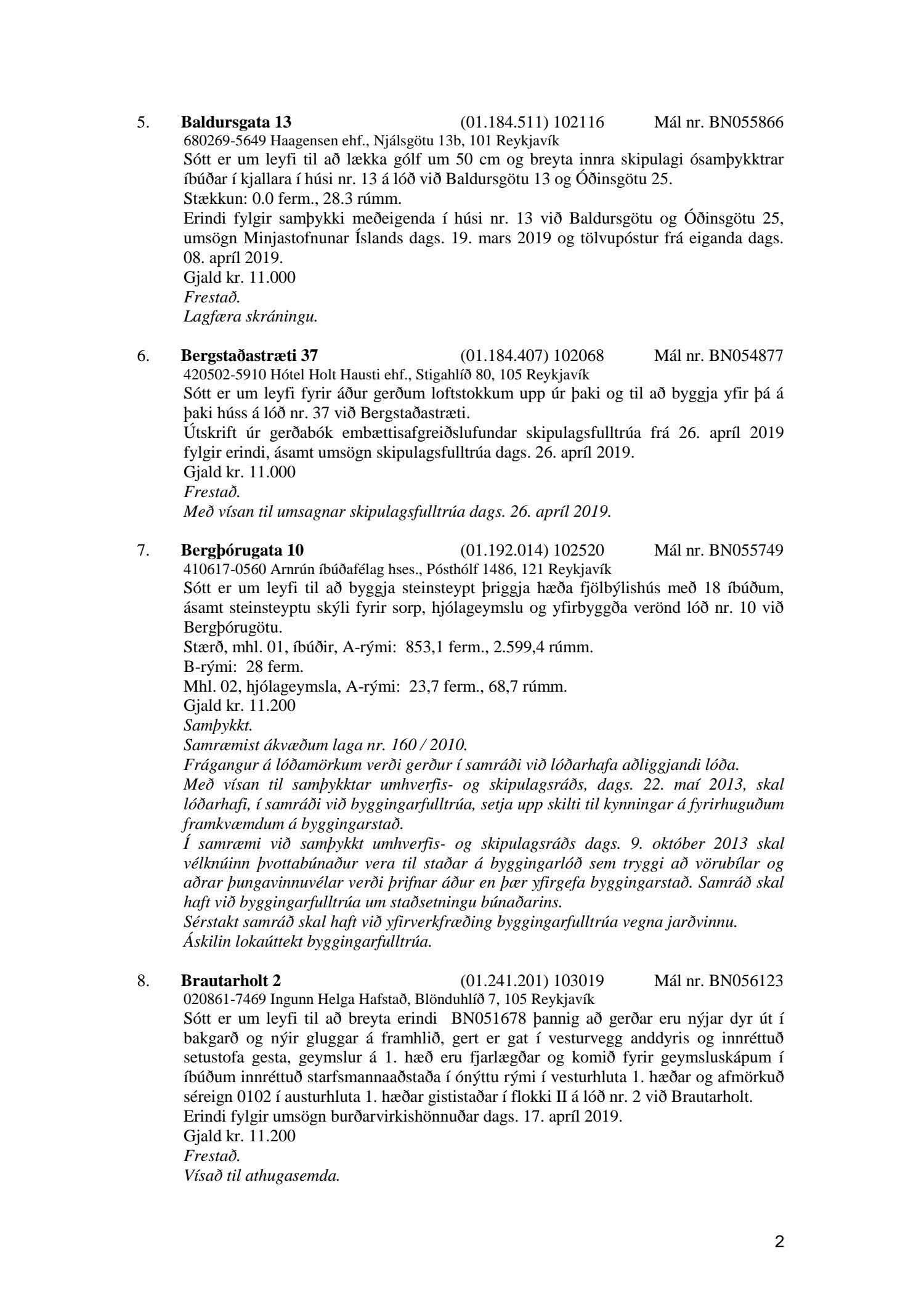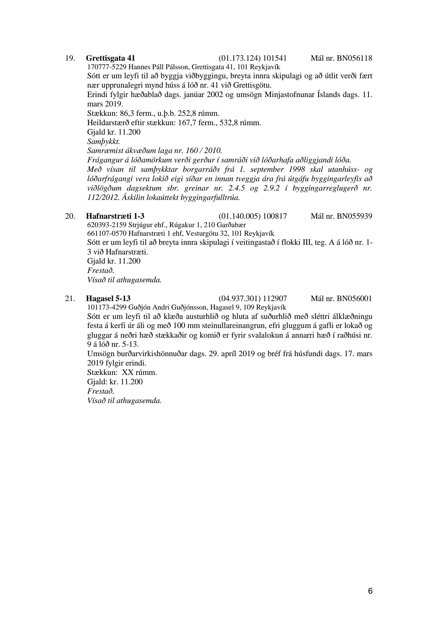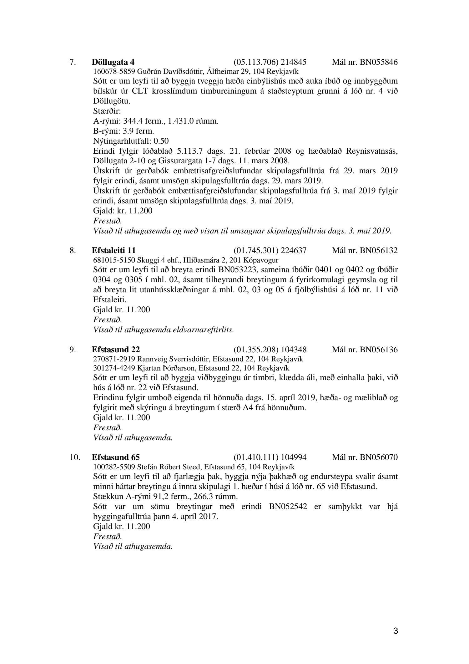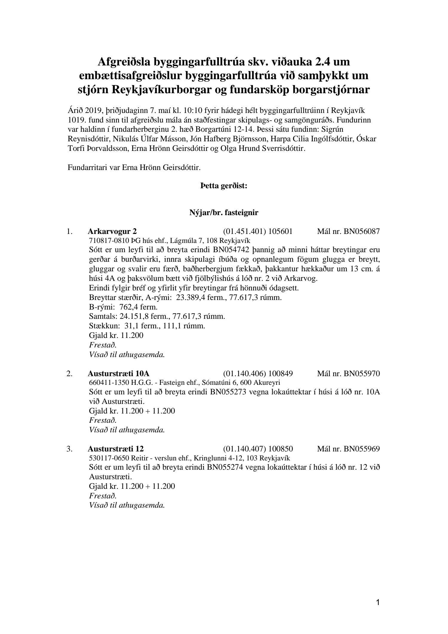 fundargerð afgreiðslufundar byggingarfulltrúa nr. 1019 frá 7. maí 2019.