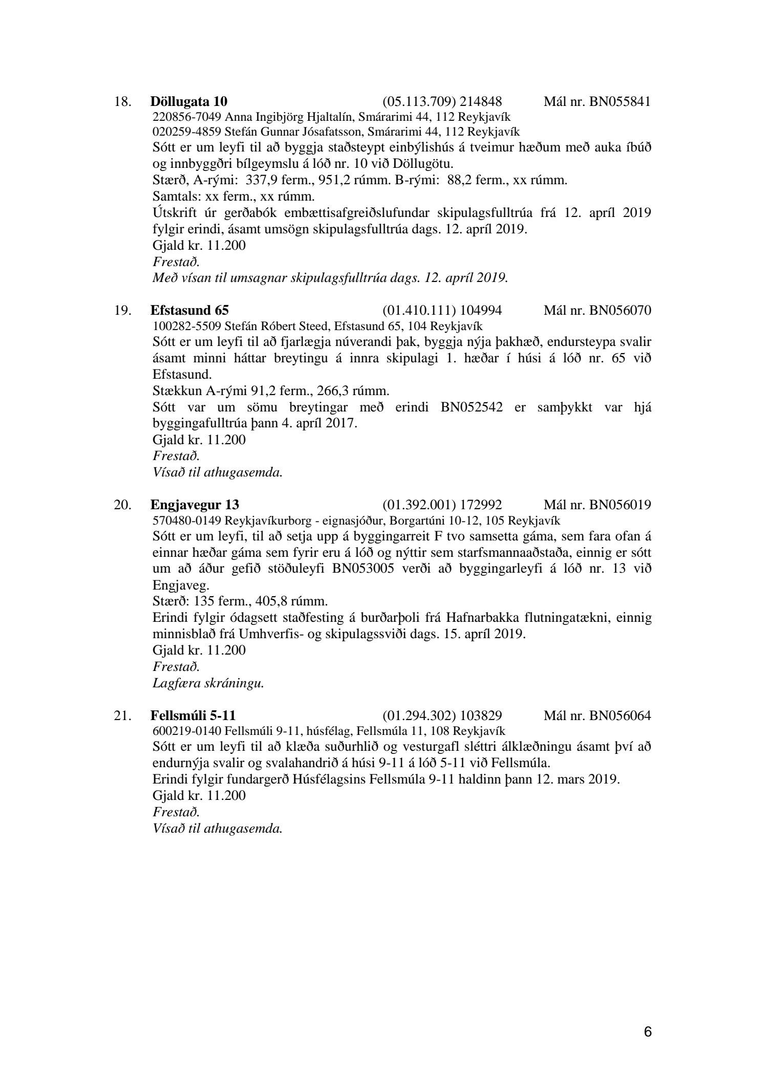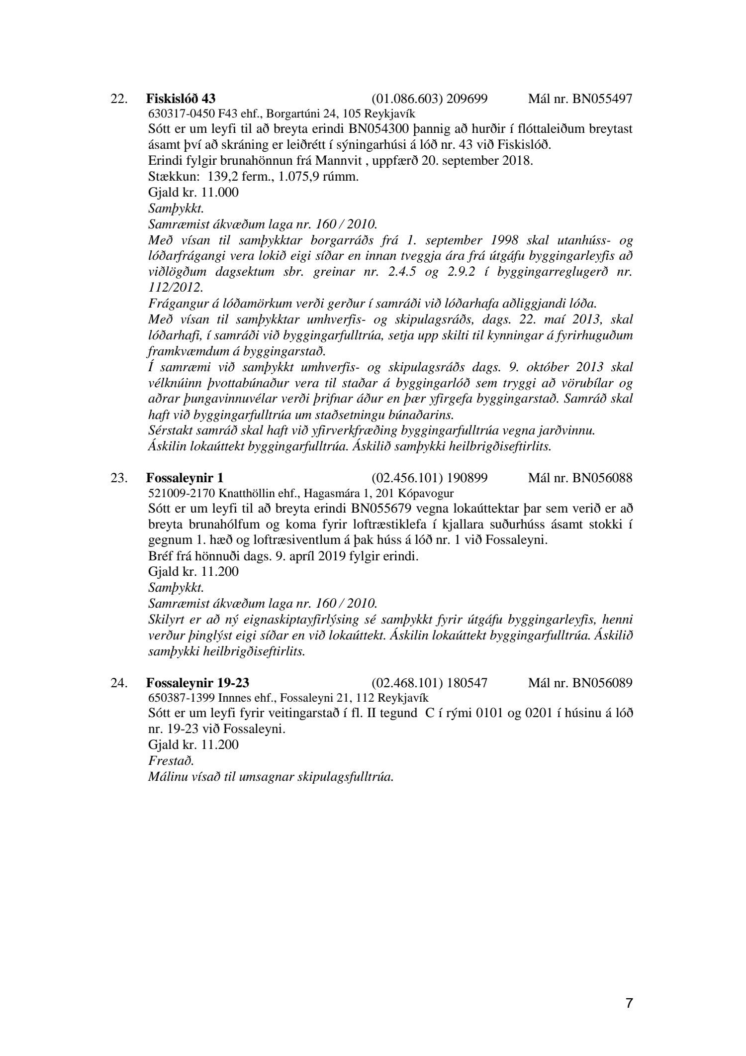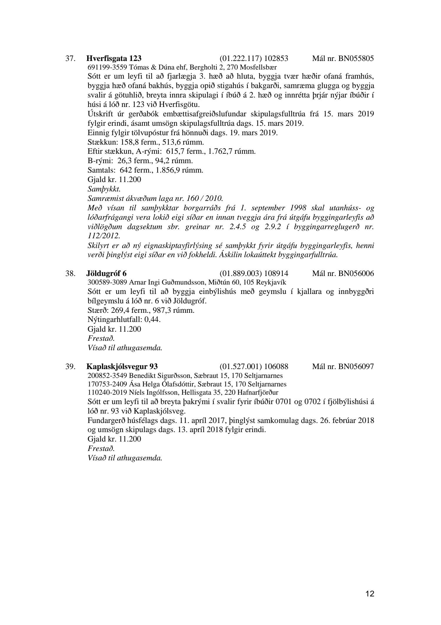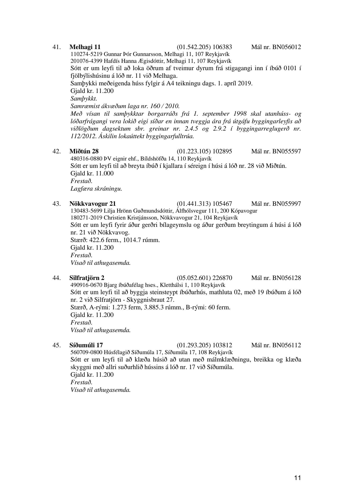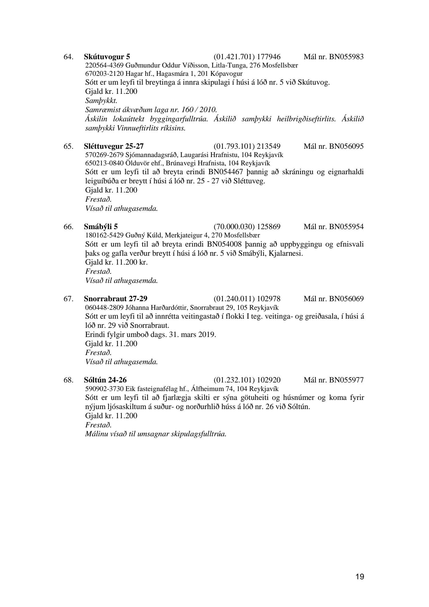 fundargerð afgreiðslufundar byggingarfulltrúa nr. 1019 frá 7. maí 2019.