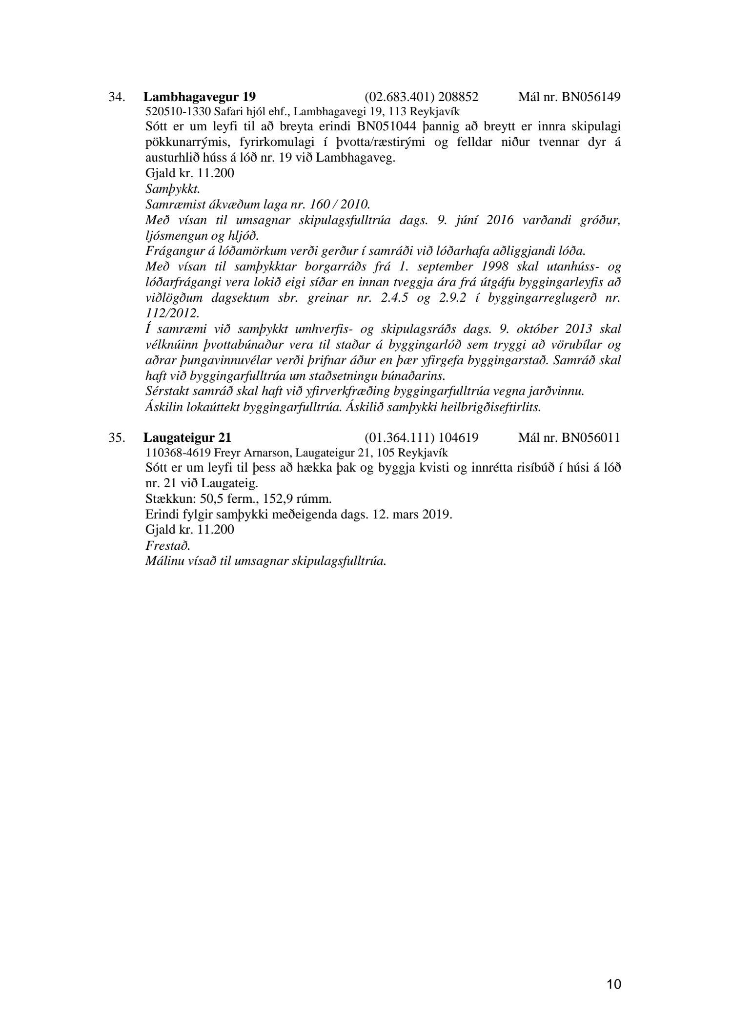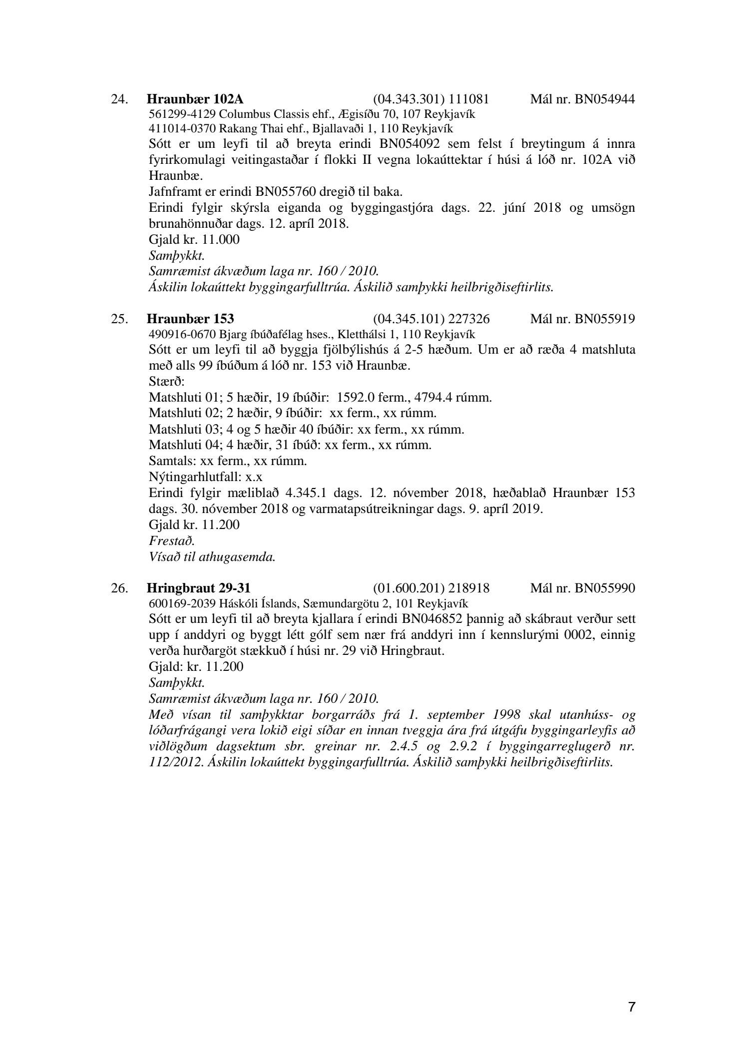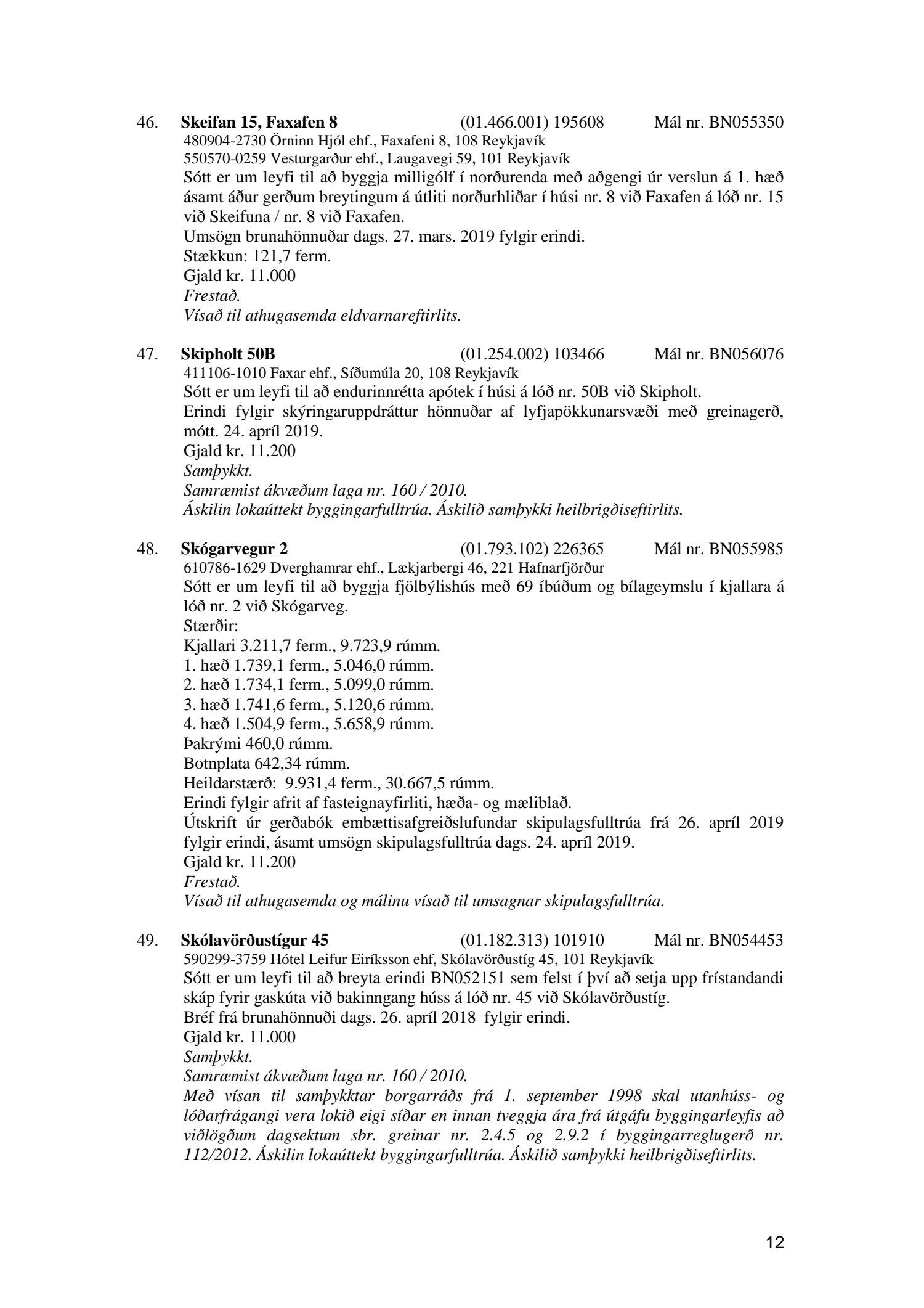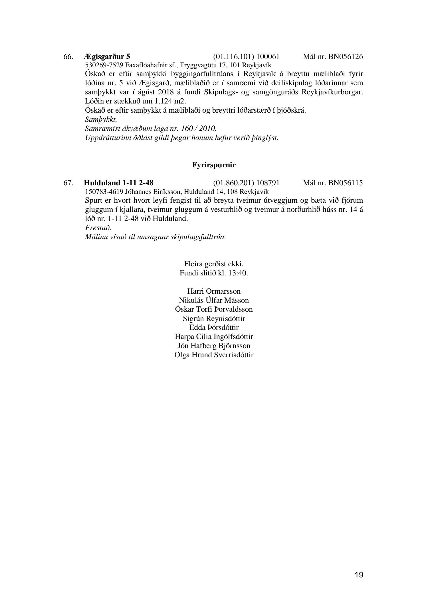 fundargerð afgreiðslufundar byggingarfulltrúa nr. 1019 frá 7. maí 2019.
