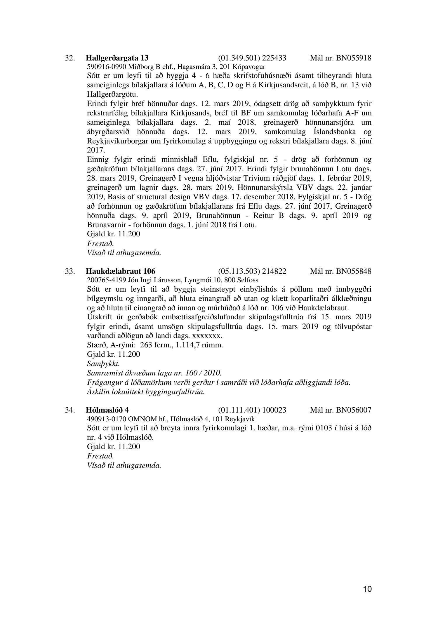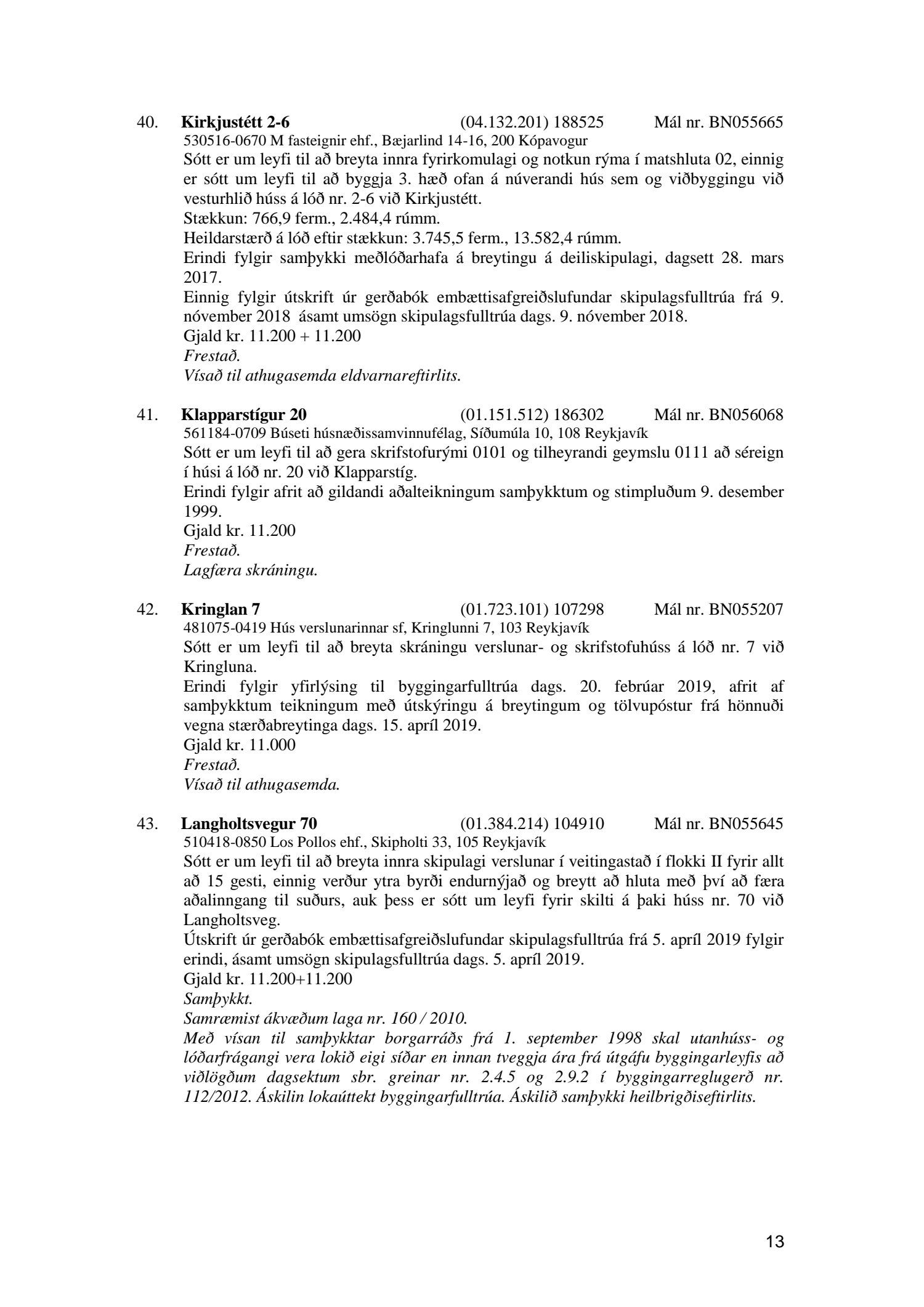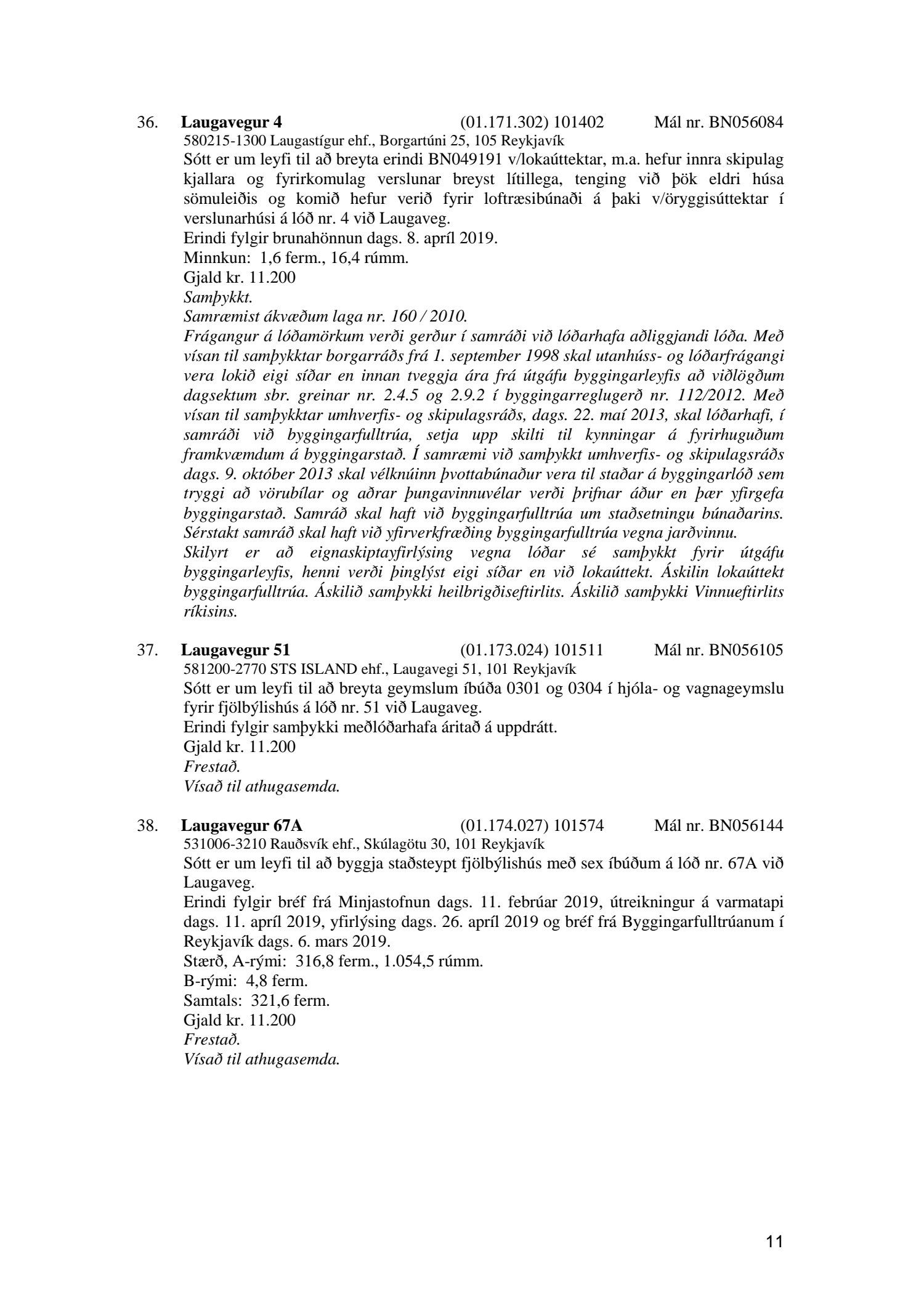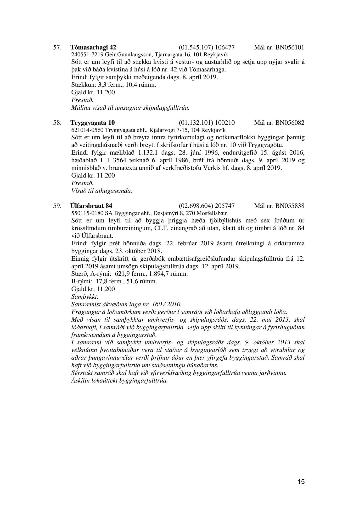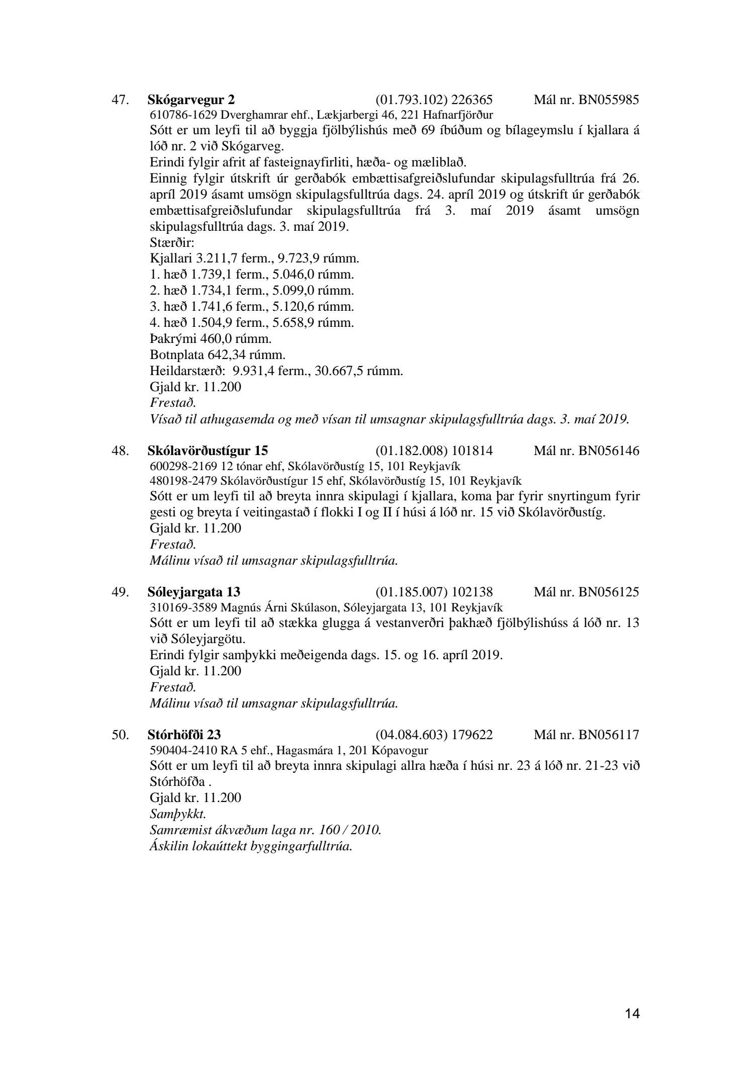 fundargerð afgreiðslufundar byggingarfulltrúa nr. 1019 frá 7. maí 2019.