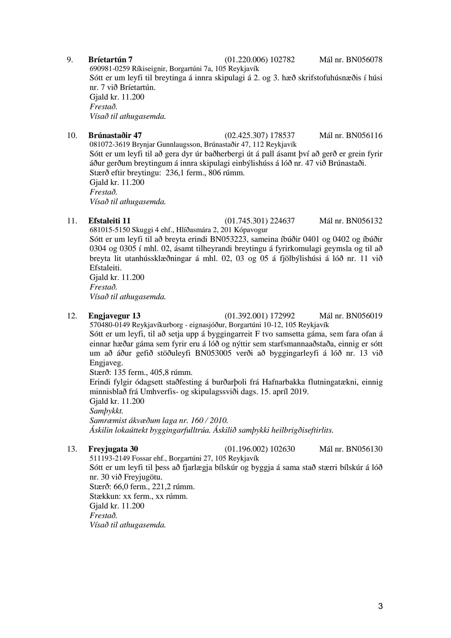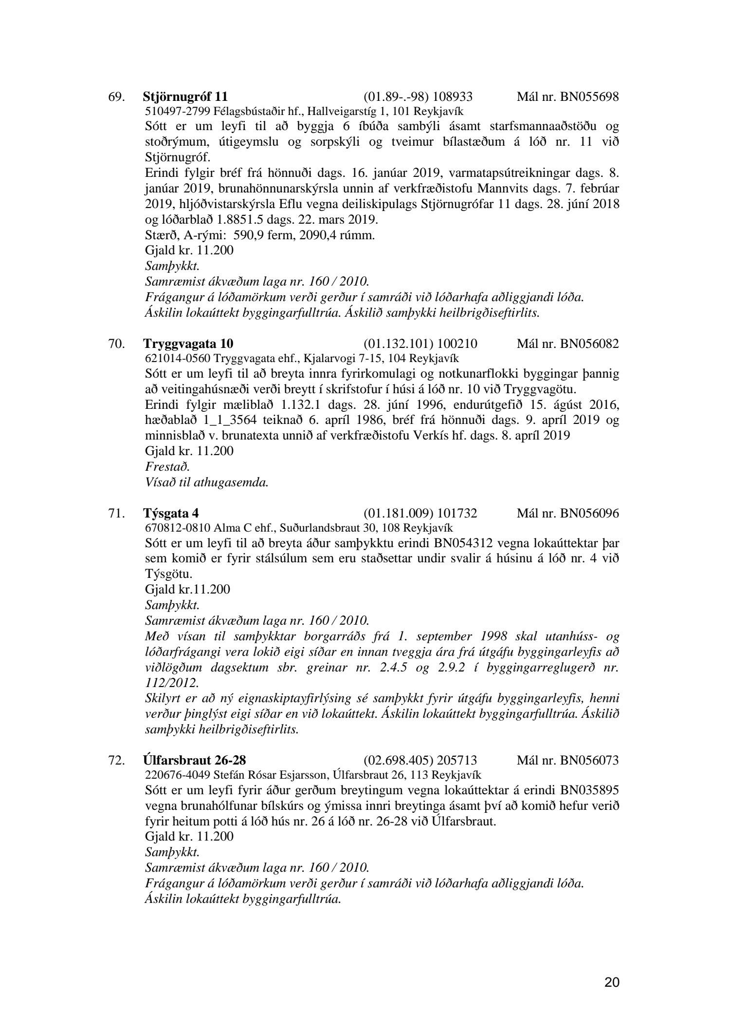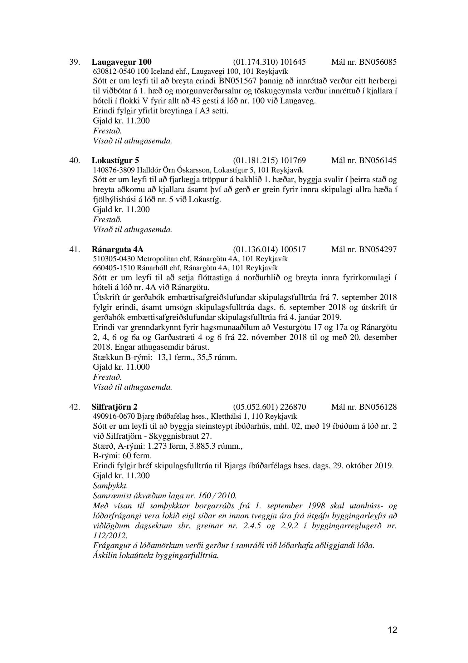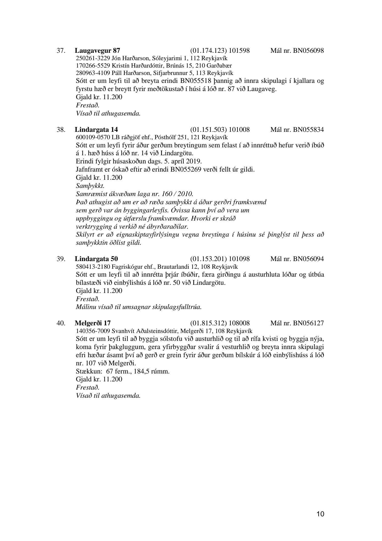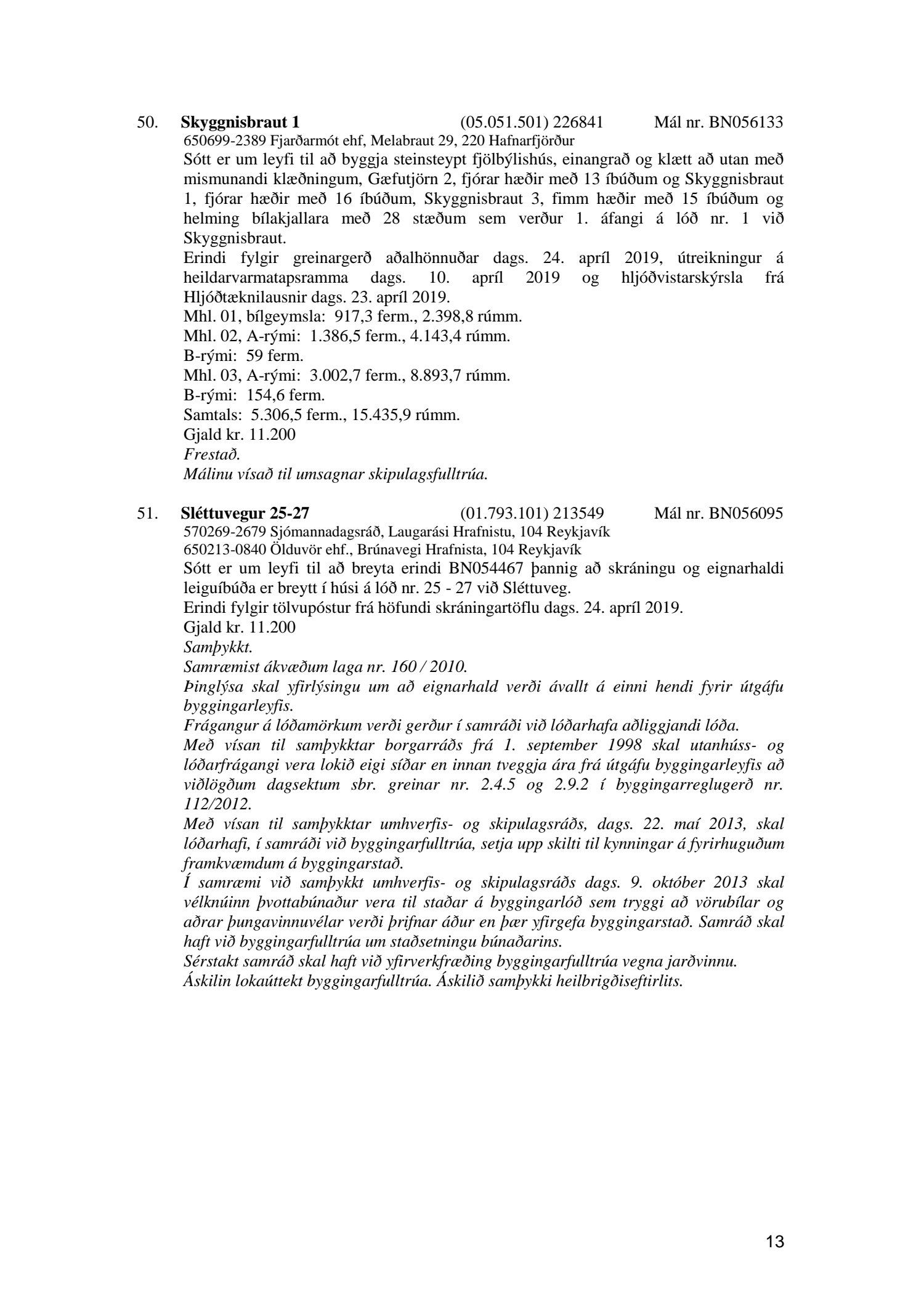 fundargerð afgreiðslufundar byggingarfulltrúa nr. 1019 frá 7. maí 2019.