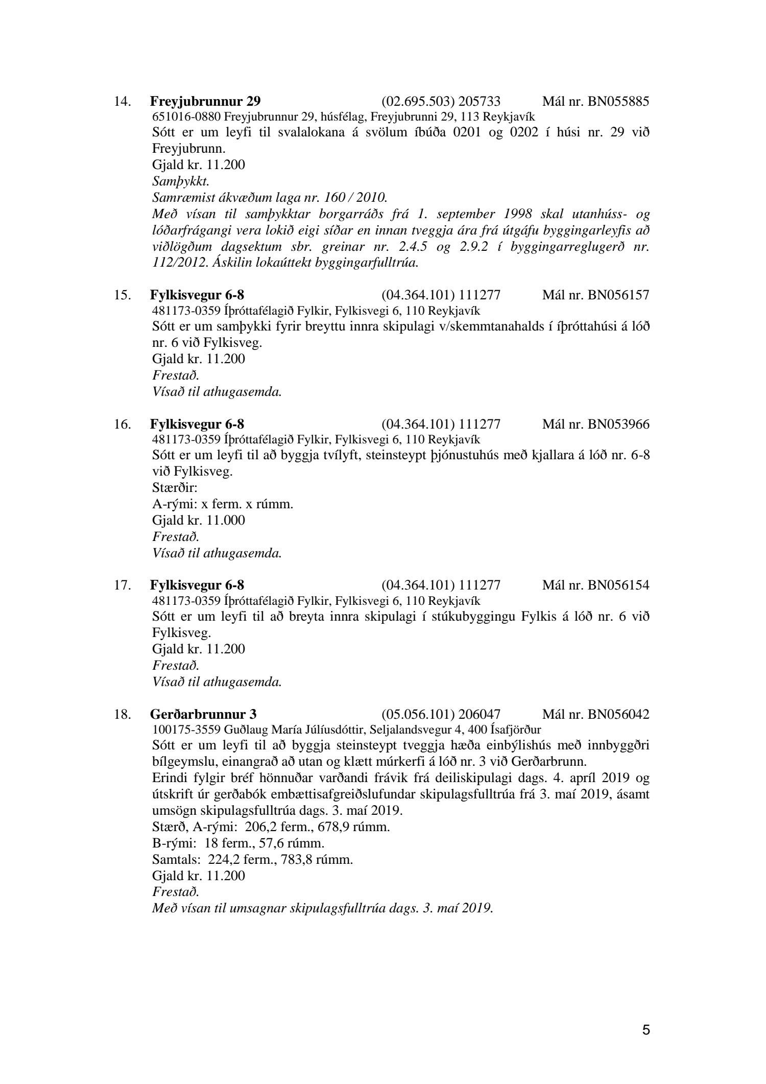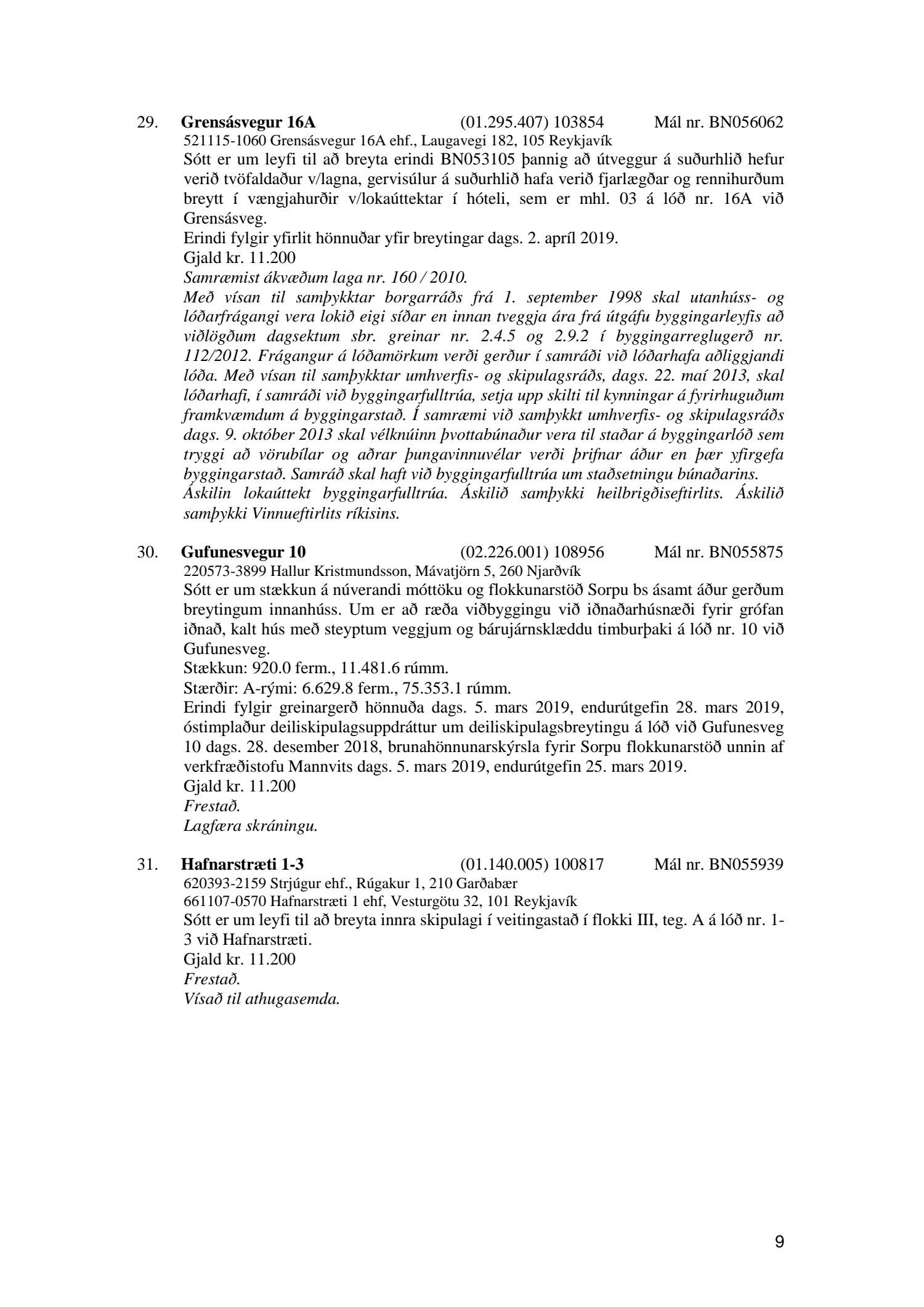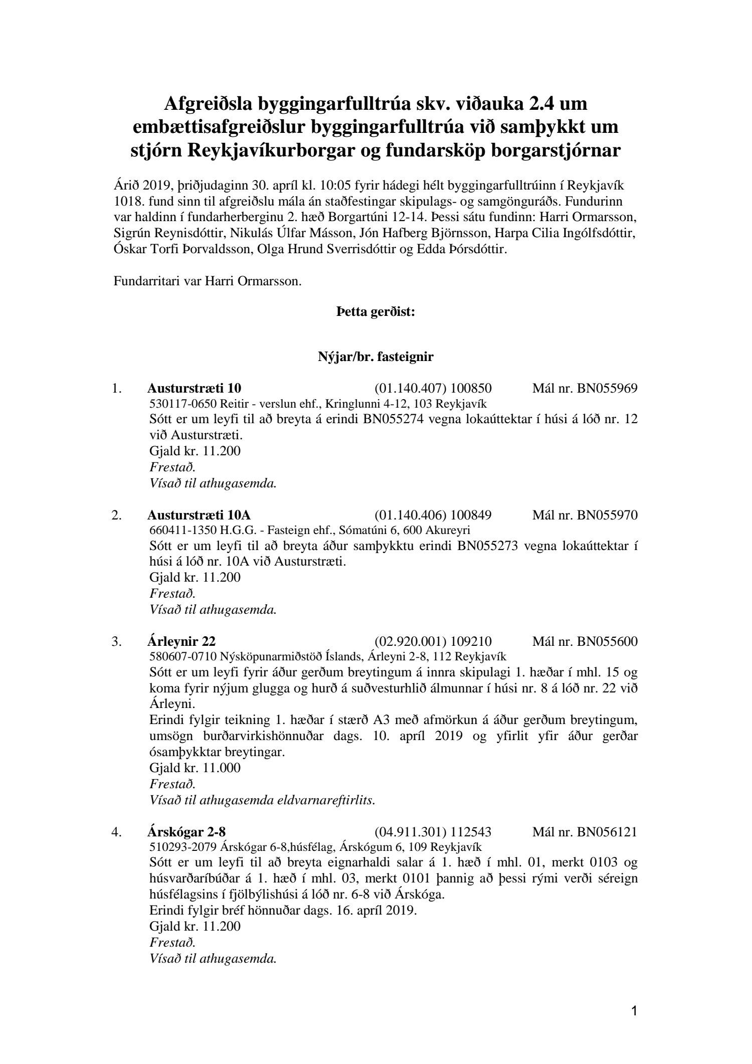 fundargerð afgreiðslufundar byggingarfulltrúa nr. 1018 frá 30. apríl 2019 og