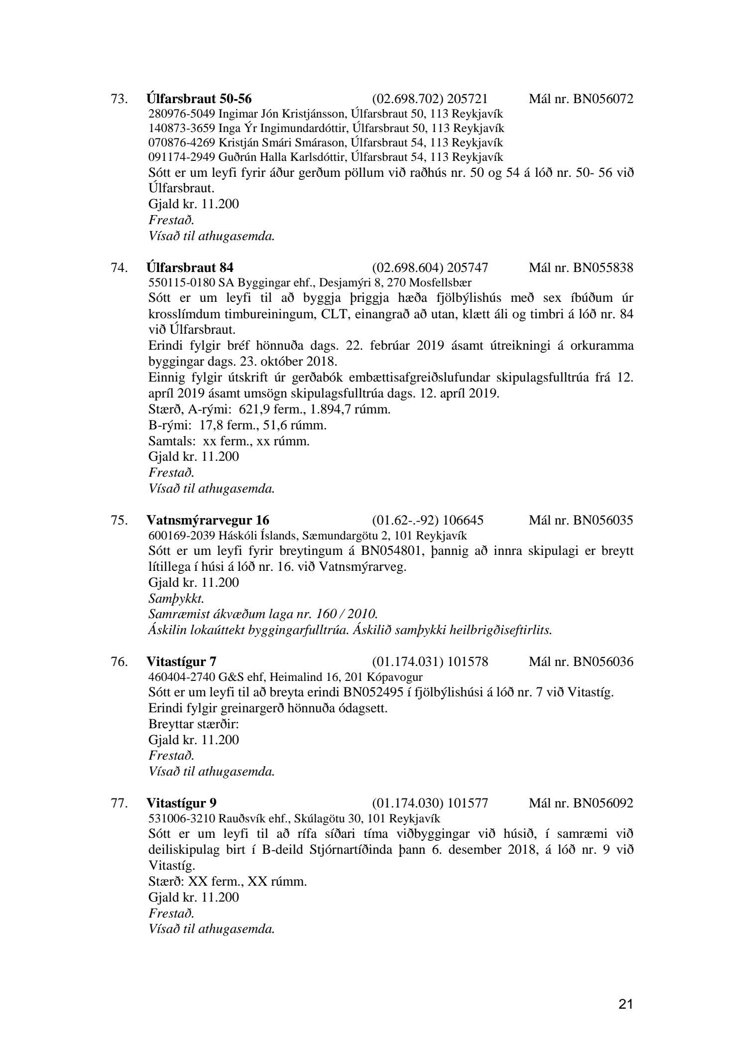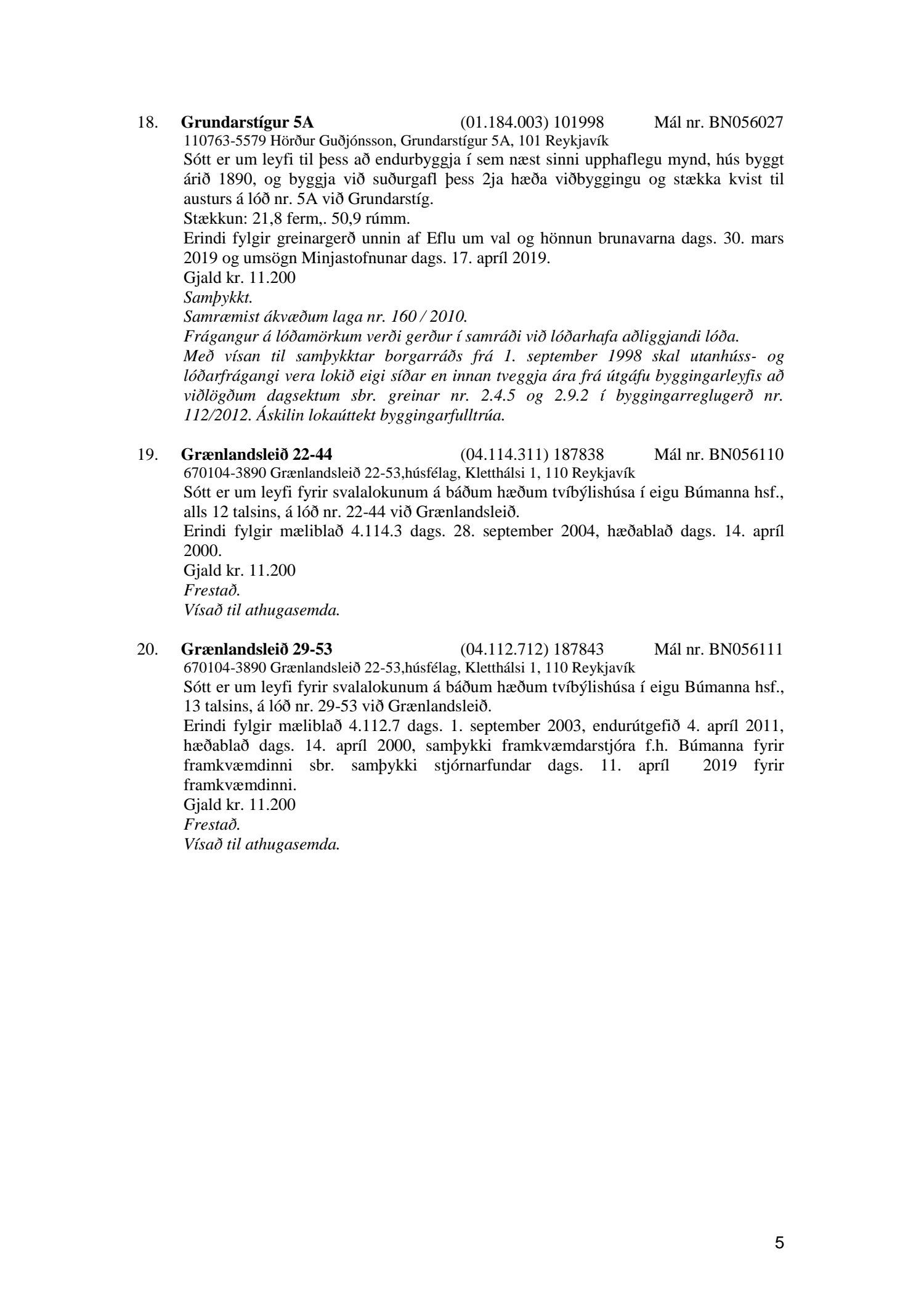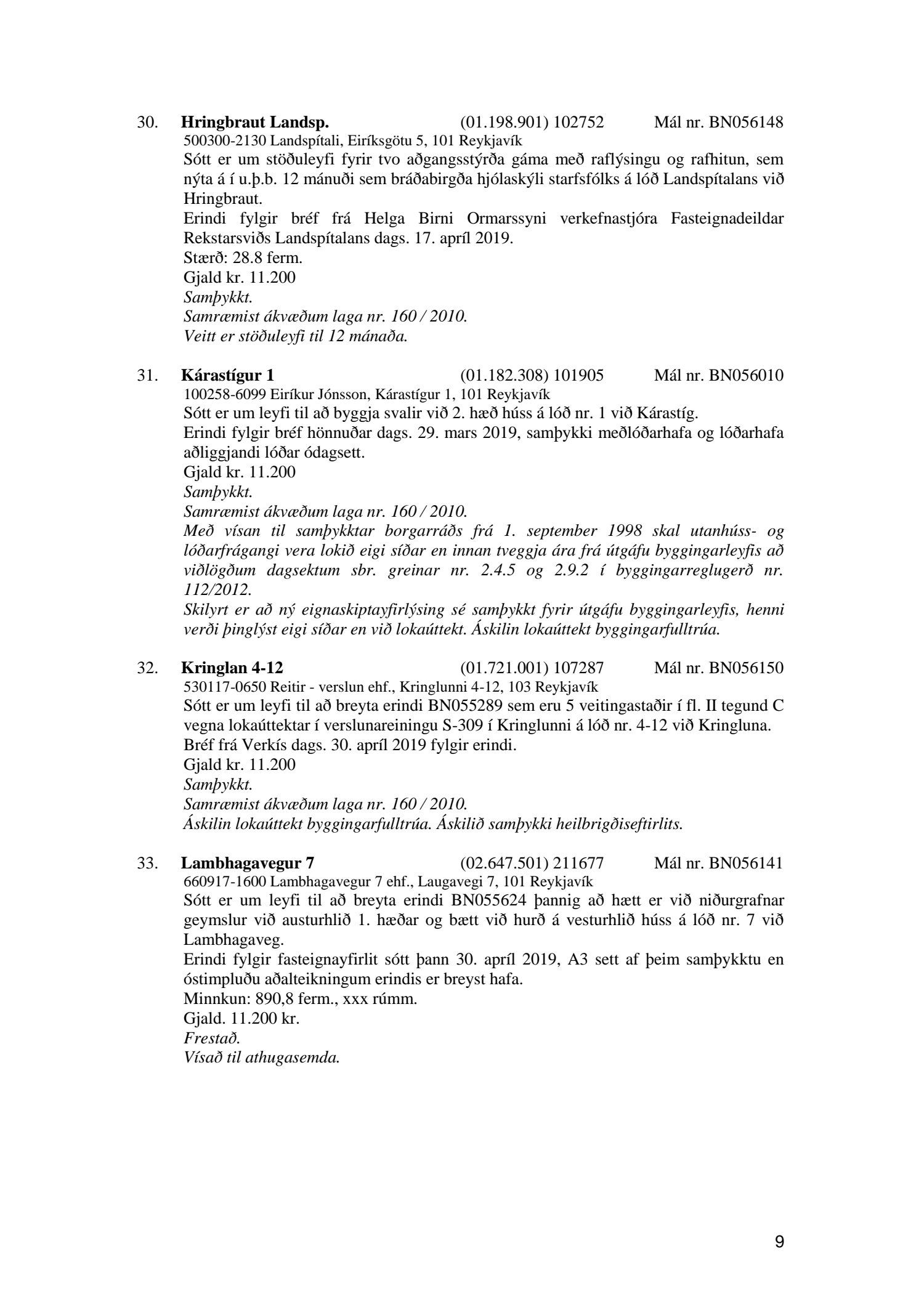 fundargerð afgreiðslufundar byggingarfulltrúa nr. 1018 frá 30. apríl 2019 og