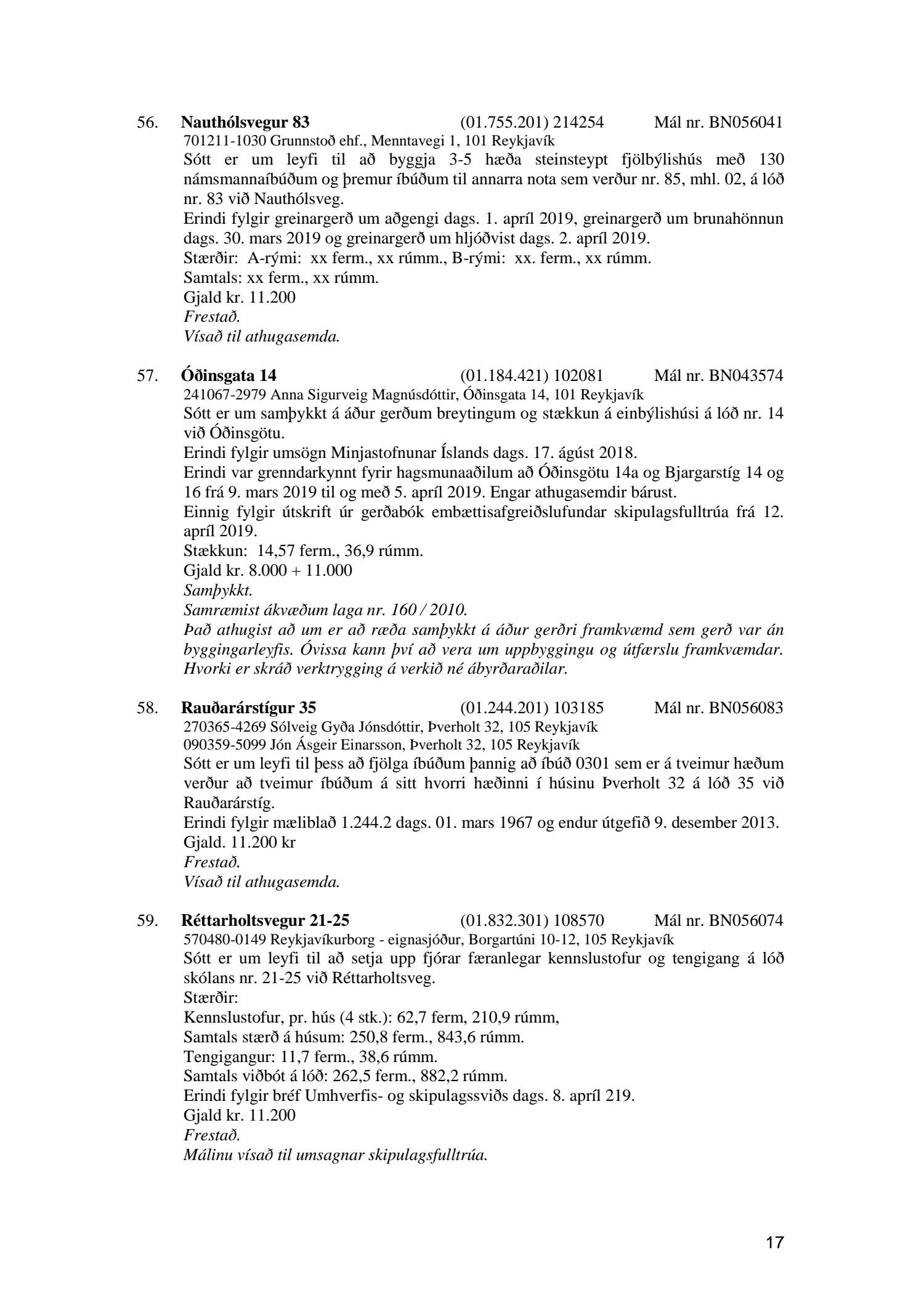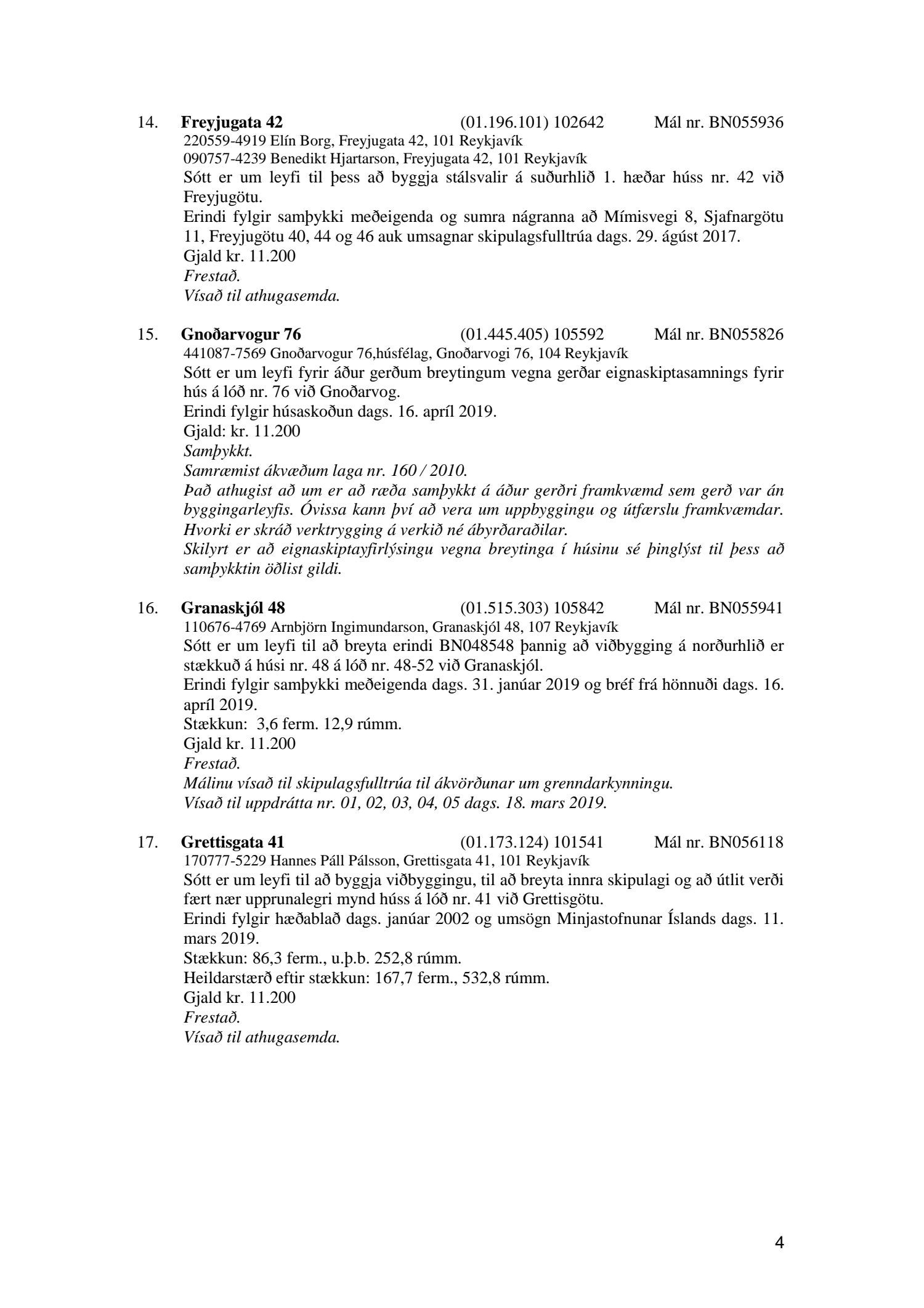 fundargerð afgreiðslufundar byggingarfulltrúa nr. 1017 frá 16. apríl 2019,