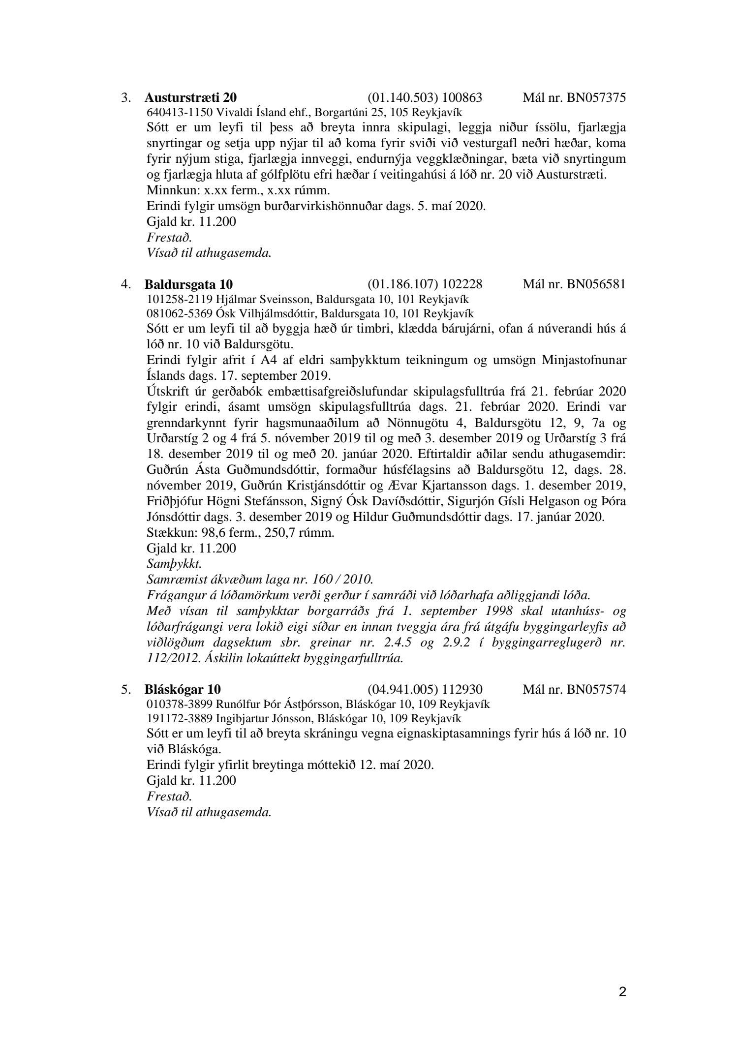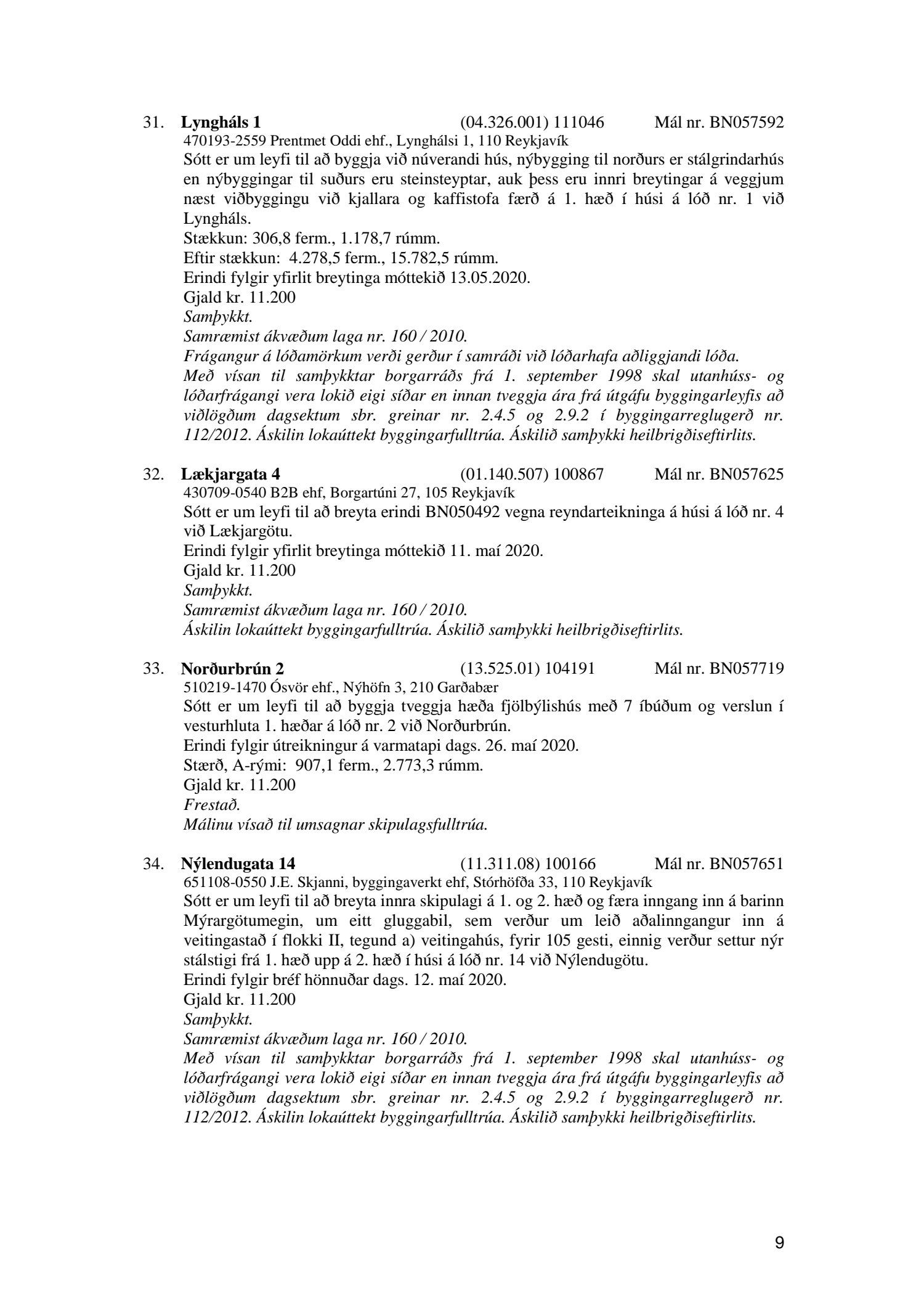 Afgreiðslufundur byggingarfulltrúa, dags. 2. júní 2020