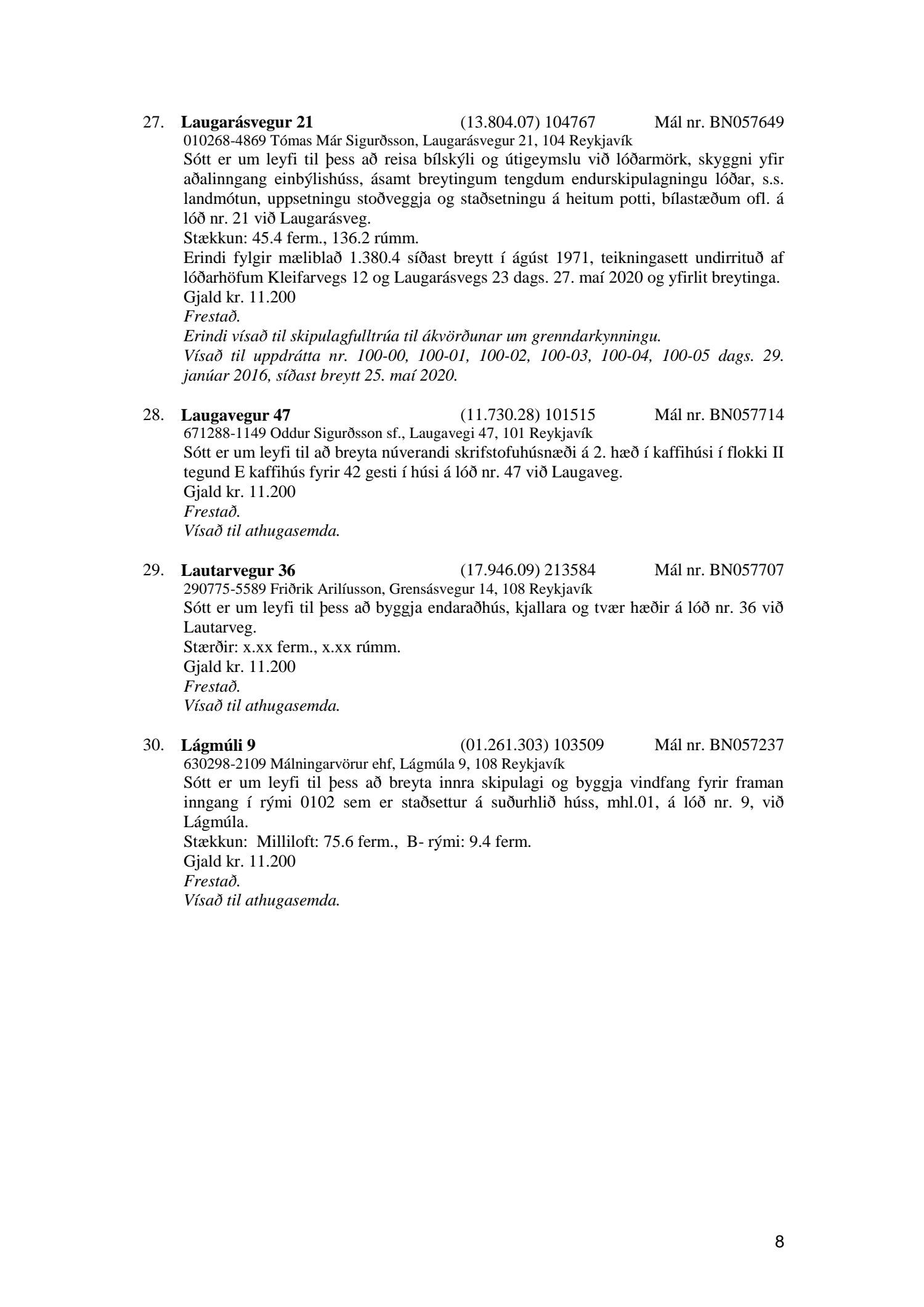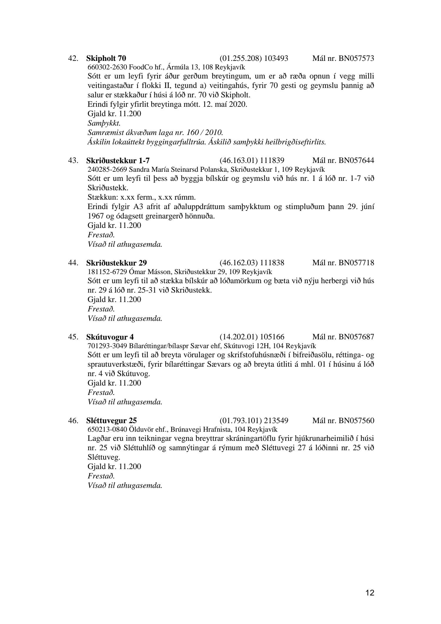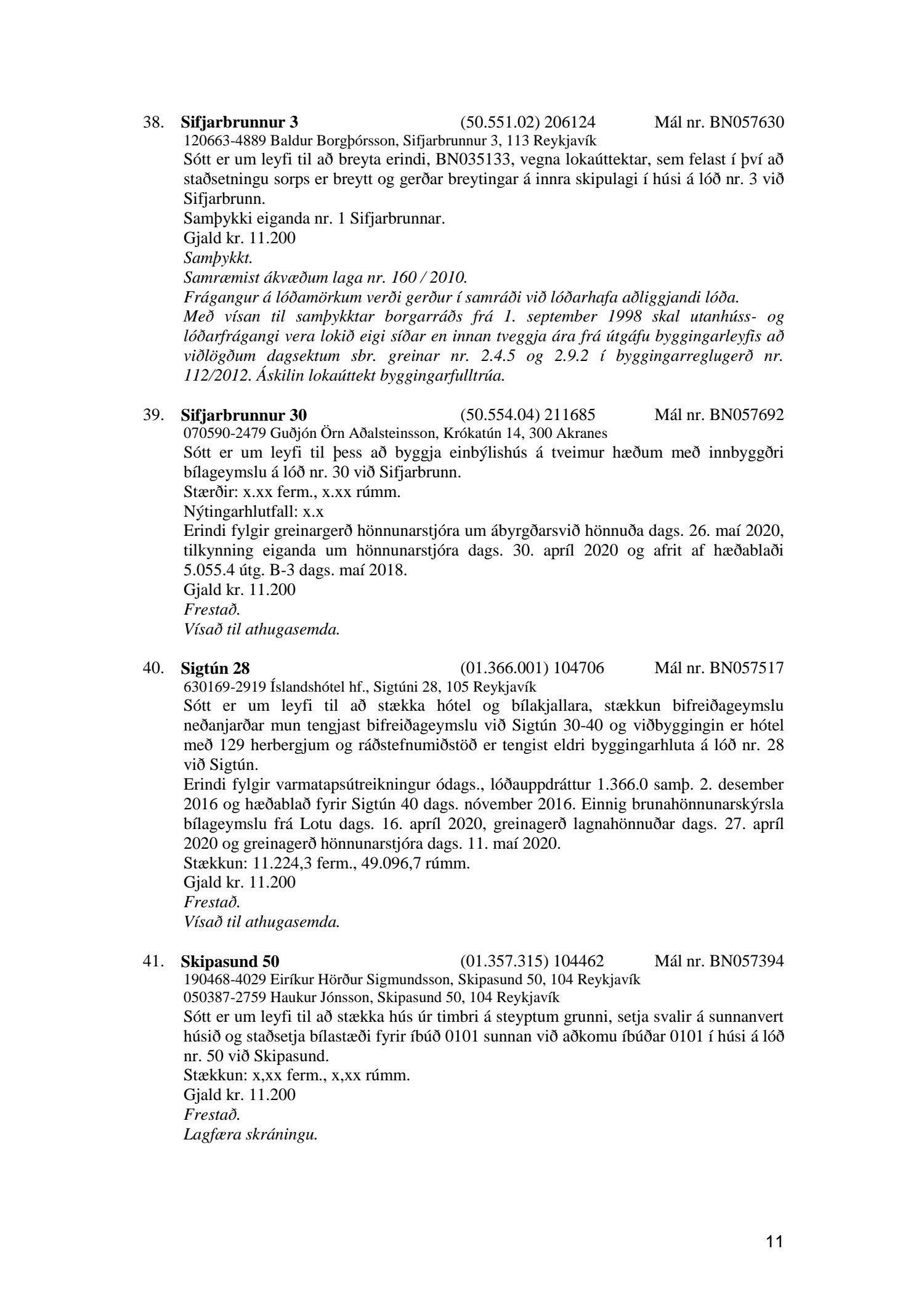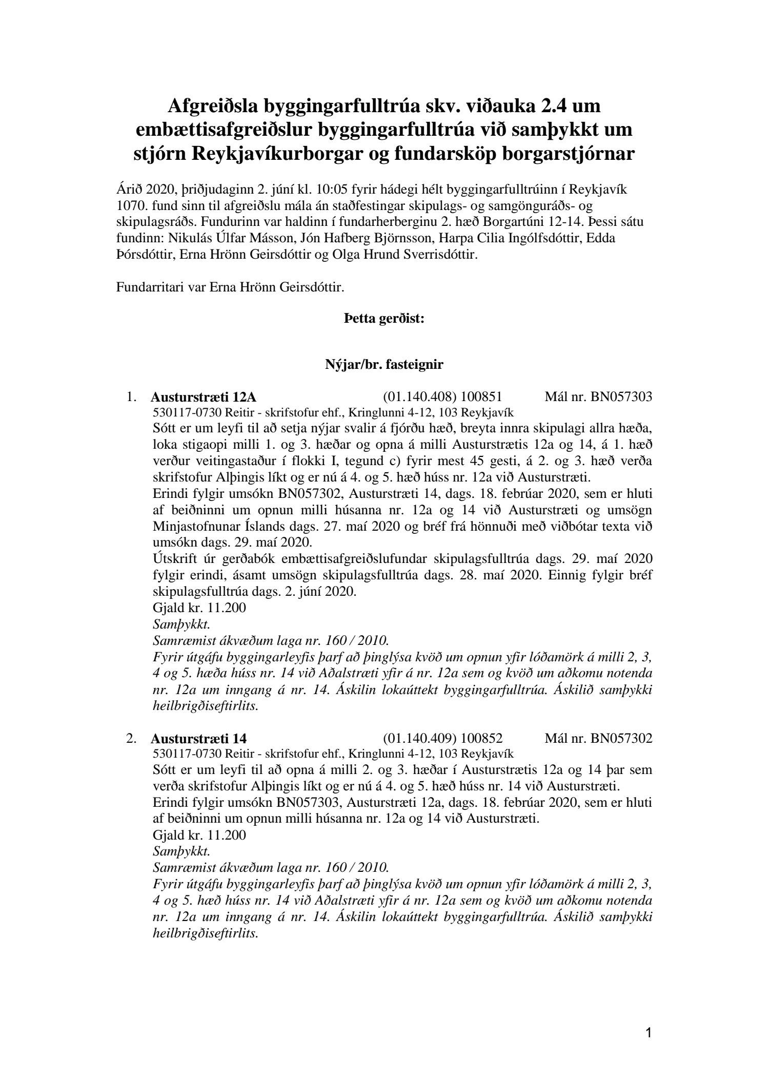 Afgreiðslufundur byggingarfulltrúa, fundargerð