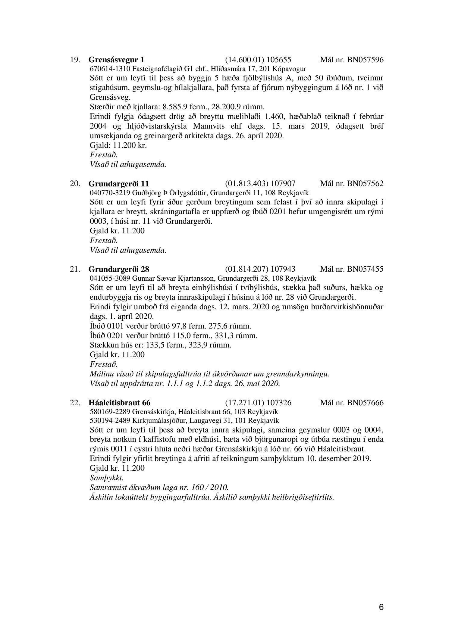 Fylgiskjal með fundargerð þessari er fundargerð afgreiðslufundar byggingarfulltrúa nr. 1070 frá 2. júní 2020.