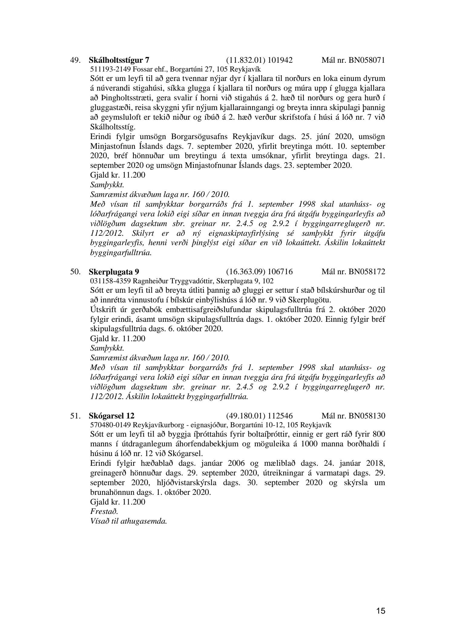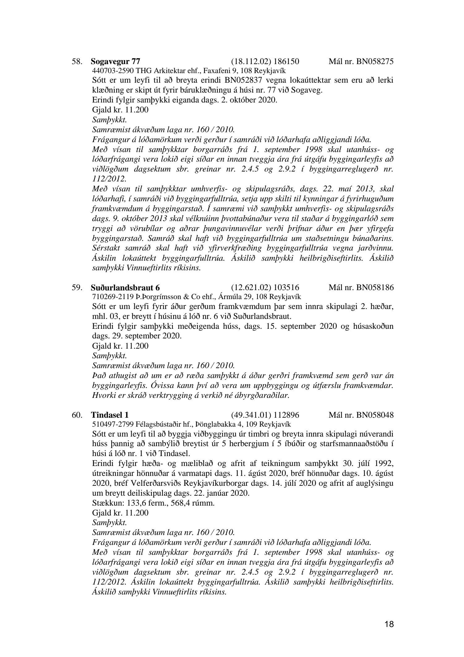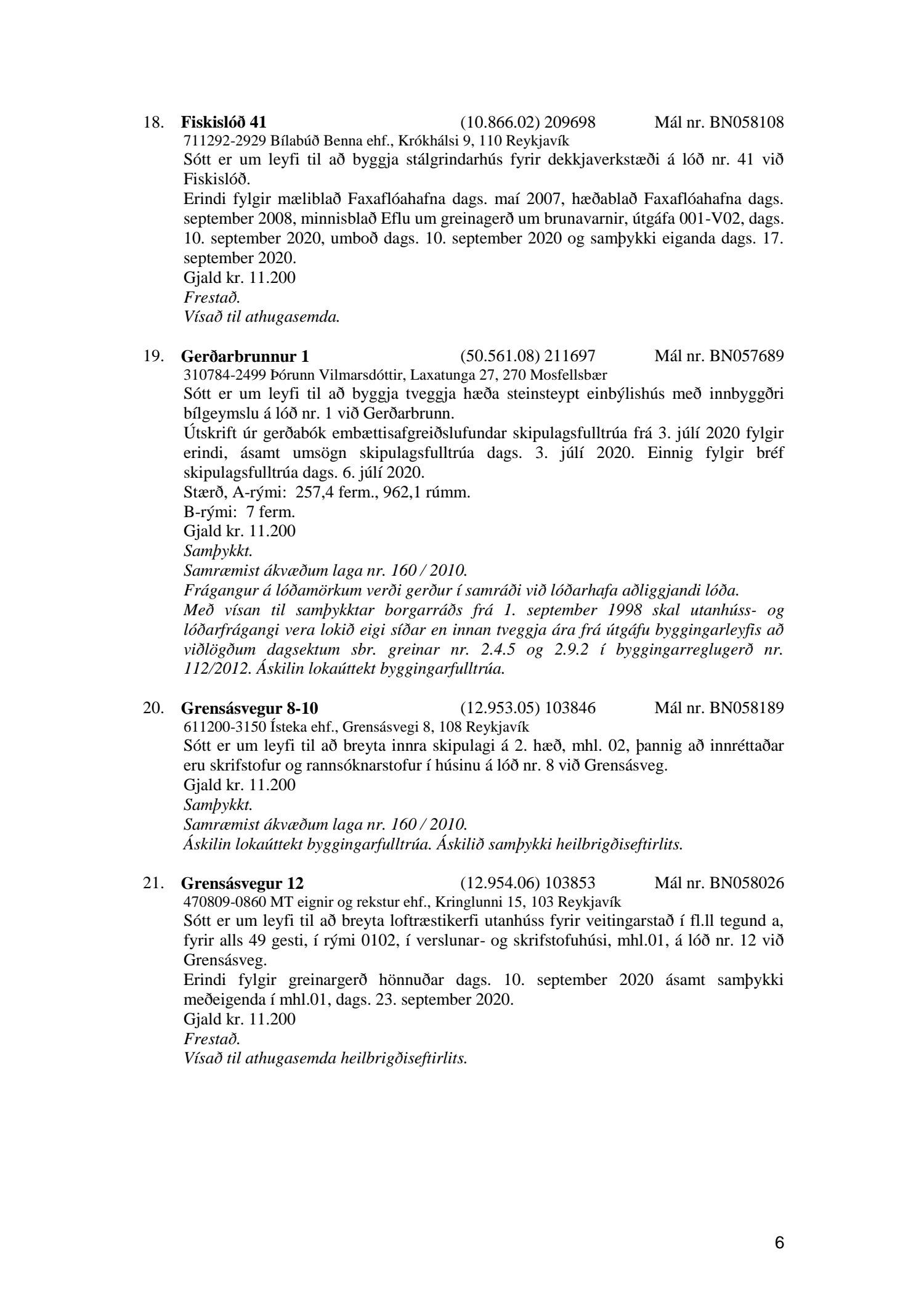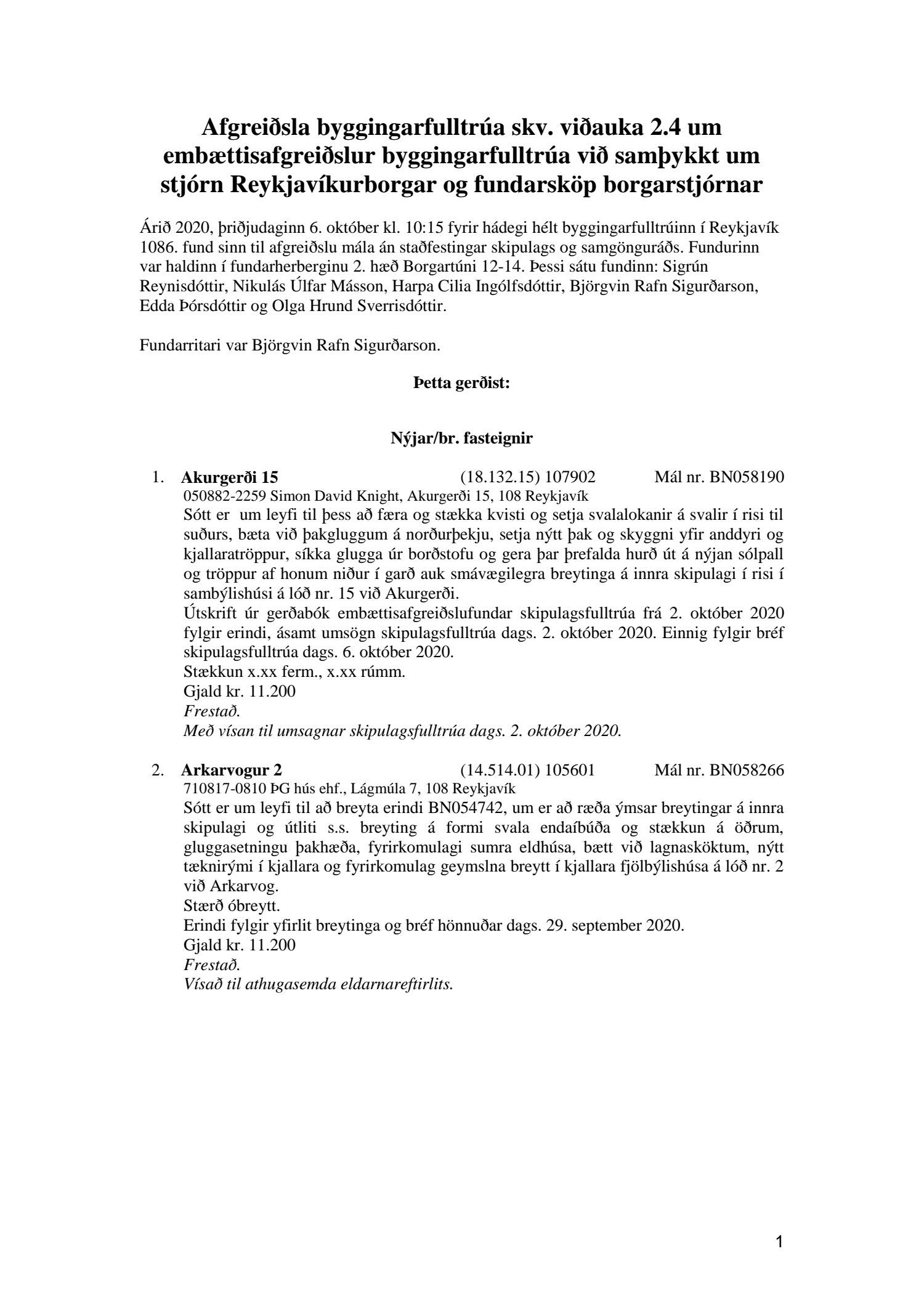 Fylgiskjal með fundargerð þessari er fundargerð afgreiðslufundar byggingarfulltrúa nr. 1086 frá 6. október 2020.