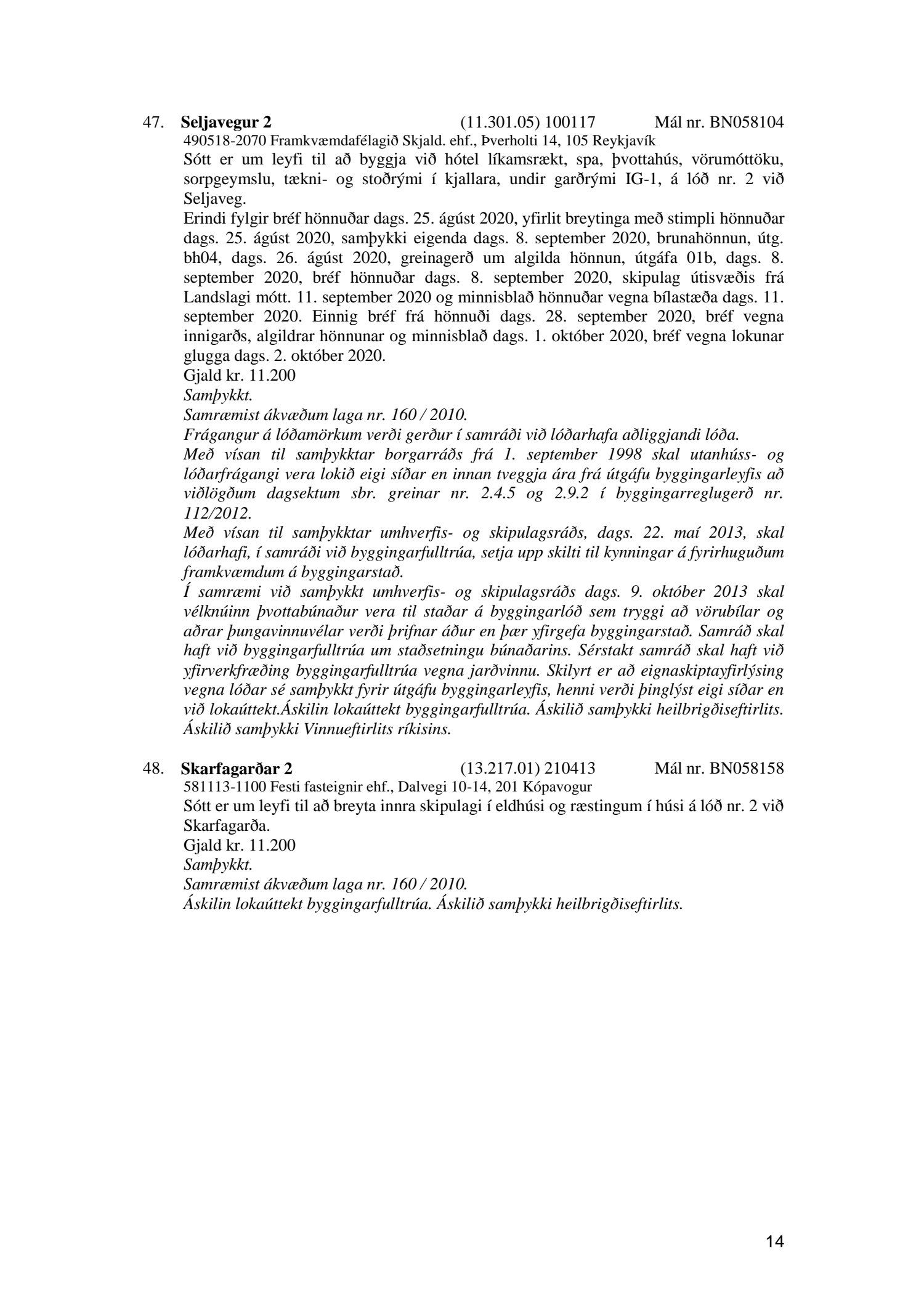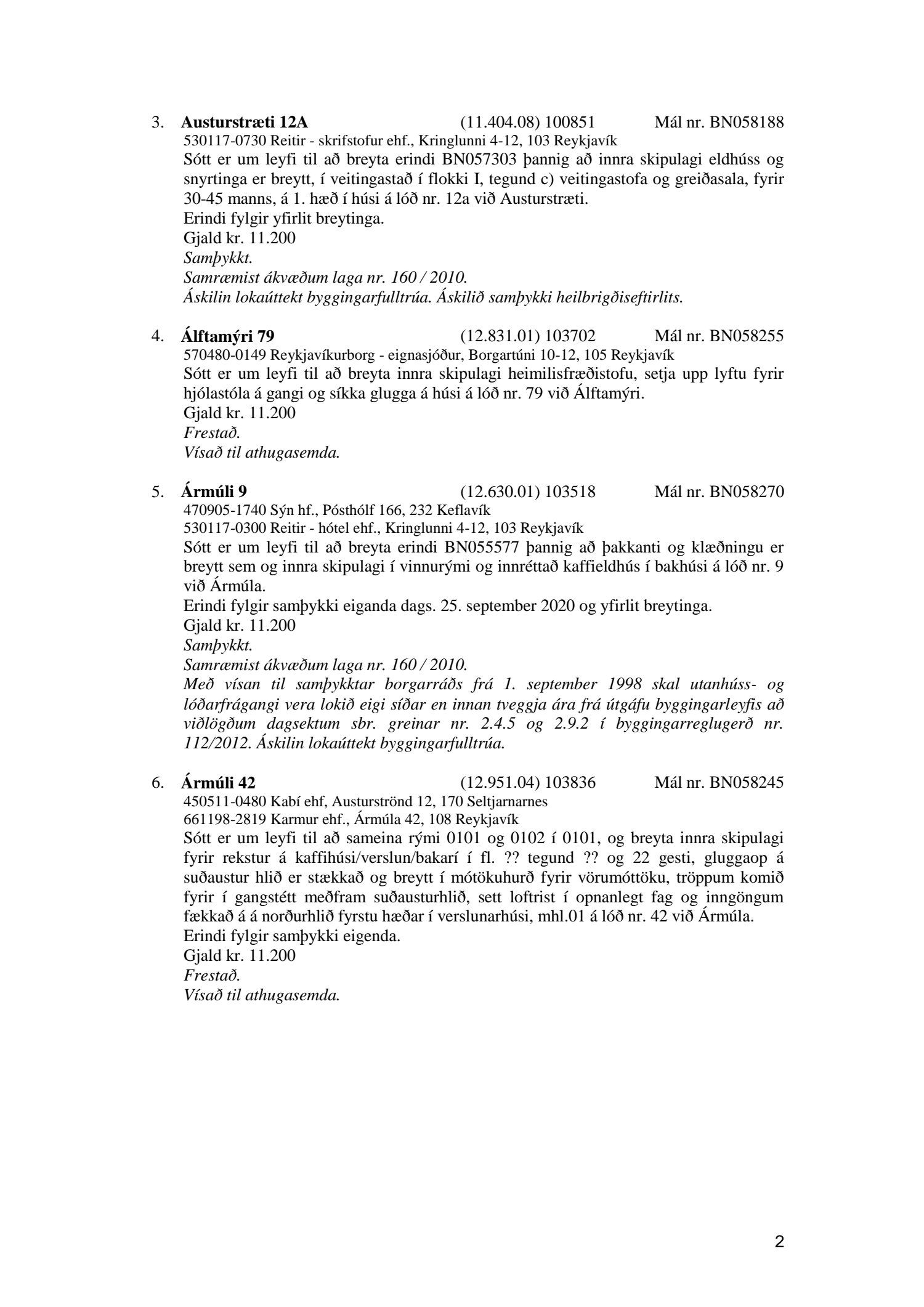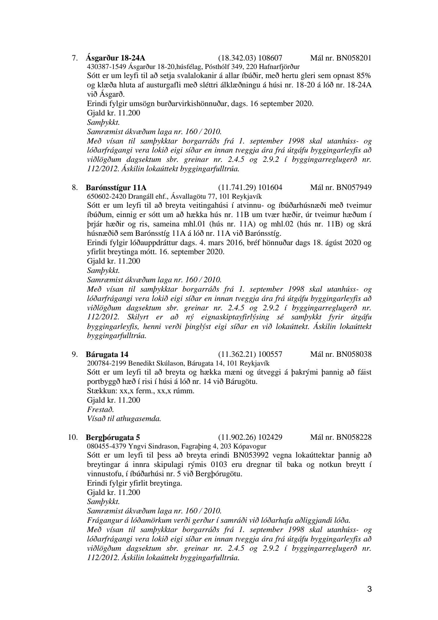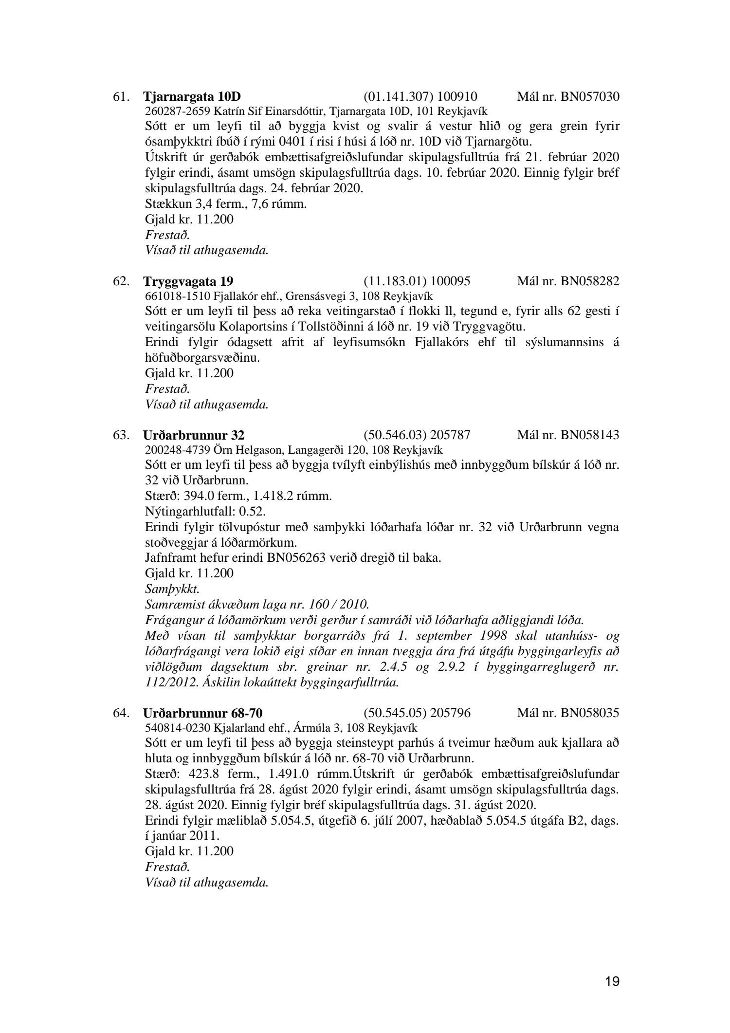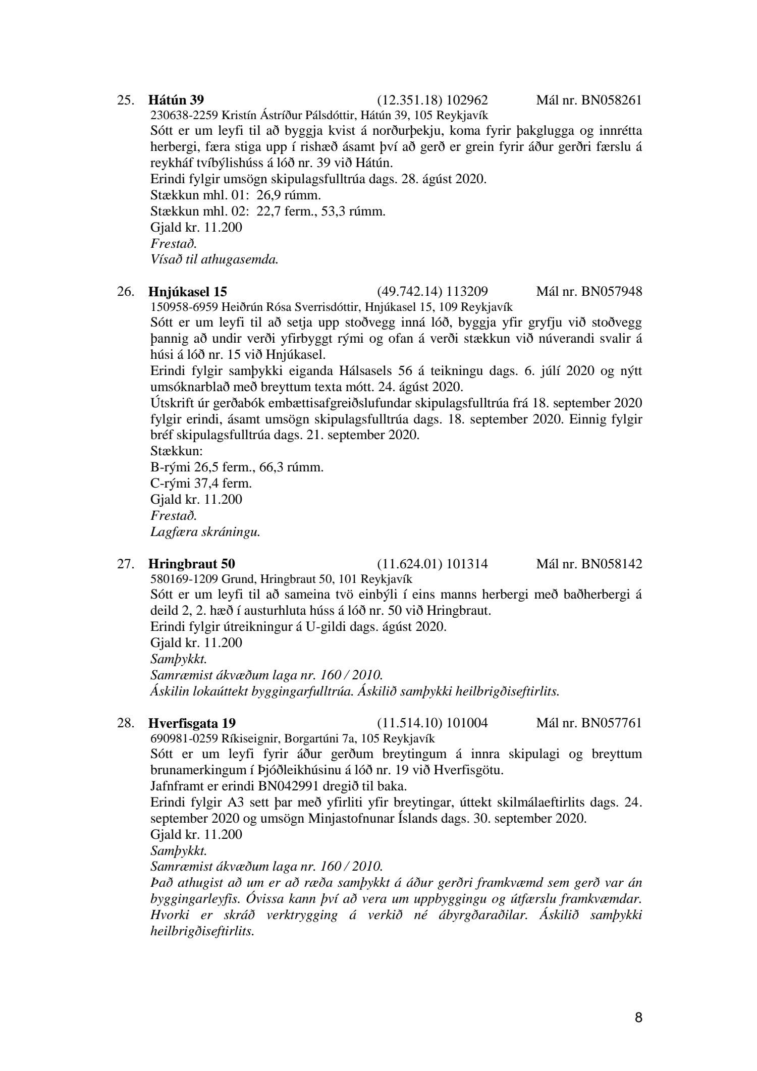 Fylgiskjal með fundargerð þessari er fundargerð afgreiðslufundar byggingarfulltrúa nr. 1086 frá 6. október 2020.