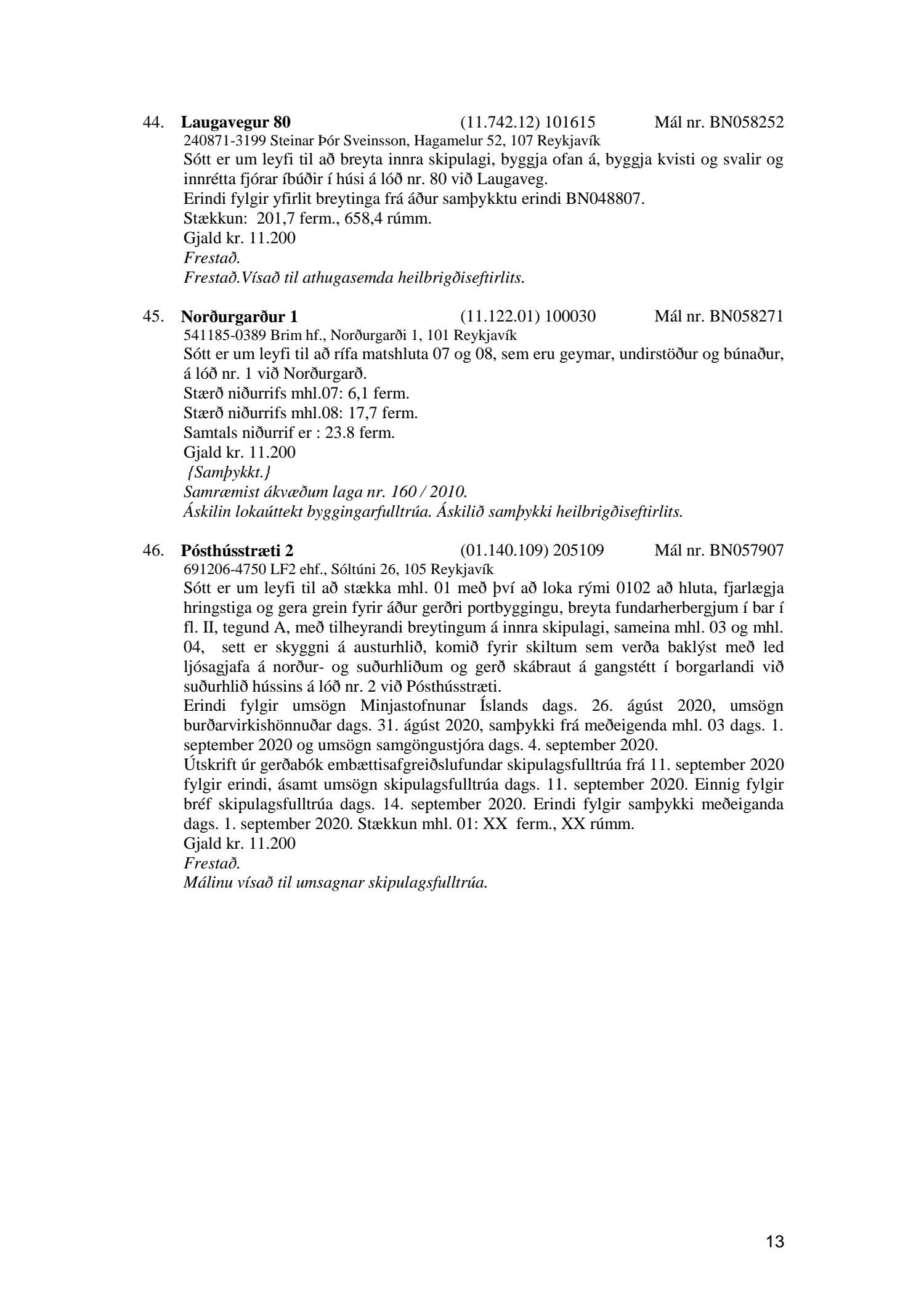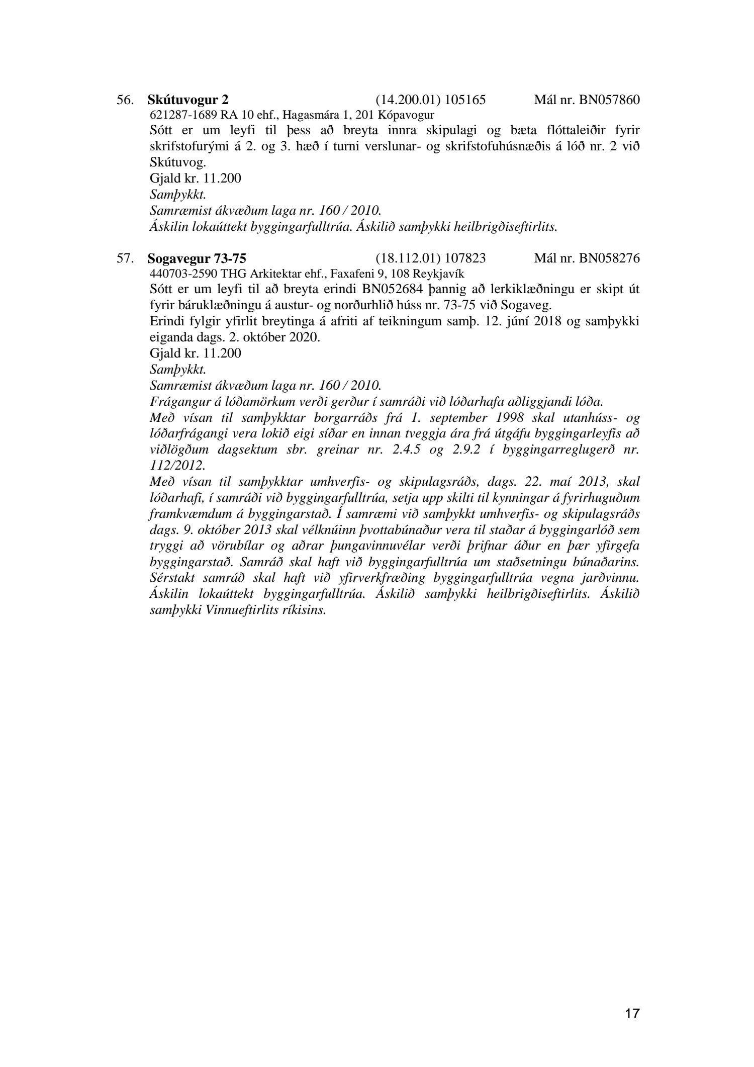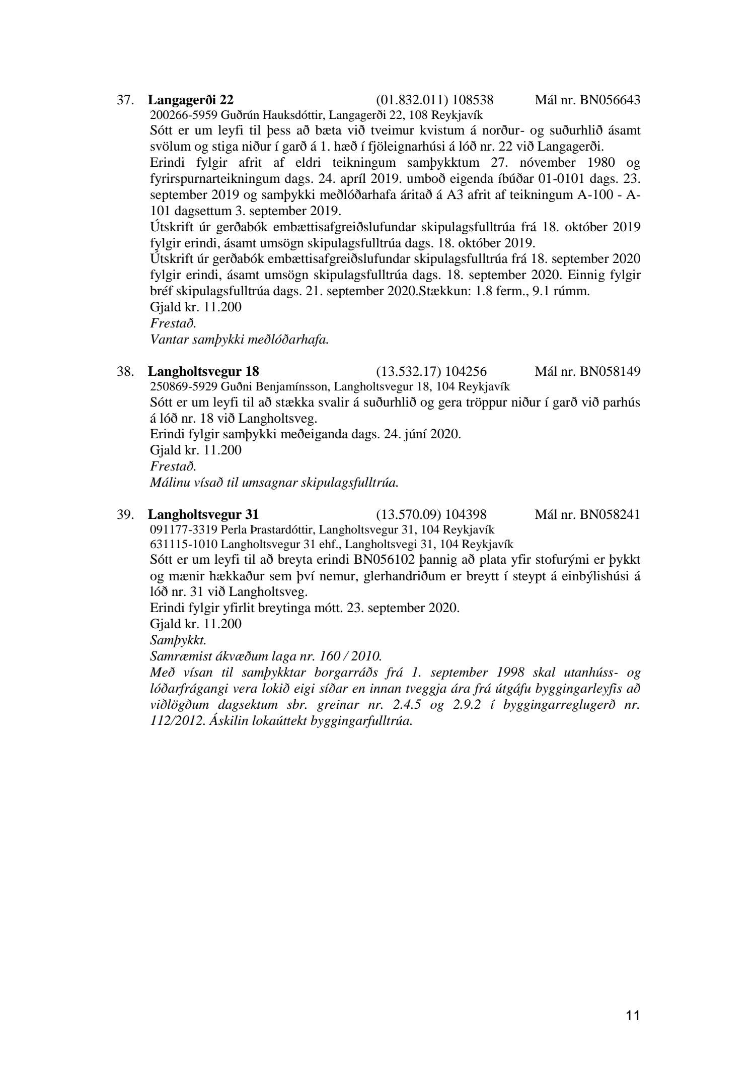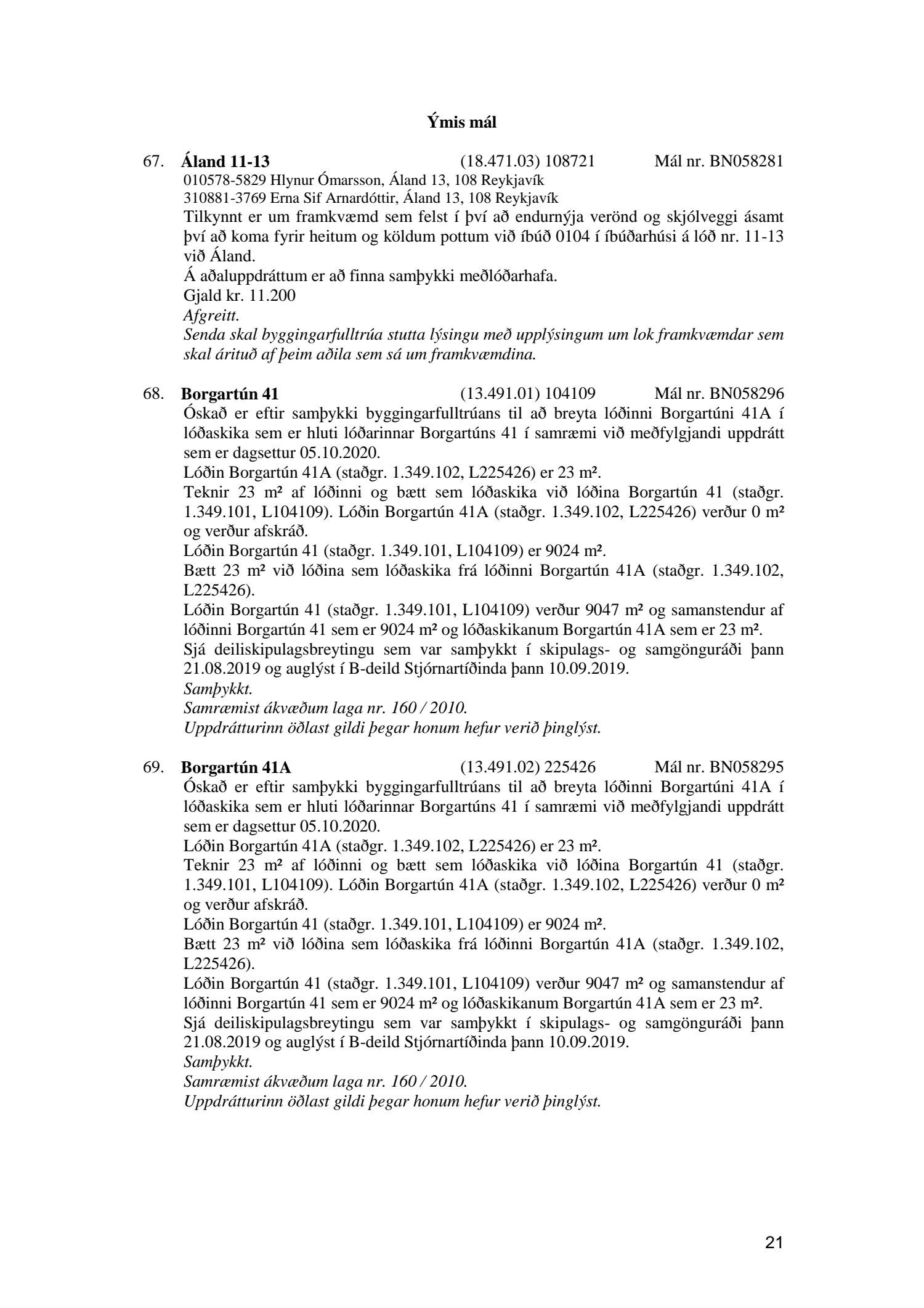 Fylgiskjal með fundargerð þessari er fundargerð afgreiðslufundar byggingarfulltrúa nr. 1086 frá 6. október 2020.