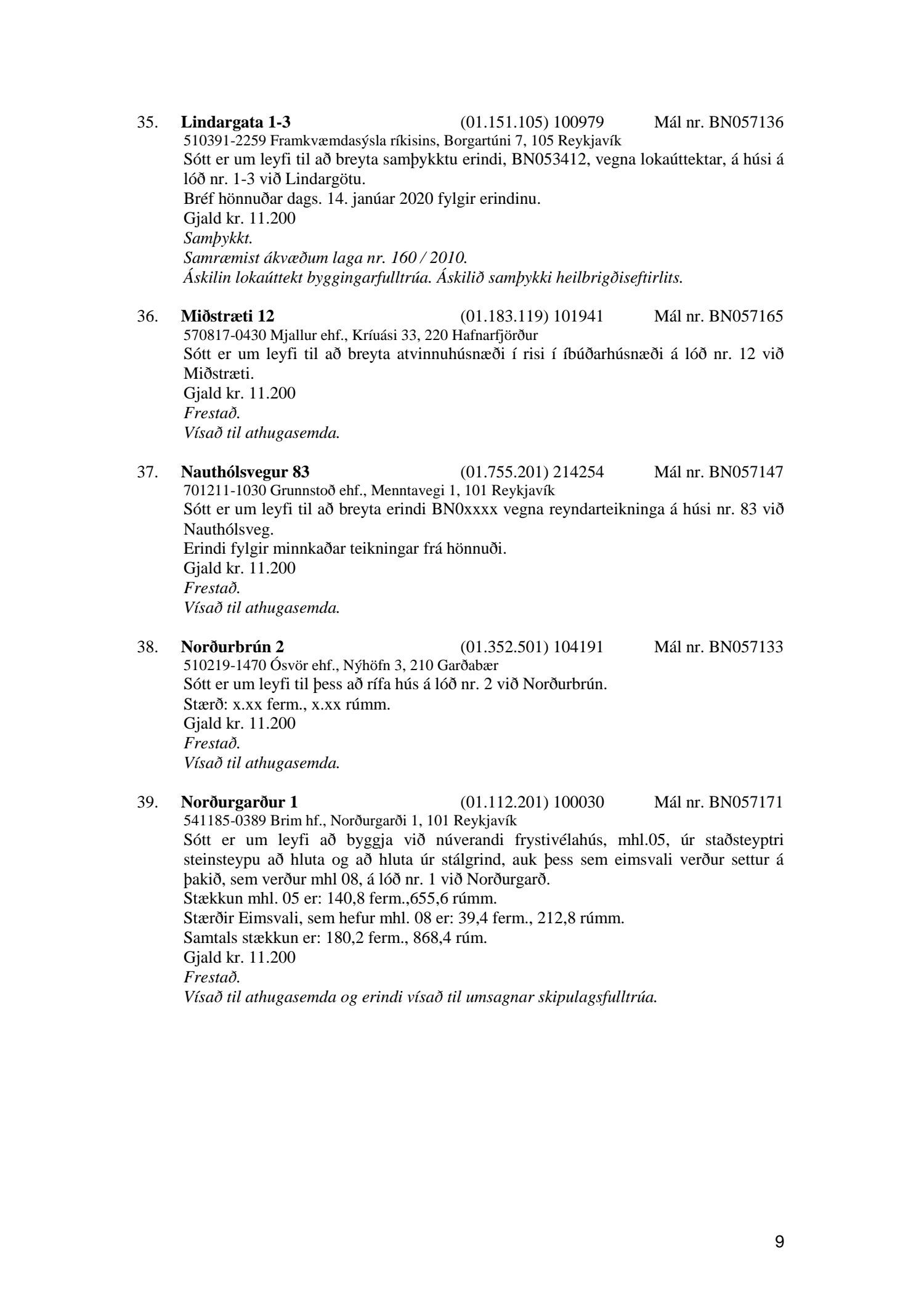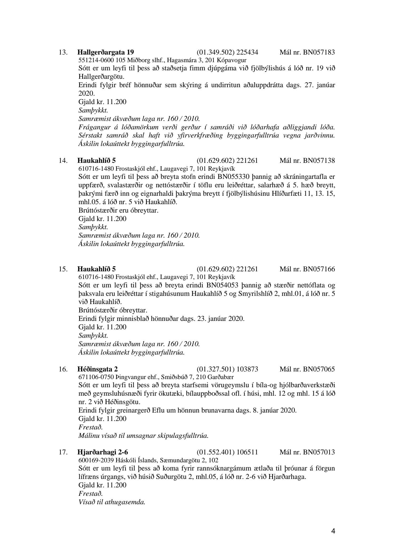 Afgreiðslufundur byggingarfulltrúa, fundargerð