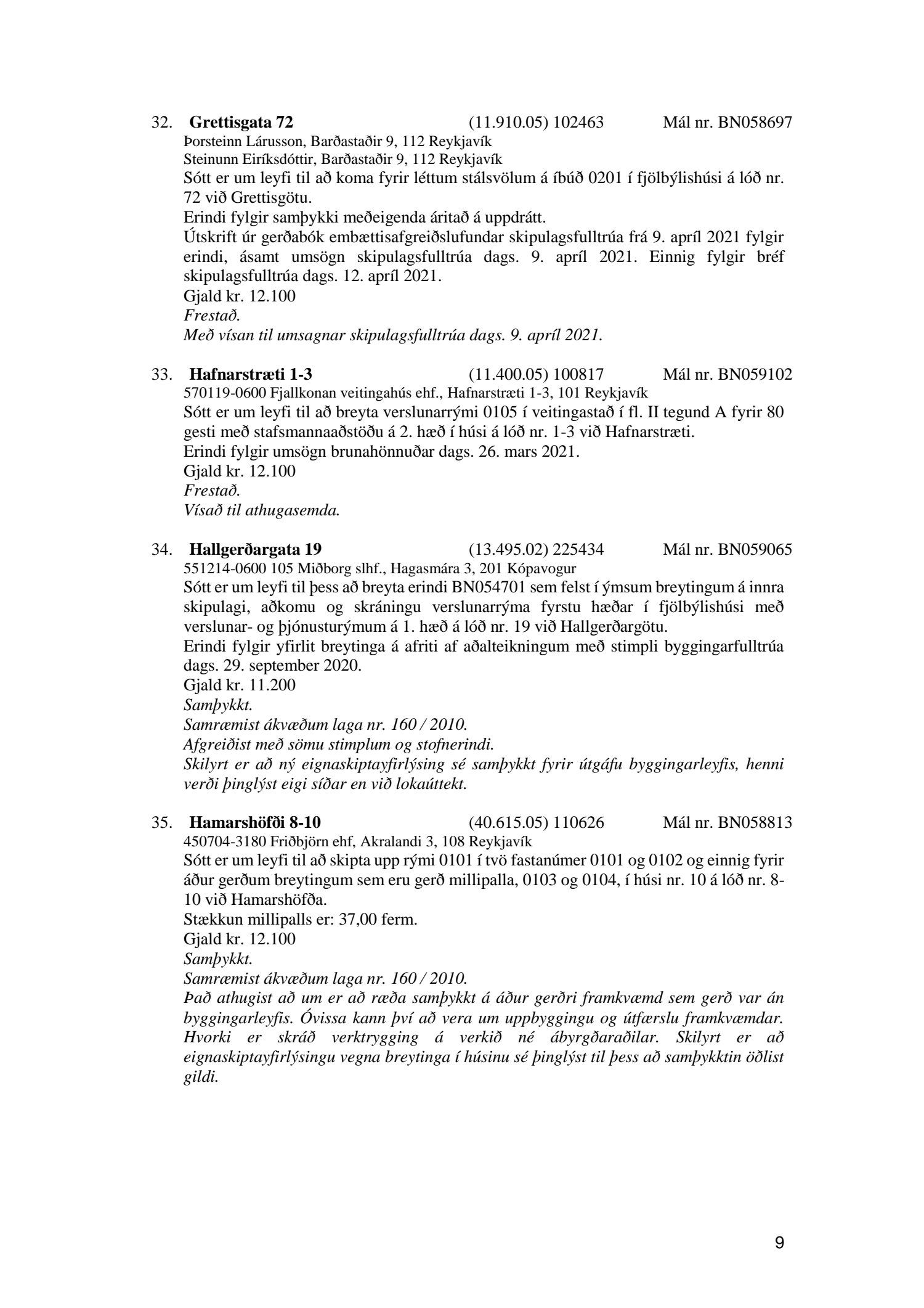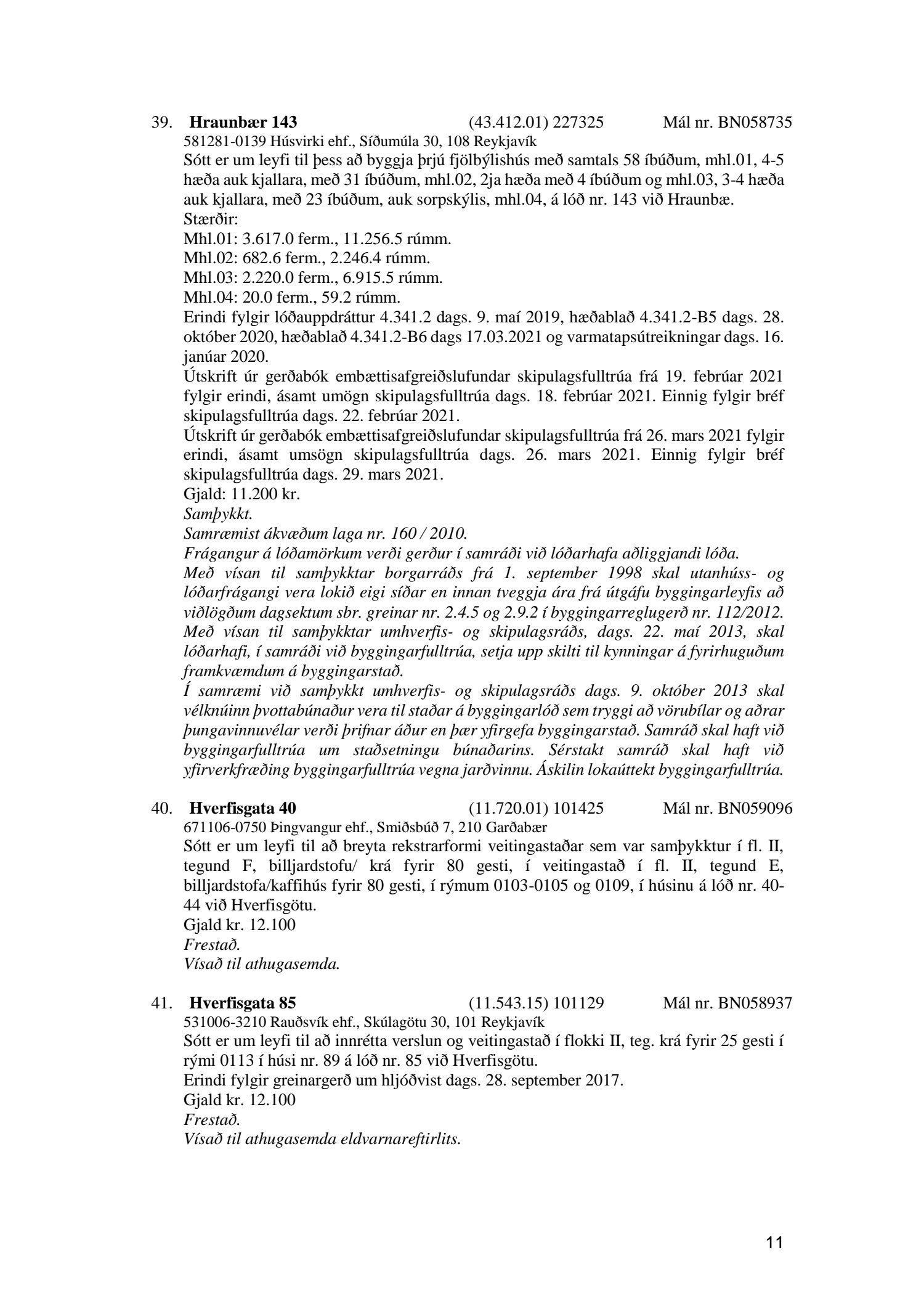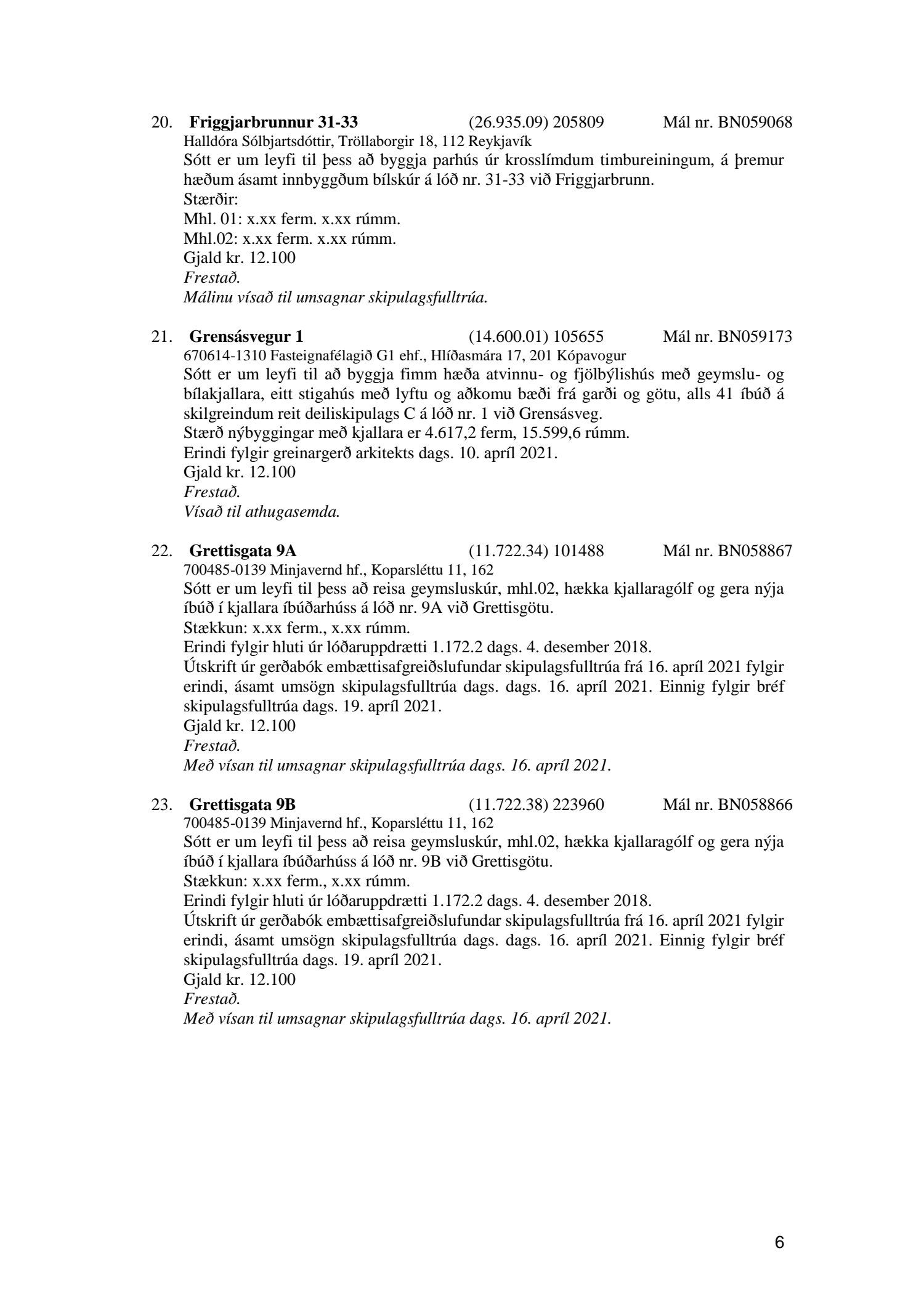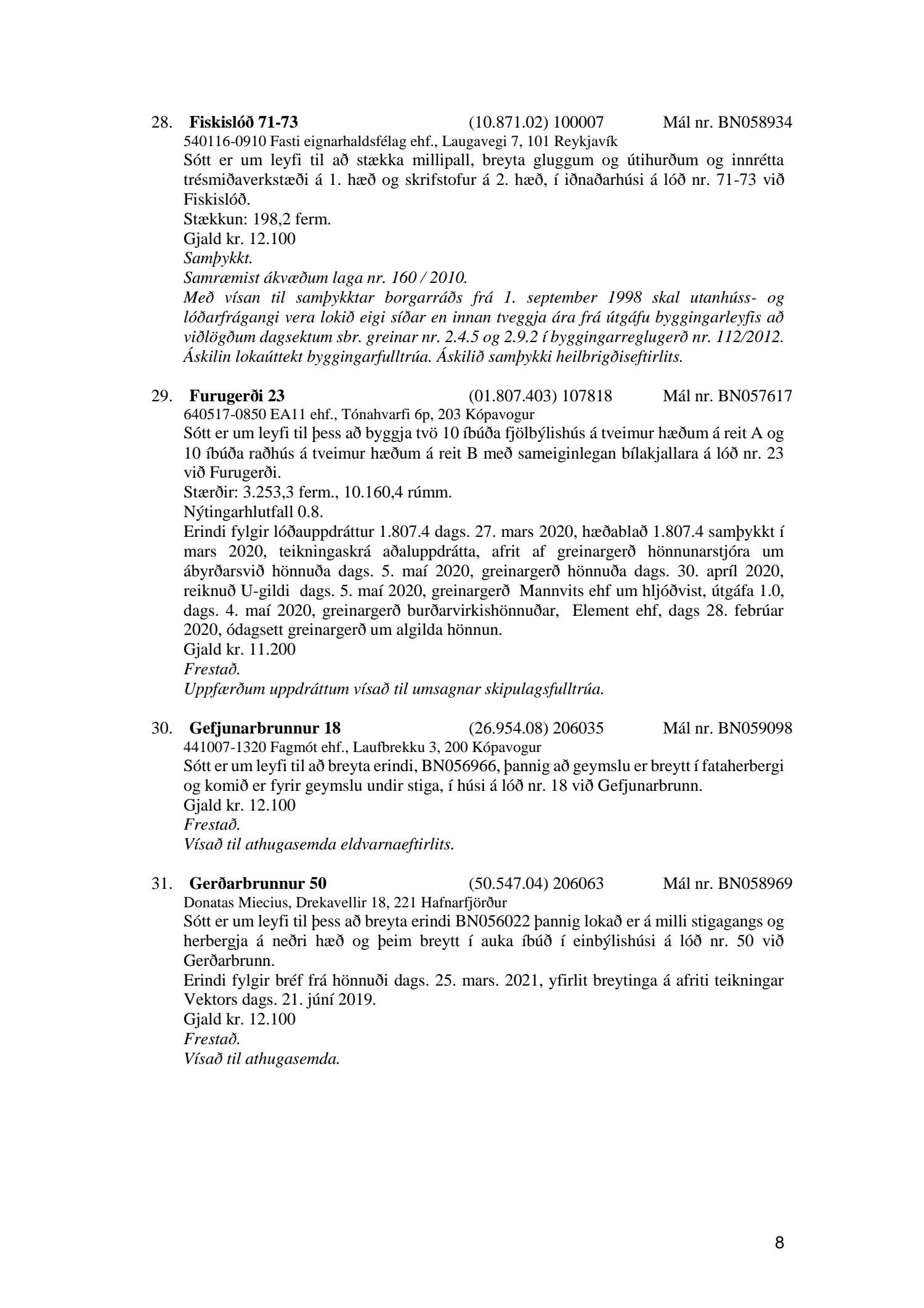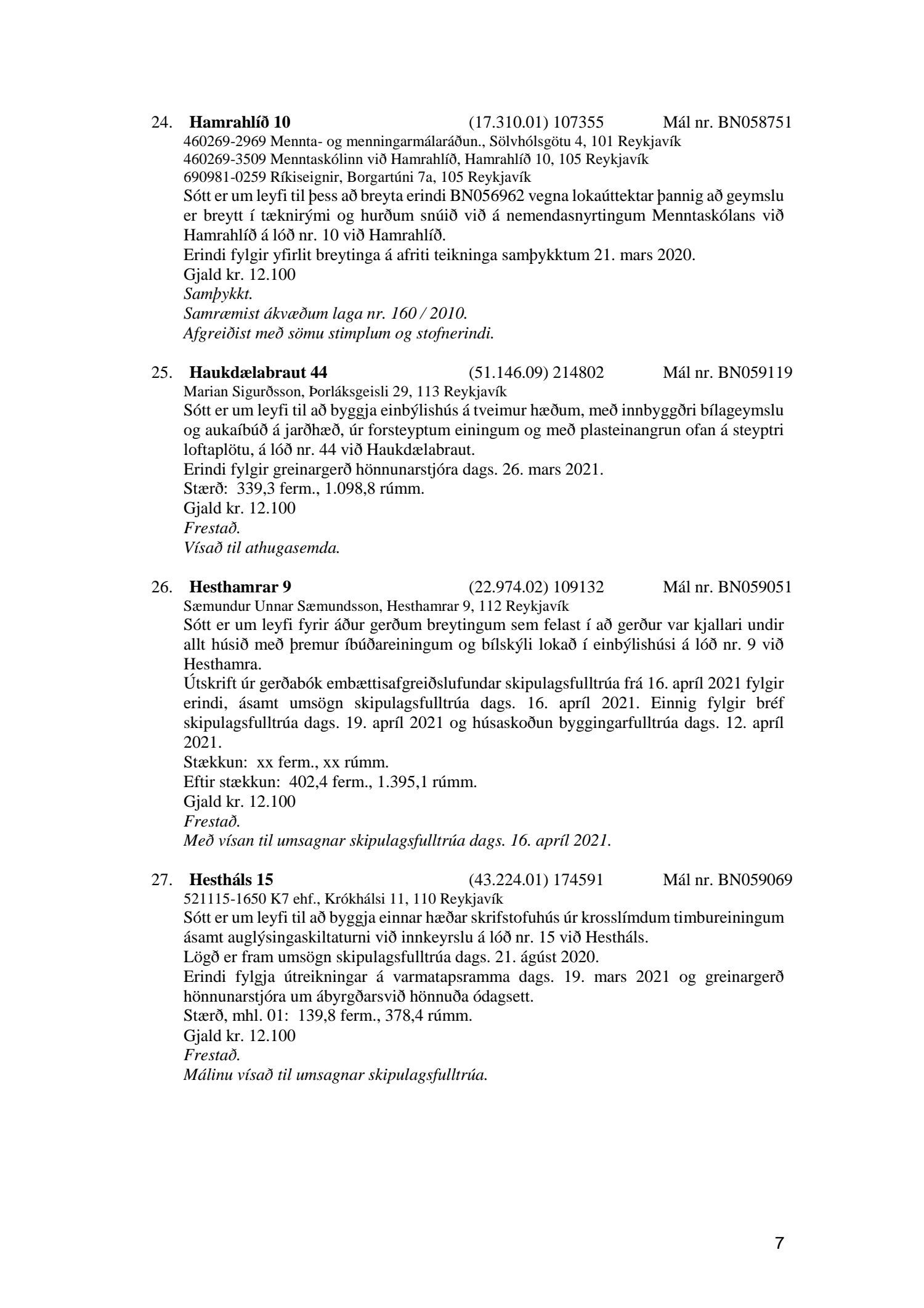 Fylgiskjal með fundargerð þessari er fundargerð afgreiðslufundar byggingarfulltrúa nr. 1110 frá 13. apríl 2021 og nr. 1111 frá 20. apríl 2021.