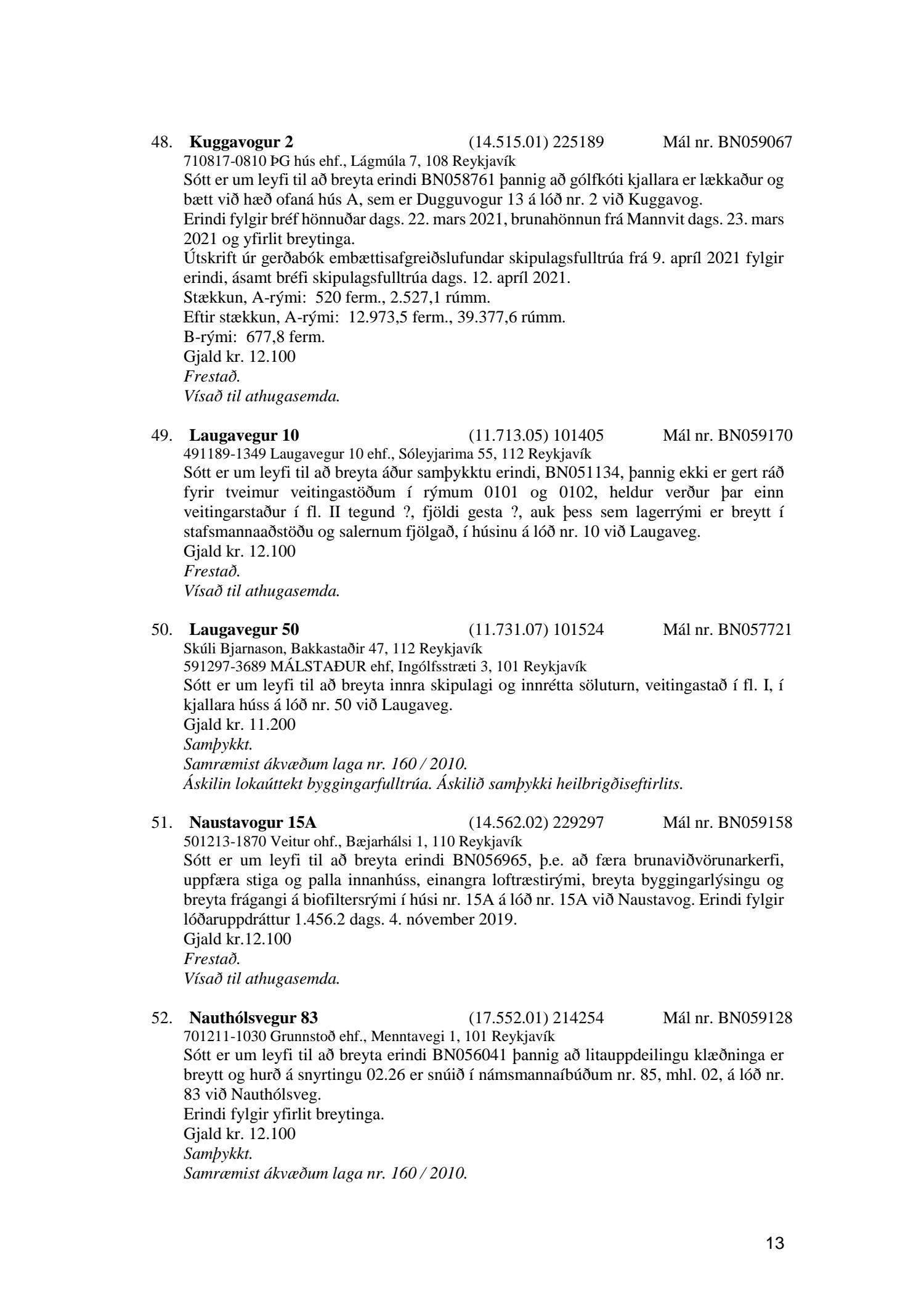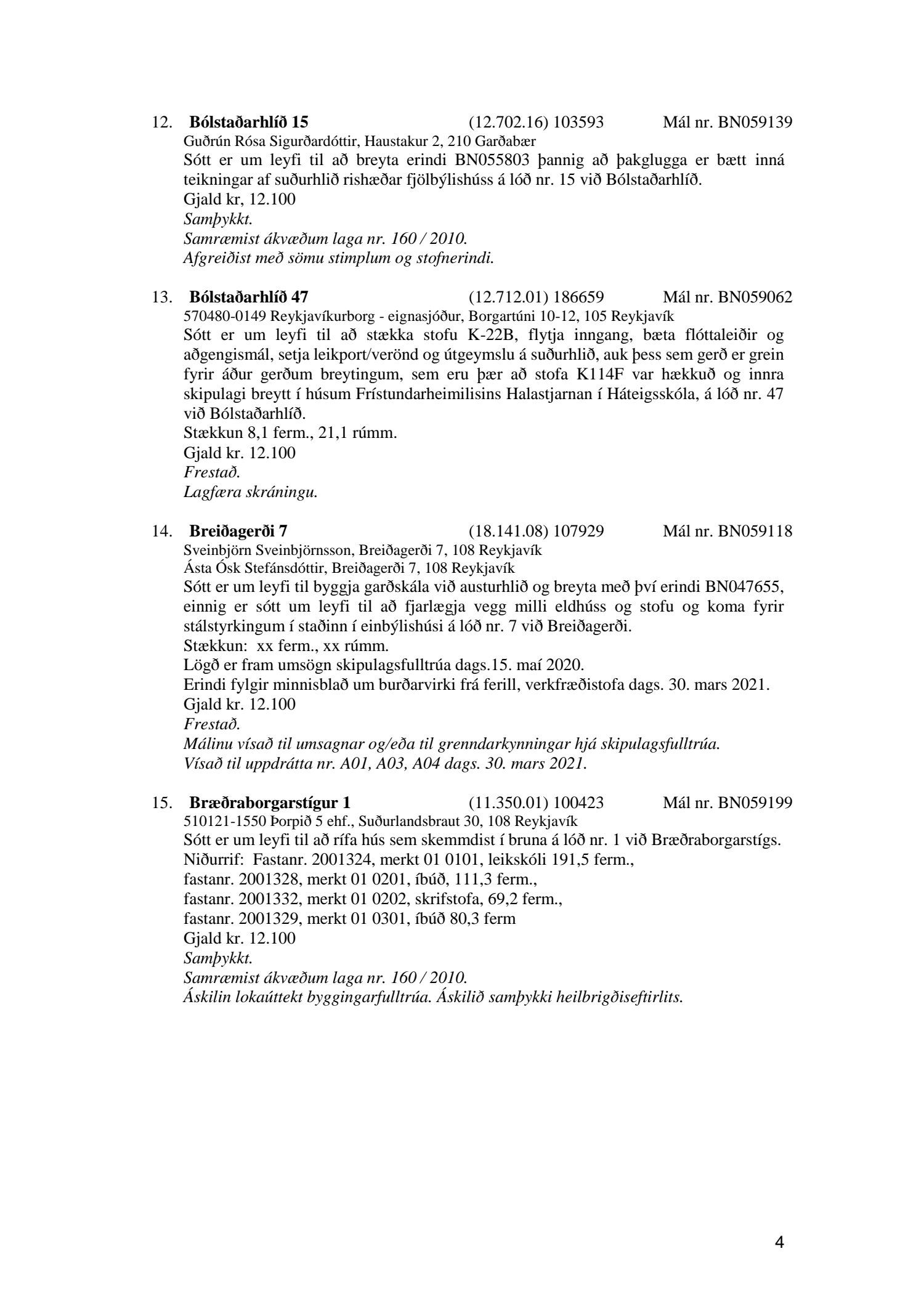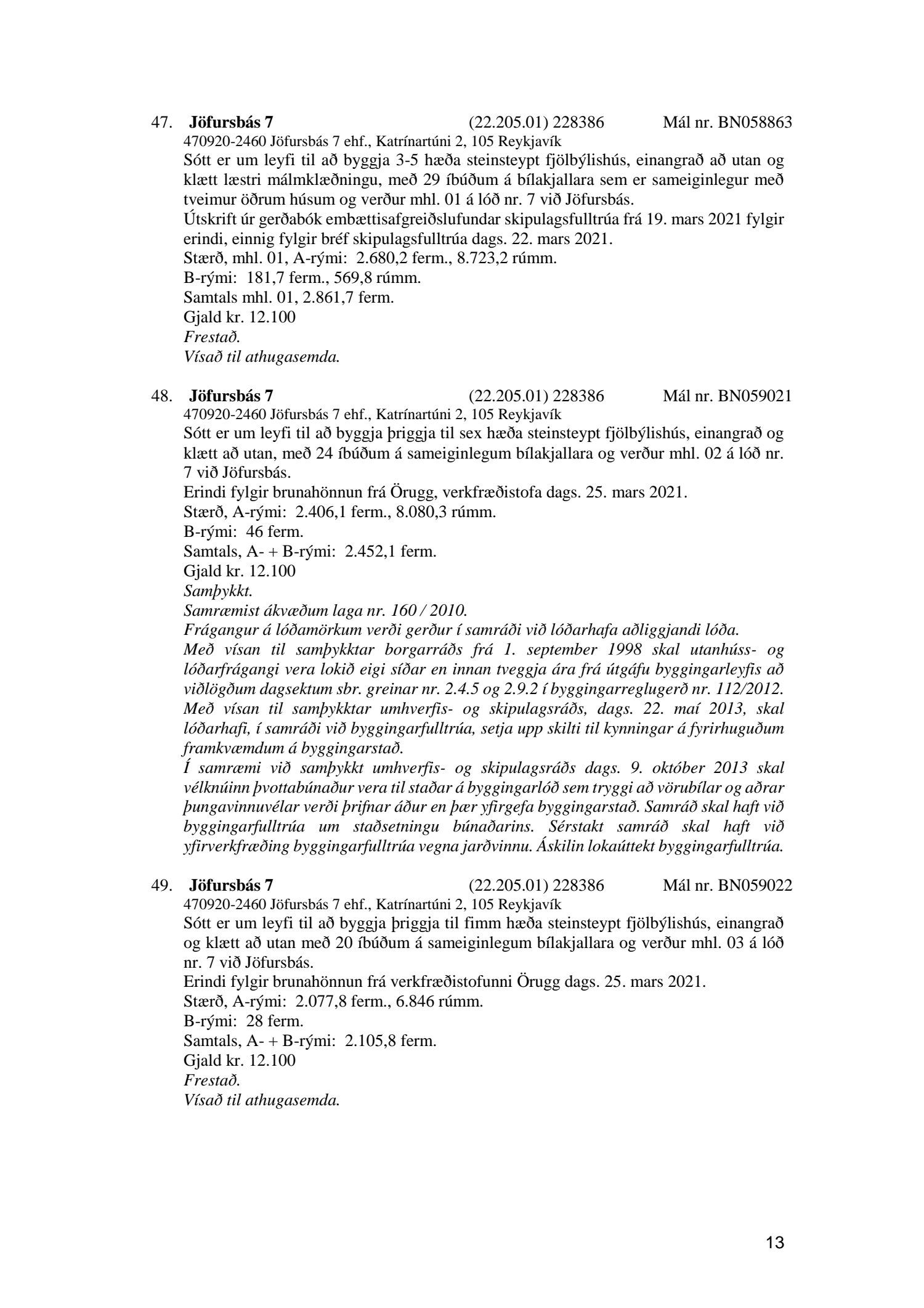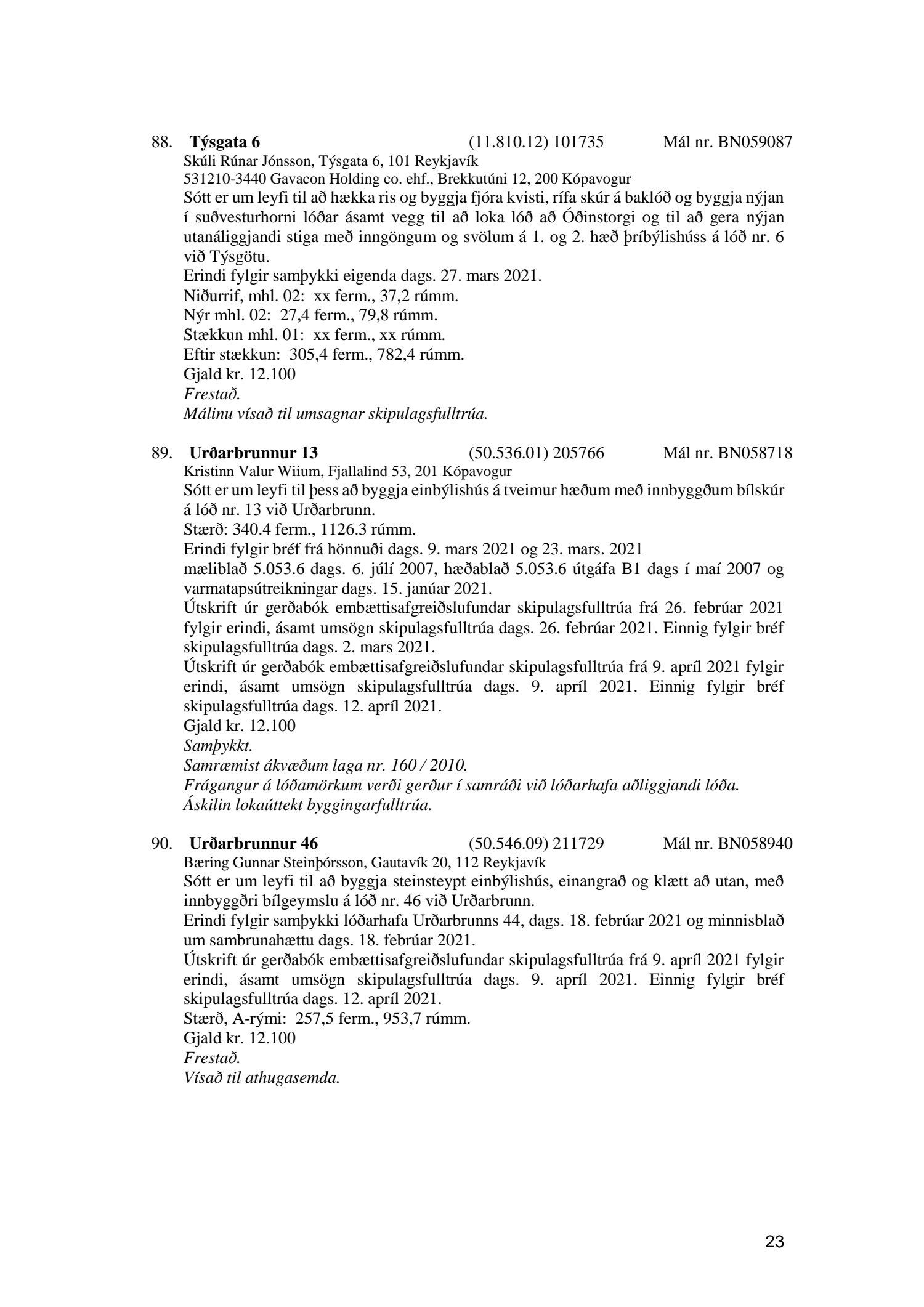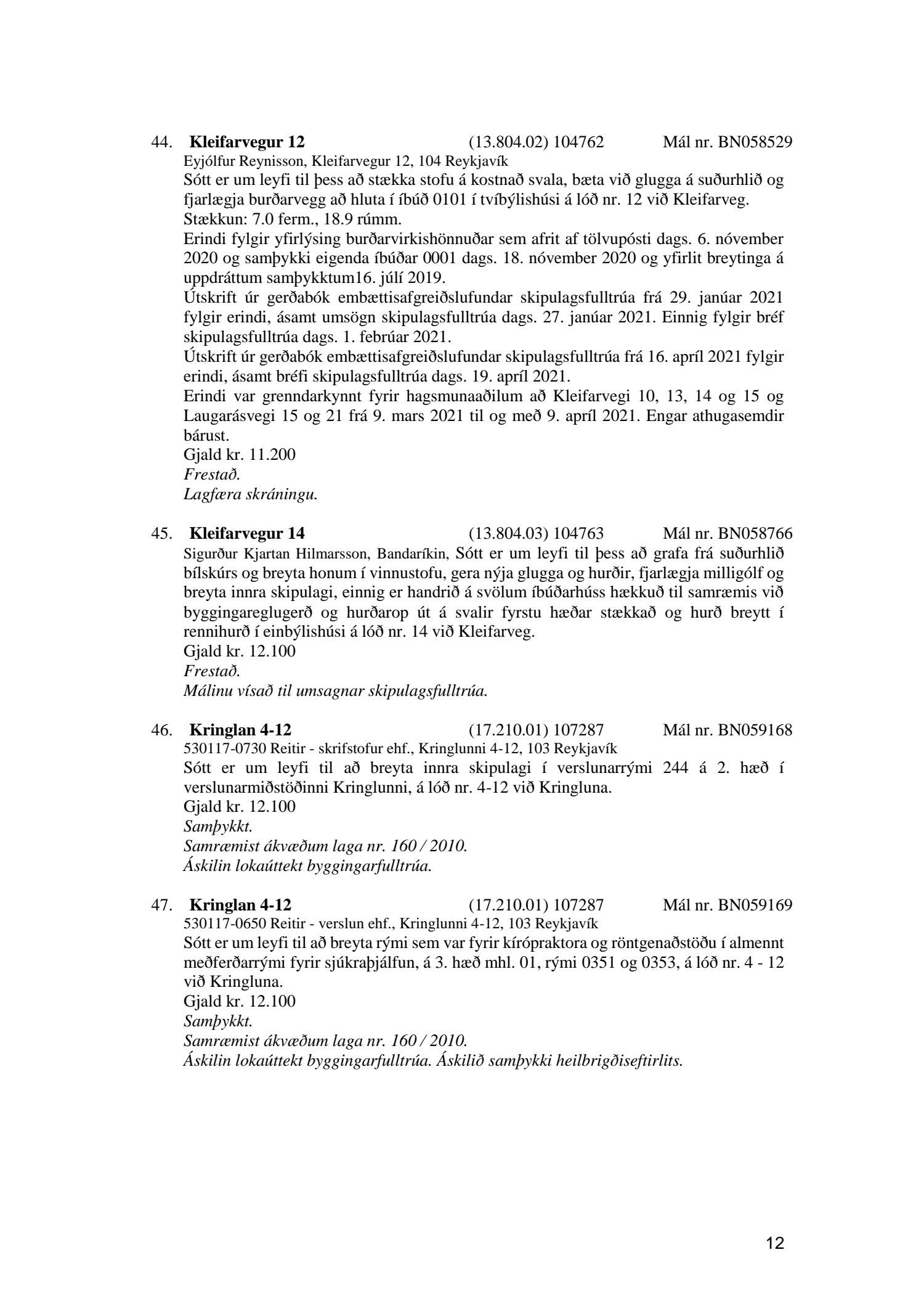 Fylgiskjal með fundargerð þessari er fundargerð afgreiðslufundar byggingarfulltrúa nr. 1110 frá 13. apríl 2021 og nr. 1111 frá 20. apríl 2021.