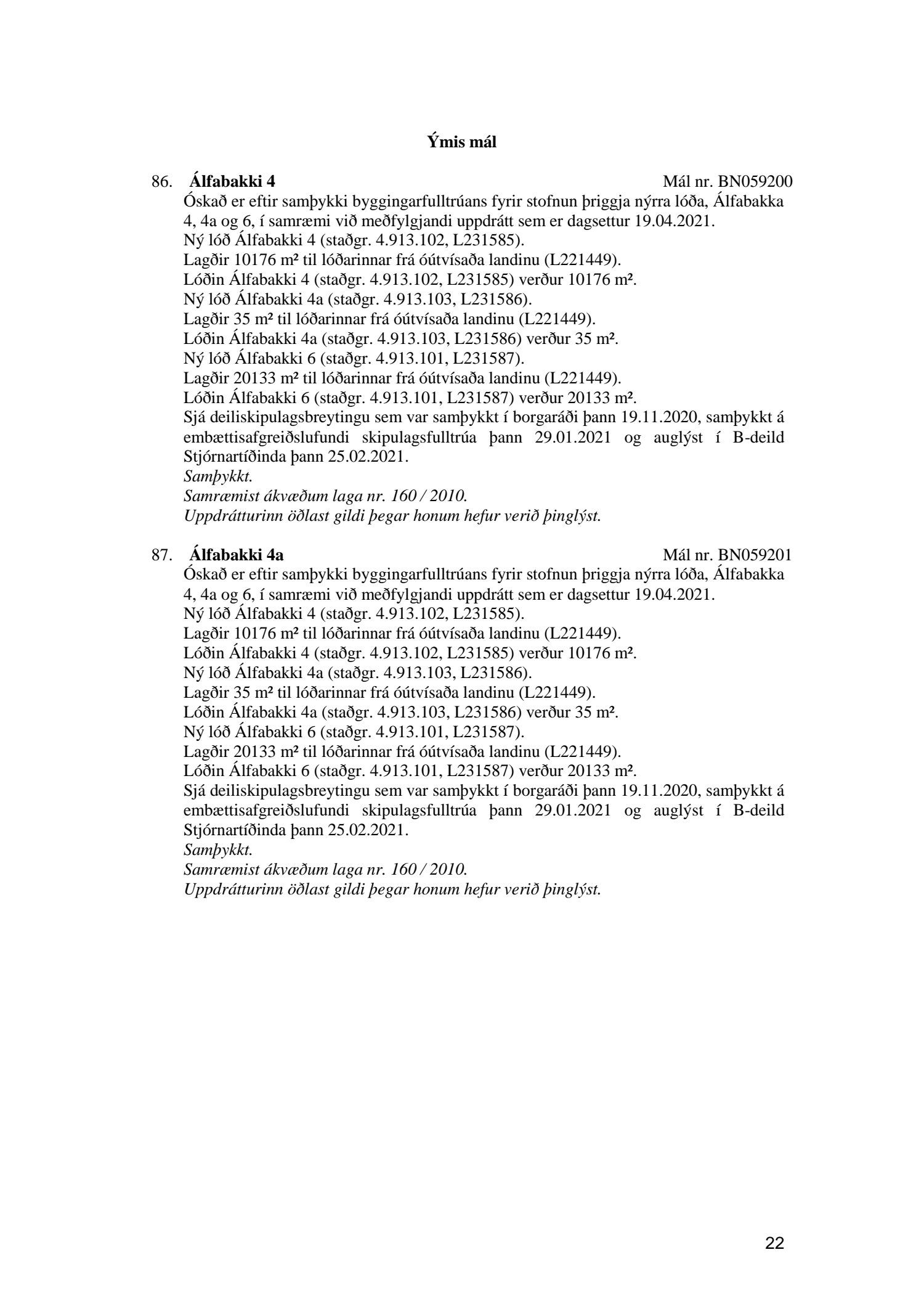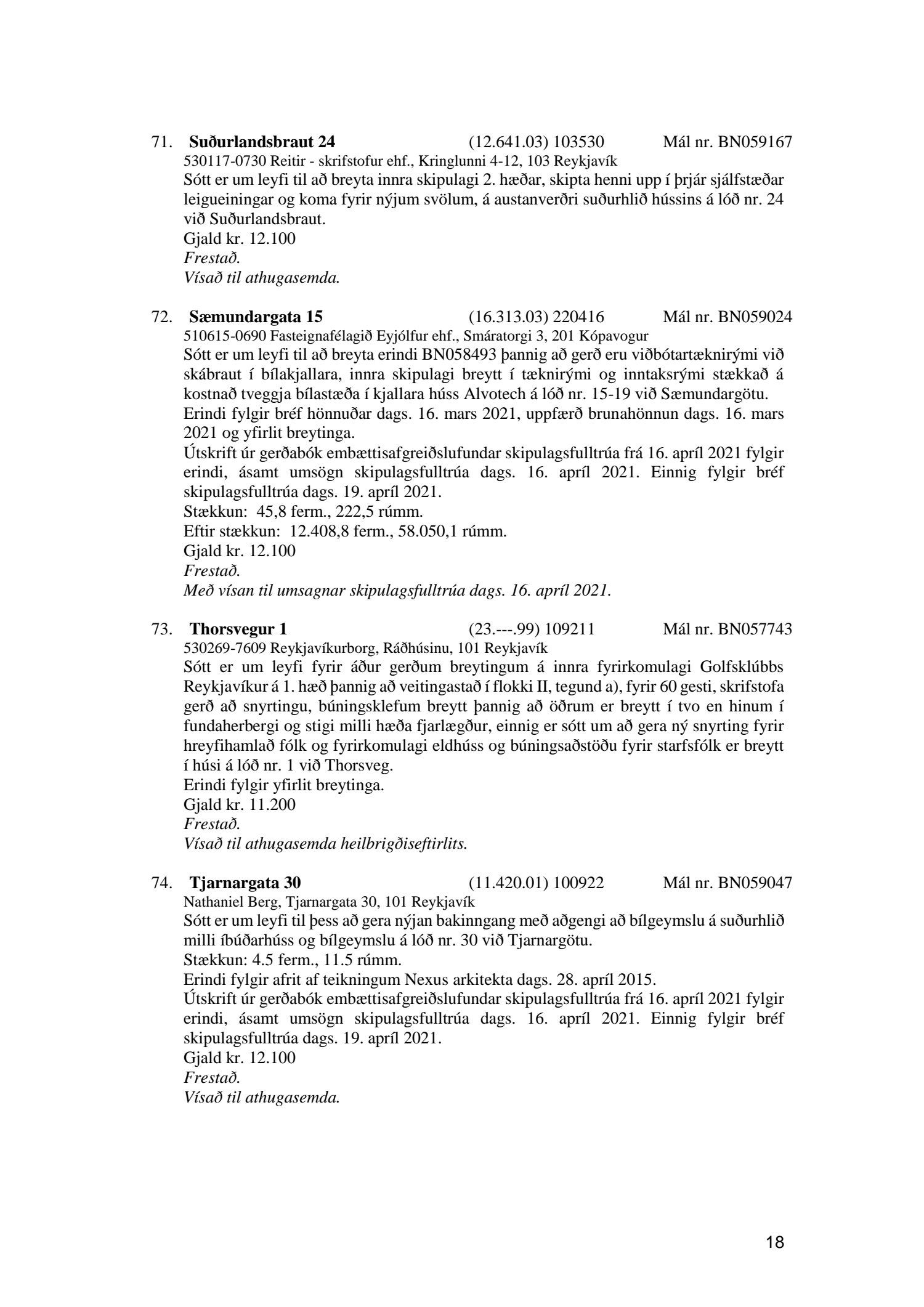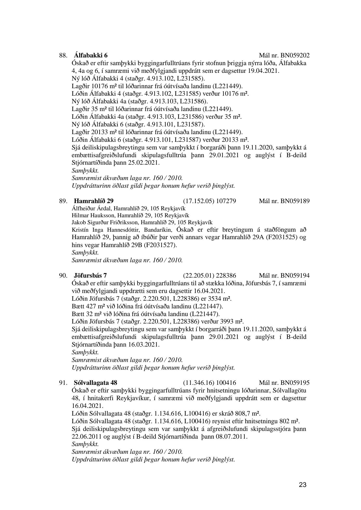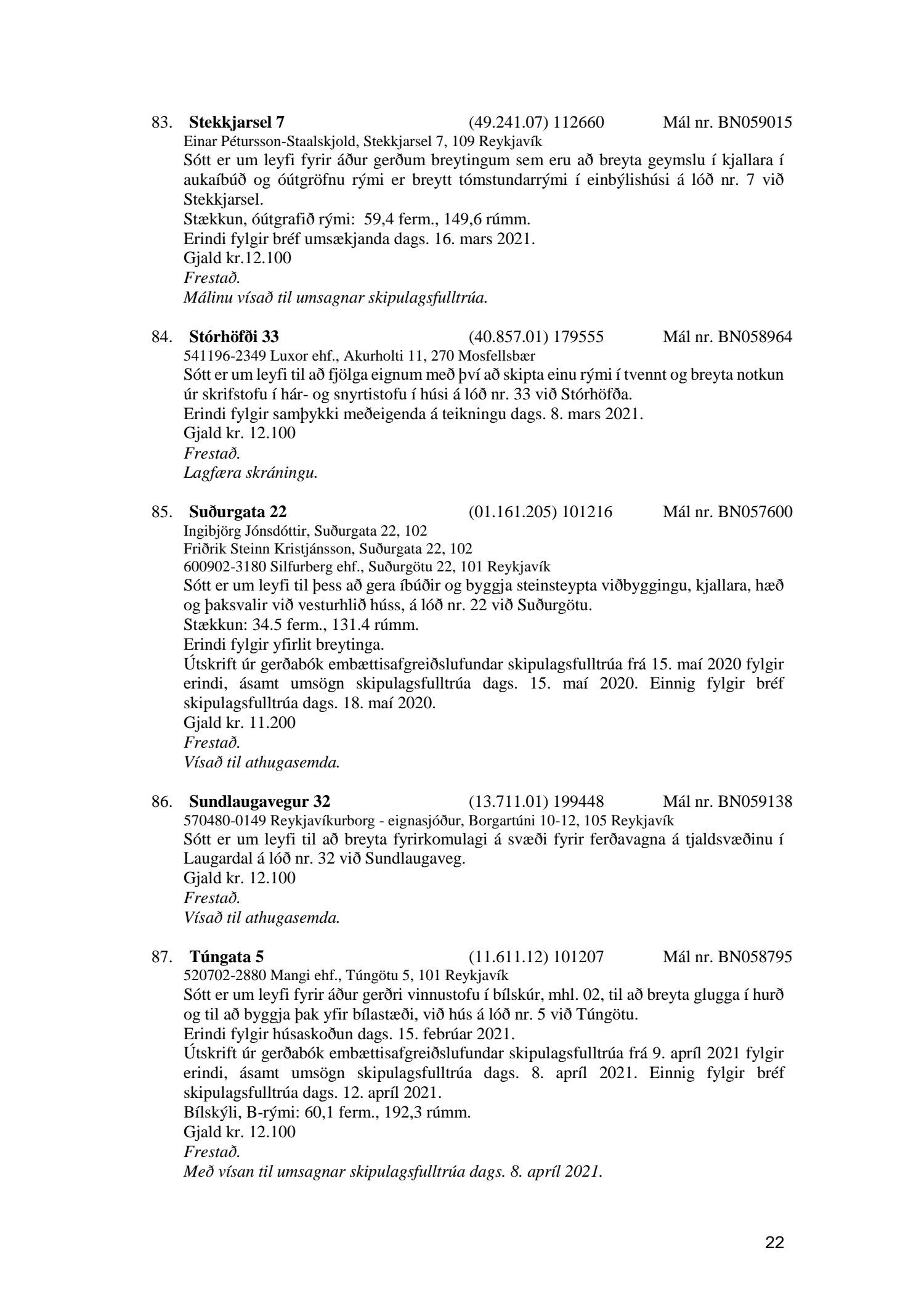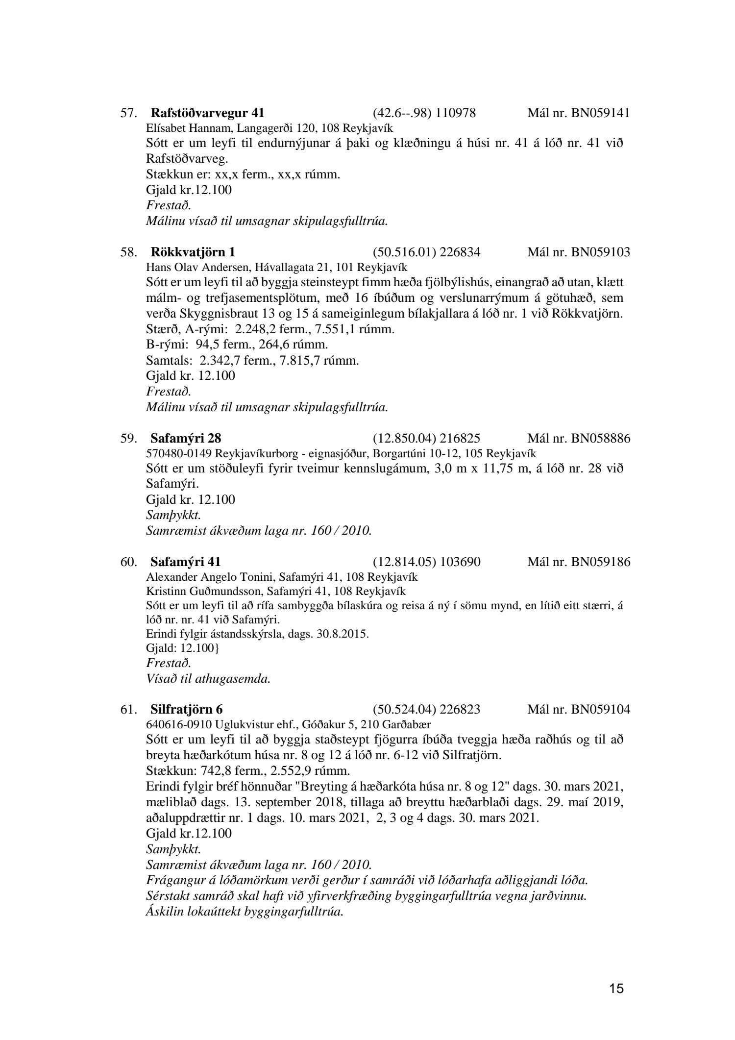 Fylgiskjal með fundargerð þessari er fundargerð afgreiðslufundar byggingarfulltrúa nr. 1110 frá 13. apríl 2021 og nr. 1111 frá 20. apríl 2021.