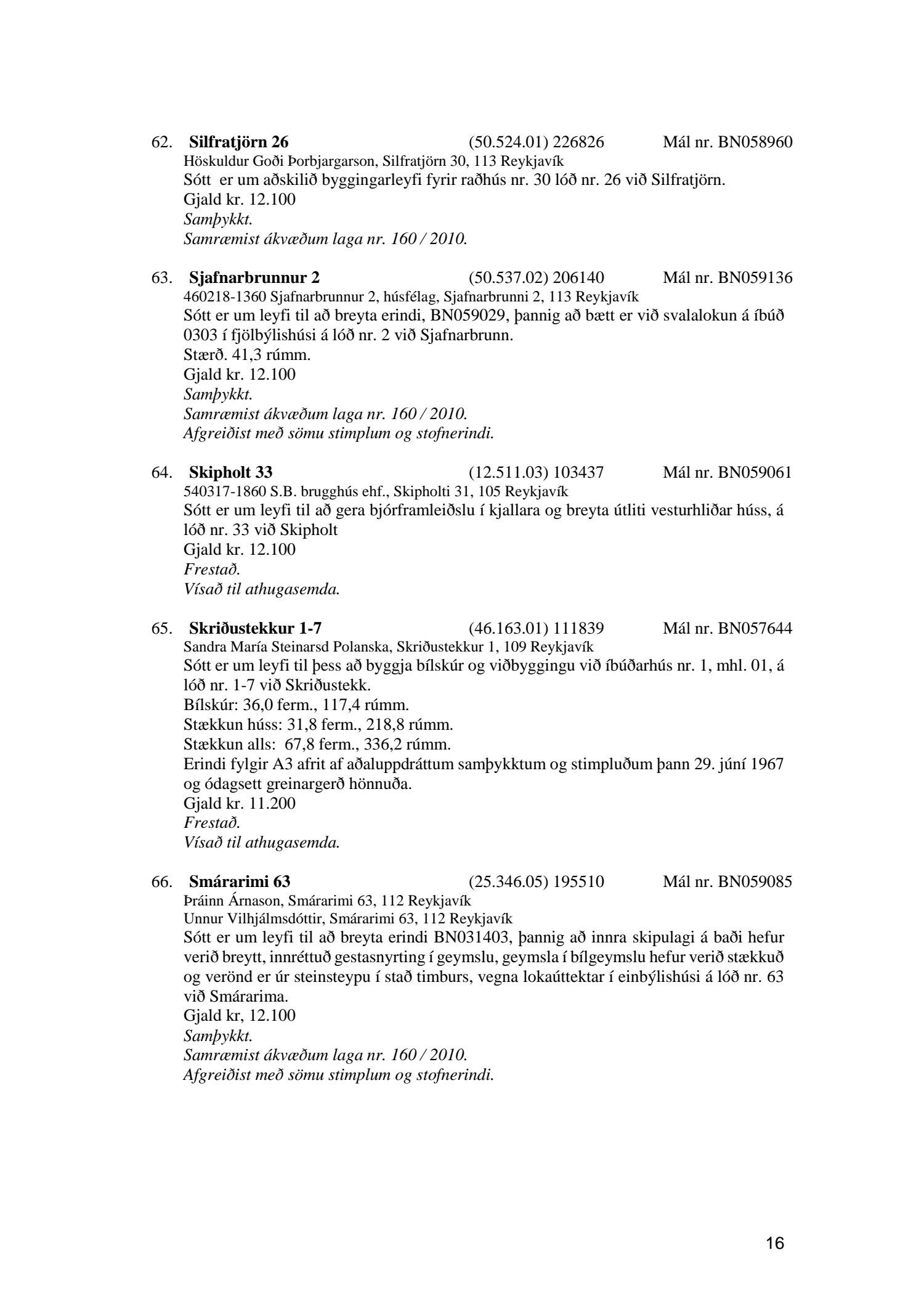 Umhverfis- og skipulagsráð nr. 66
