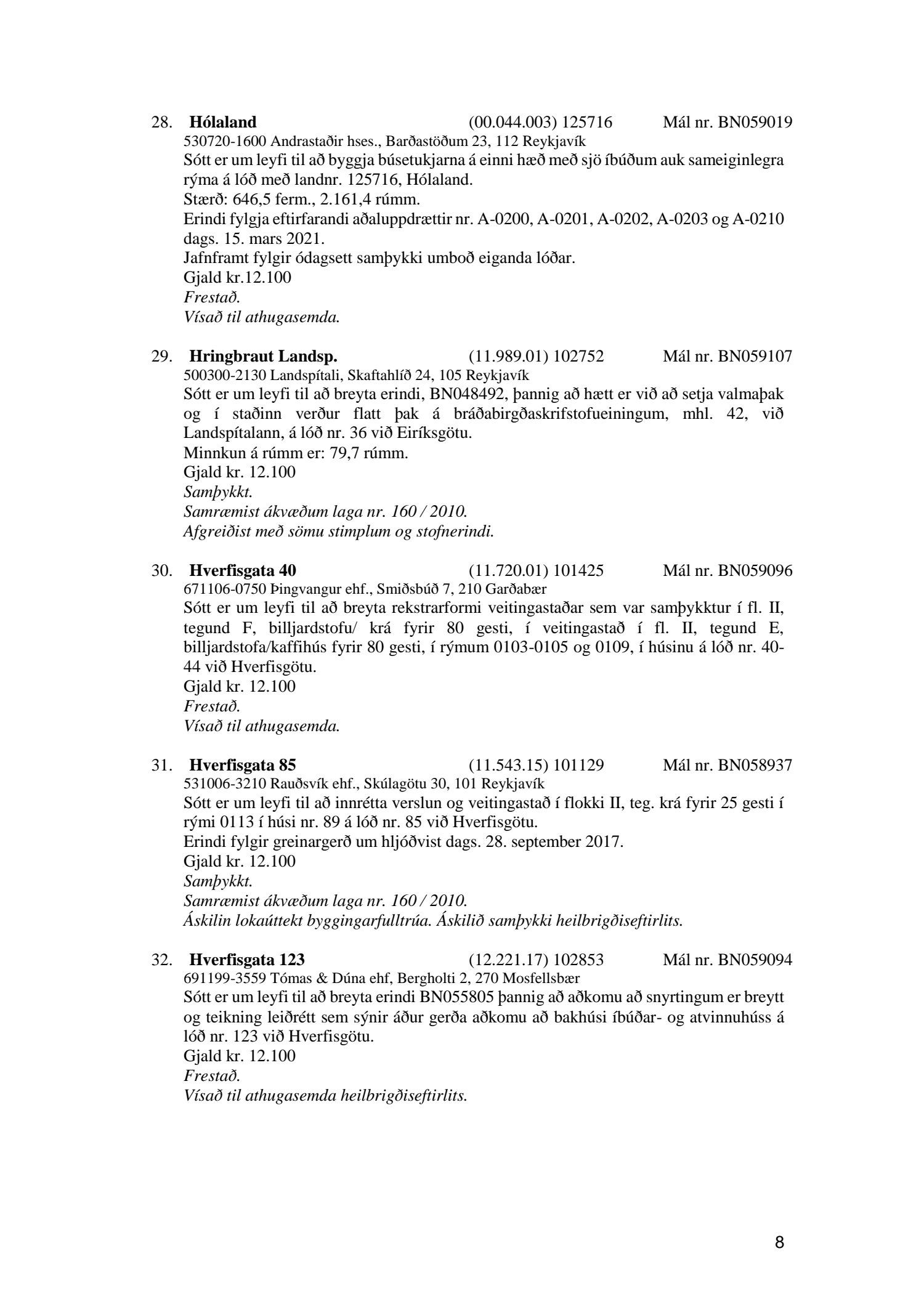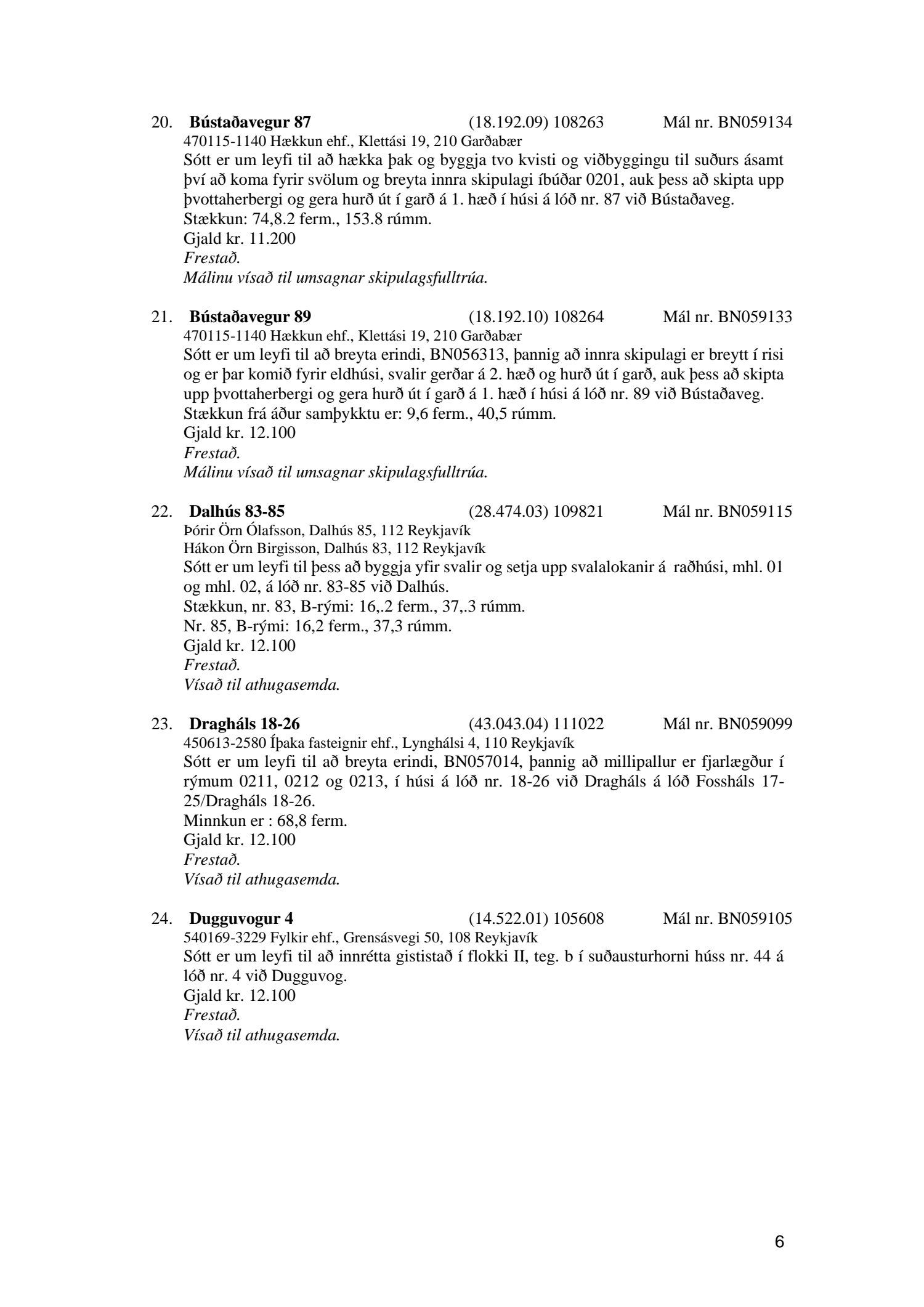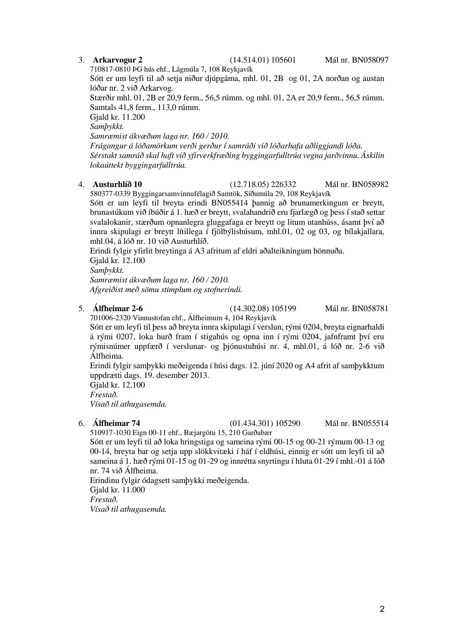 Afgreiðslufundur byggingarfulltrúa nr. 1110