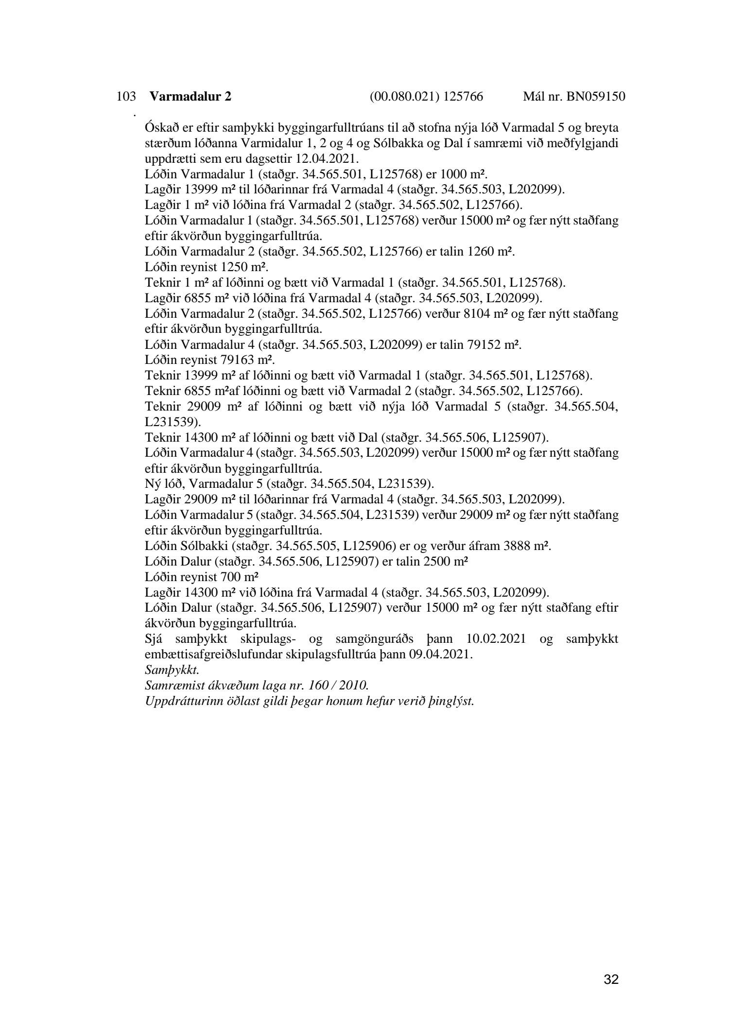 Umhverfis- og skipulagsráð nr. 32